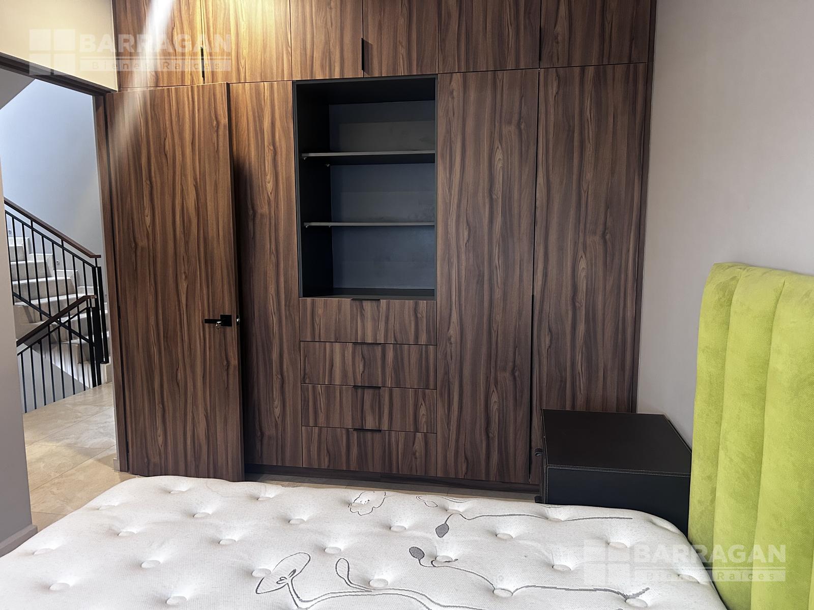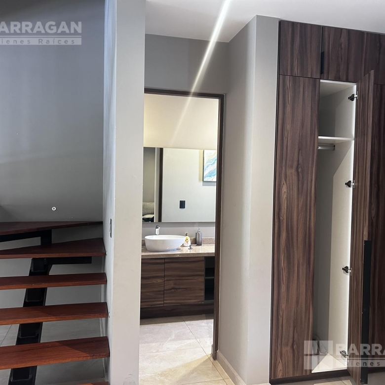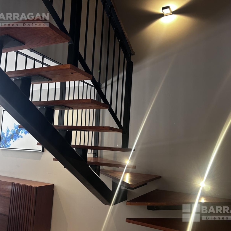 La segunda planta alberga tres recámaras; la principal cuenta con baño completo y vestidor, mientras que las dos recámaras secundarias disponen de clóset y comparten un baño completo, brindando una distribución eficiente para la vida familiar.
