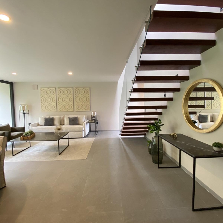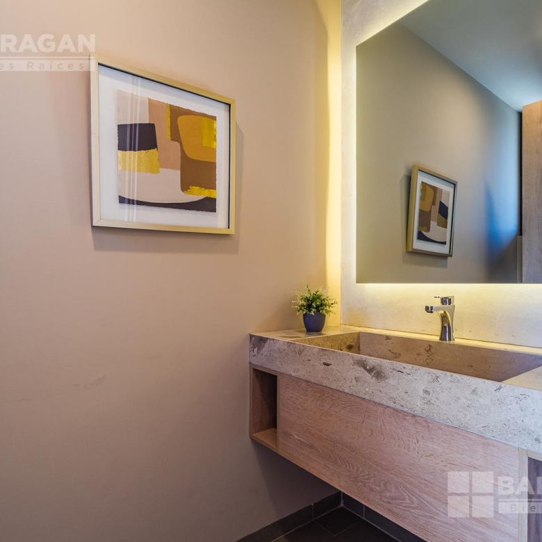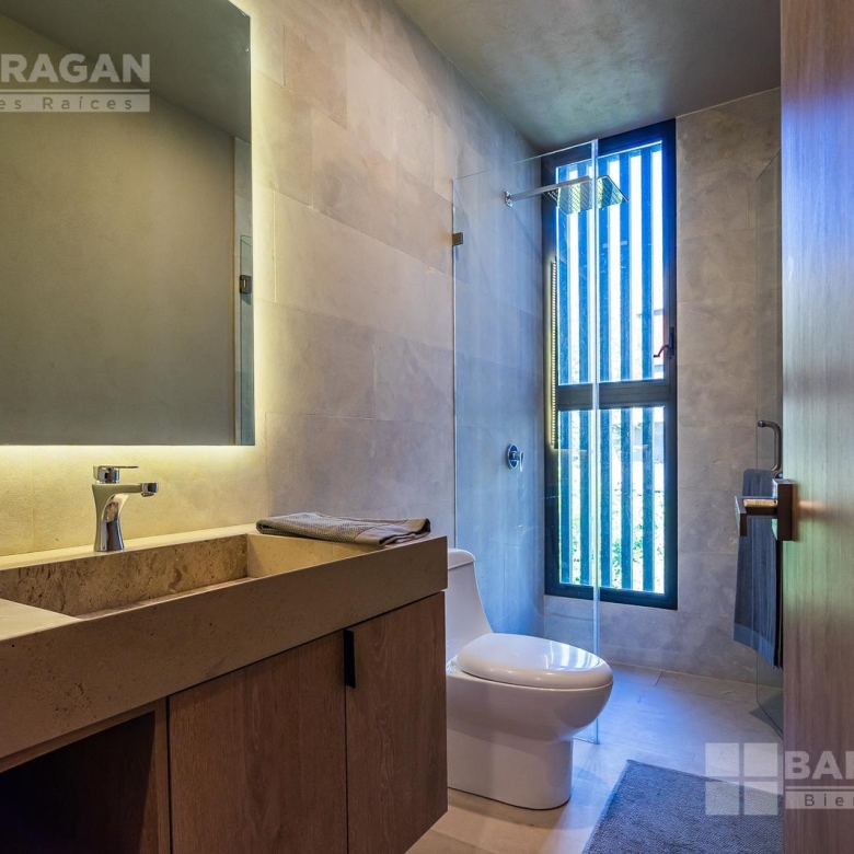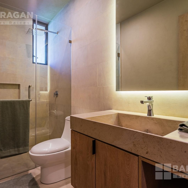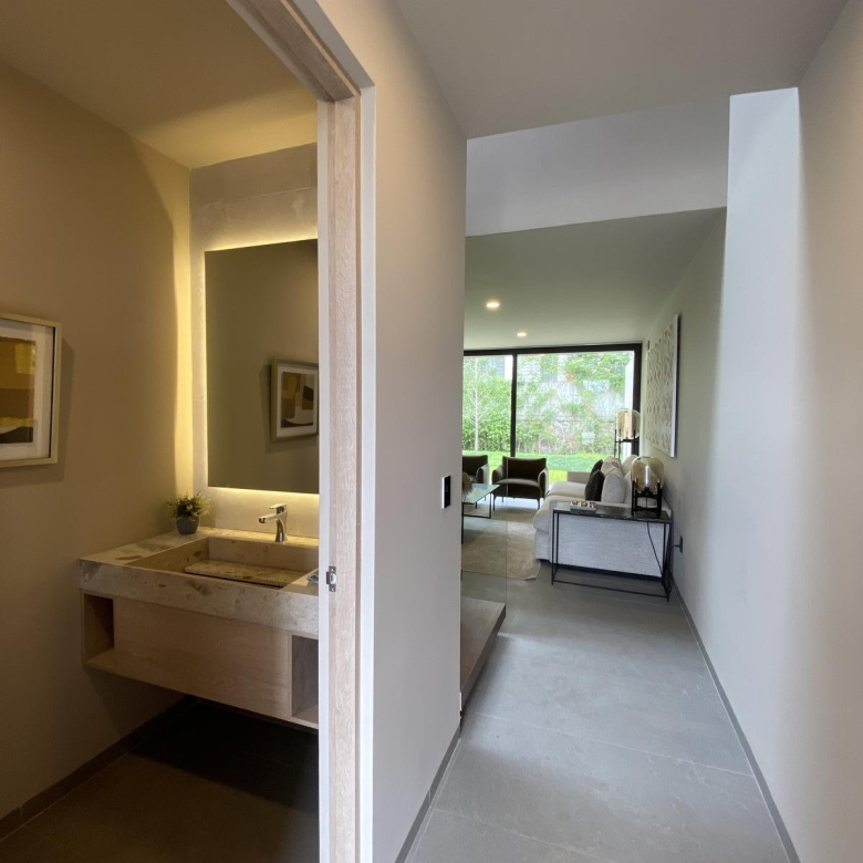 En planta alta tenemos recámara principal con sala, amplio vestidor ,baño y terraza. Dos recámaras secundarias con baño completo y vestidor.