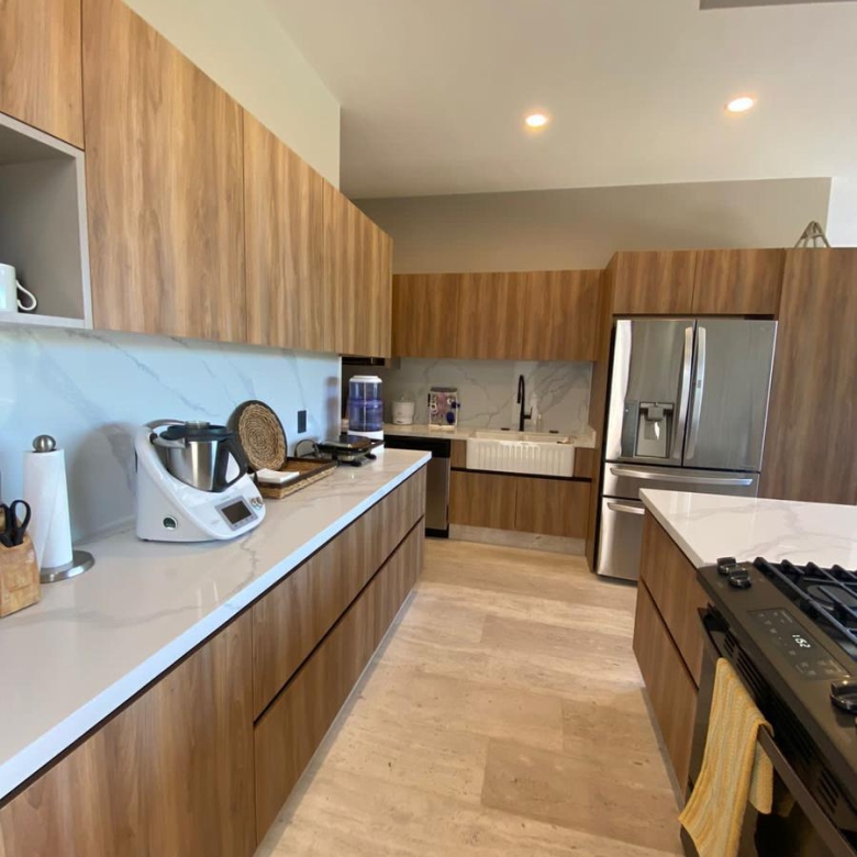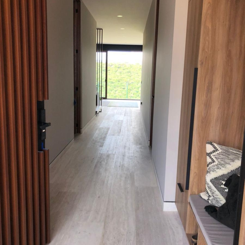 En planta alta se encuentra el family room y tres recámaras, la principal con vestidor y baño completo, las recámaras secundarias con baño completo y clósets, terraza con vista a la cañada.