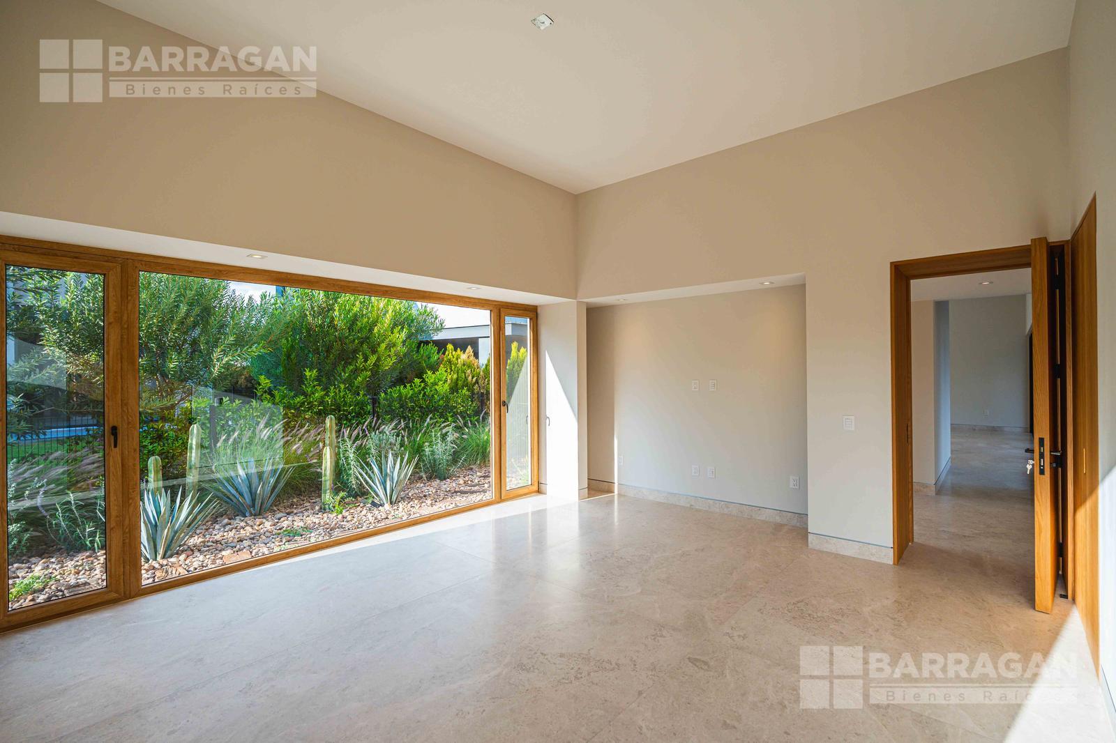 En planta baja cuenta con 4ta recámara con baño completo, amplio comedor con doble vista, sala con bar que se integra a una terraza techada con asador. Espectacular cocina equipada con puertas de encino natural con isla y barras de gres porcelanico italiano (piedra tecnológica), congelador y doble refrigerador paneleable. Cafetera, lavavajillas, parrilla, campana y doble horno, marca premium Café. Dos tarjas marca Shock Cristadur de cuarzo con tanque de agua de Osmosis Inversa, cierres lentos alemanes marca Blum, alacena independiente. Digno cuarto de servicio y una amplia lavandería con área de tendido. Áreas verdes perimetrales y jardín privado. Bodegas interiores y exteriores