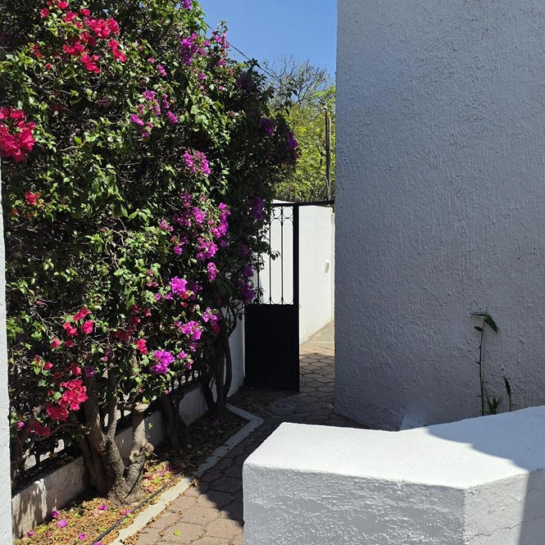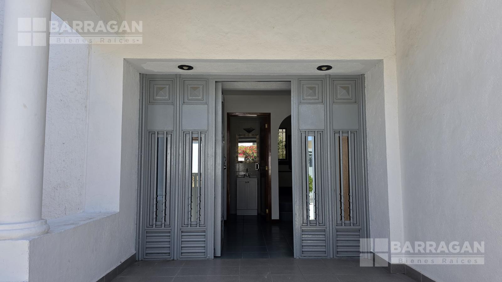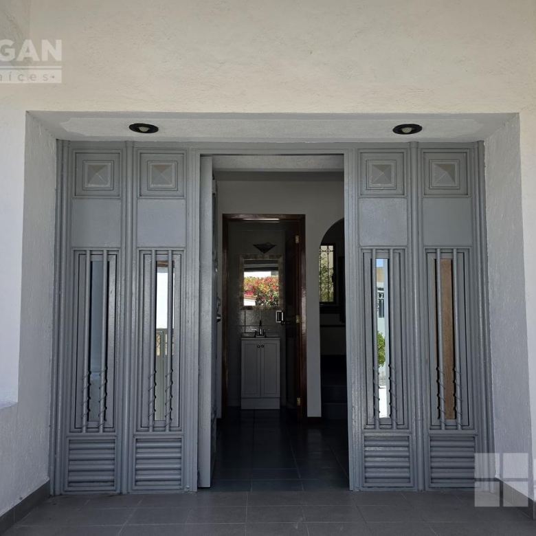 Casa estilo Colonial mexicano en excelentes condiciones, amplio acceso a jardineras en desnivel con frondosos árboles, cuenta con cochera para tres autos sin techar, pasillos laterales con acceso al jardín y área de servicio, entrando encontrarás el recibidor el cual conecta con la sala la cual tiene acceso a la terraza, comedor y cocina integral con ventanas que dan excelente iluminación, la cocina cuenta con despensa de buen tamaño.