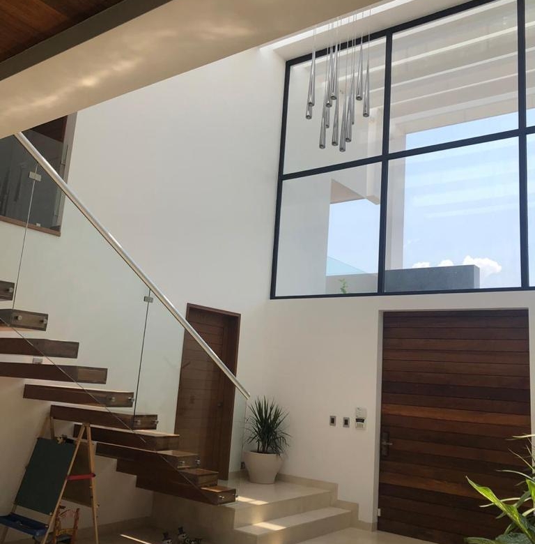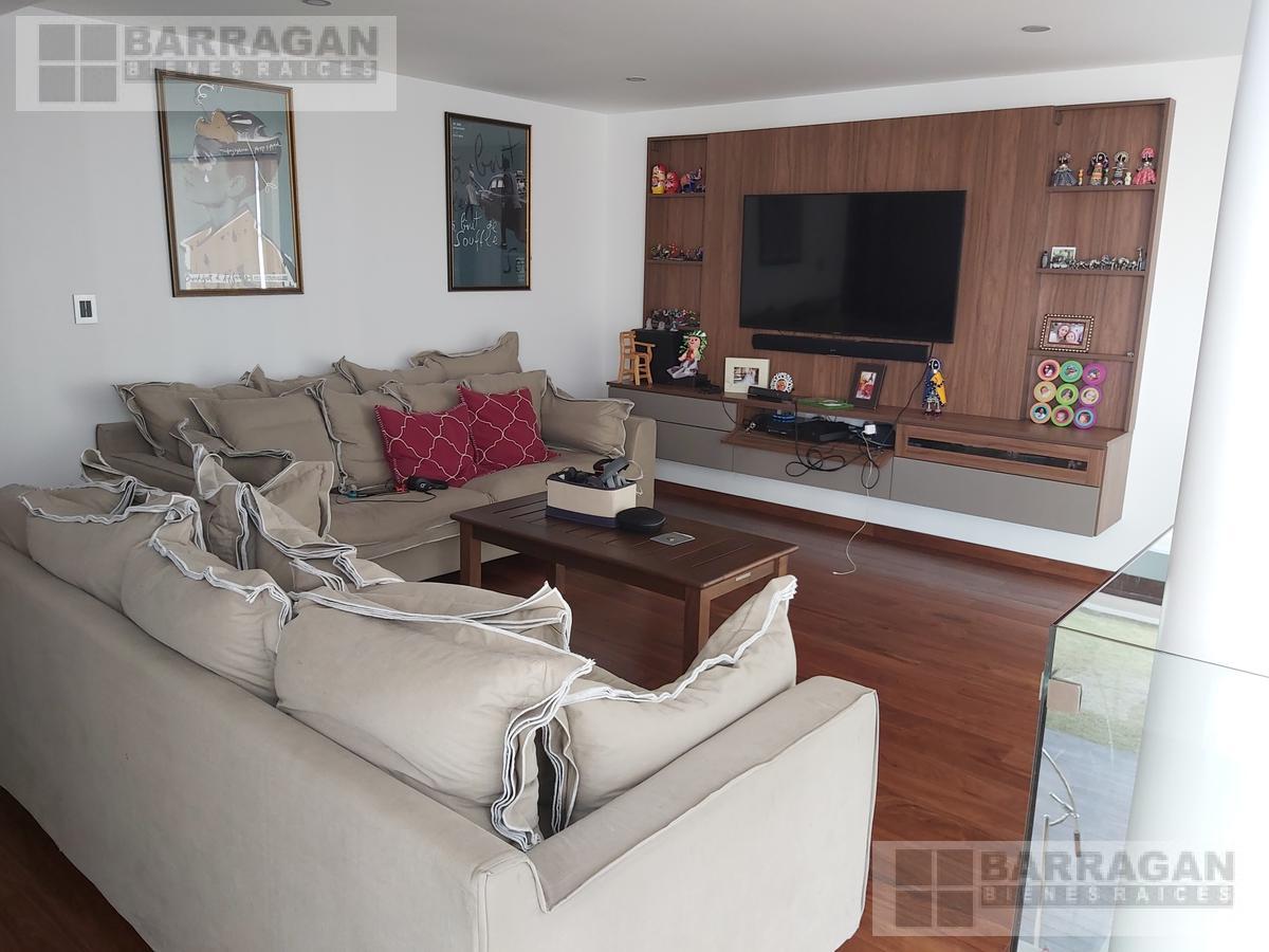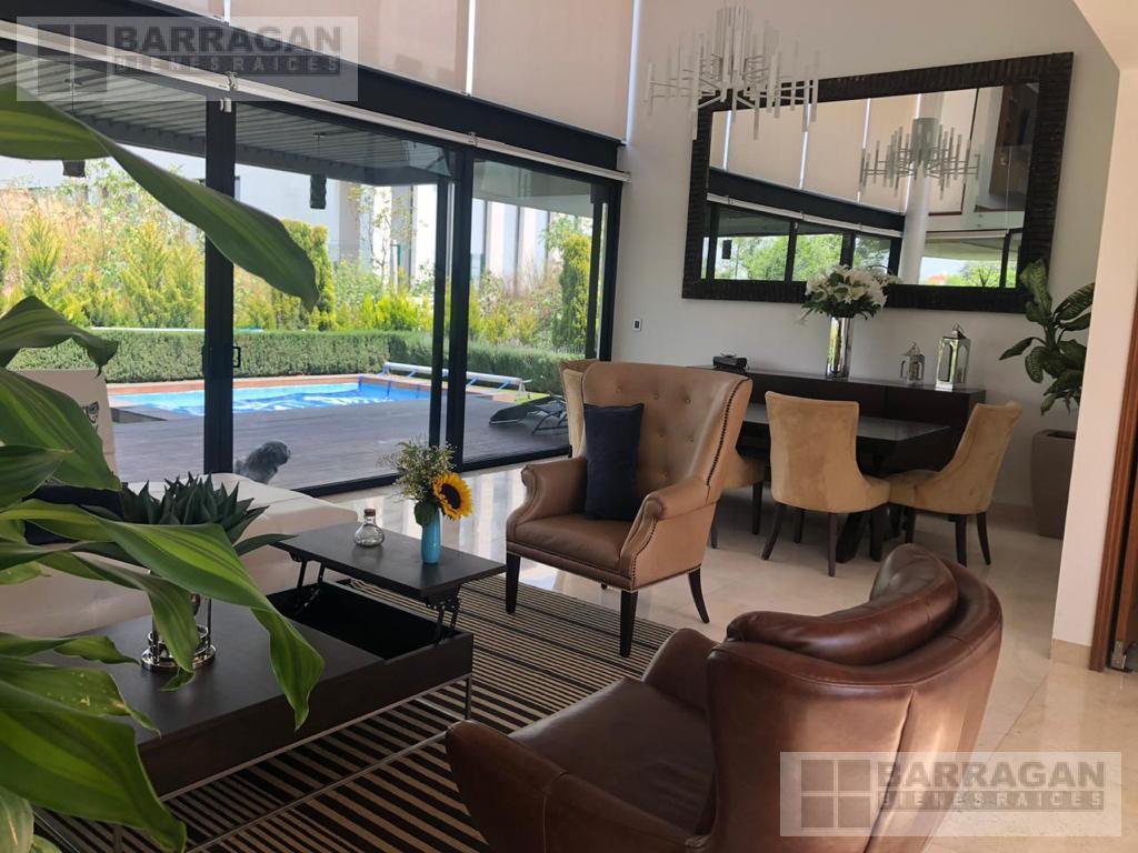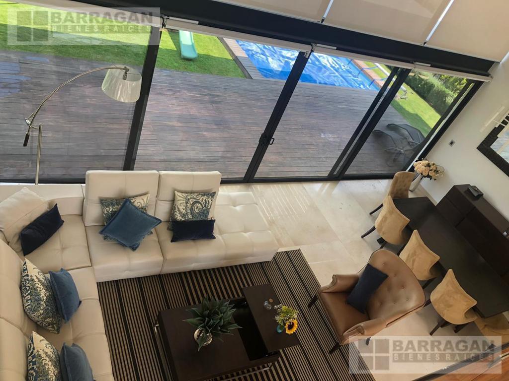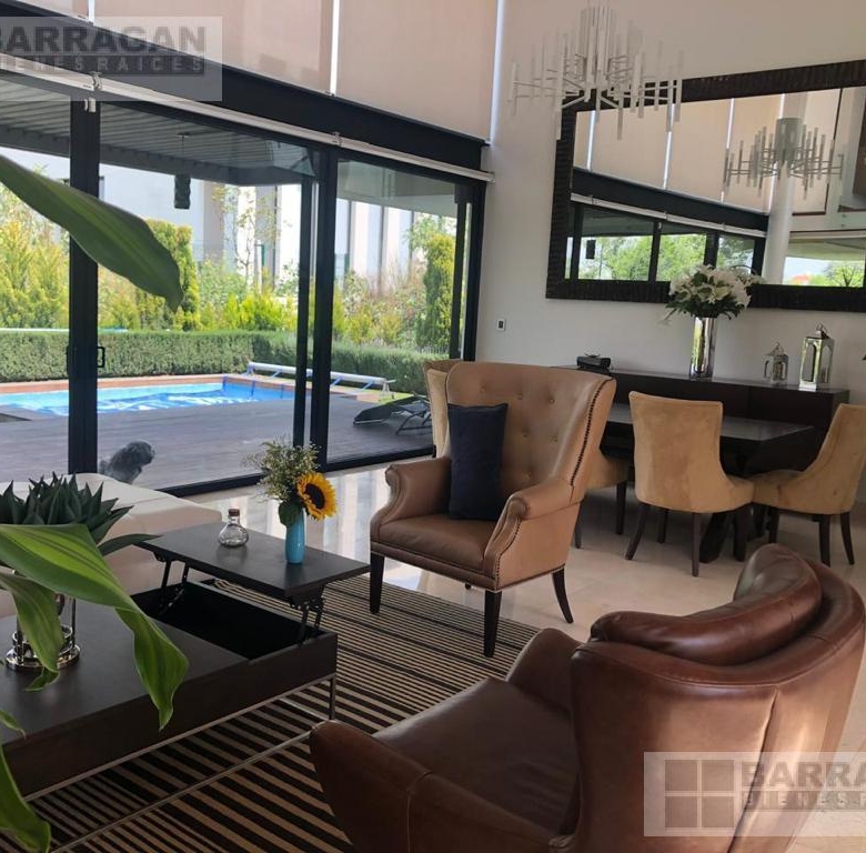 Descubre esta impresionante residencia que te recibe con un espectacular vestíbulo a doble altura. La sala comedor se conectan a la terraza perfecta para disfrutar de una excelente área social que se extiende hacia un jardín privado con alberca ideal para reuniones y grandes momentos. La cocina moderna y espaciosa, en esta planta encontrarás un acogedor family room, un estudio y baño completo. También el cuarto y lavandería.
