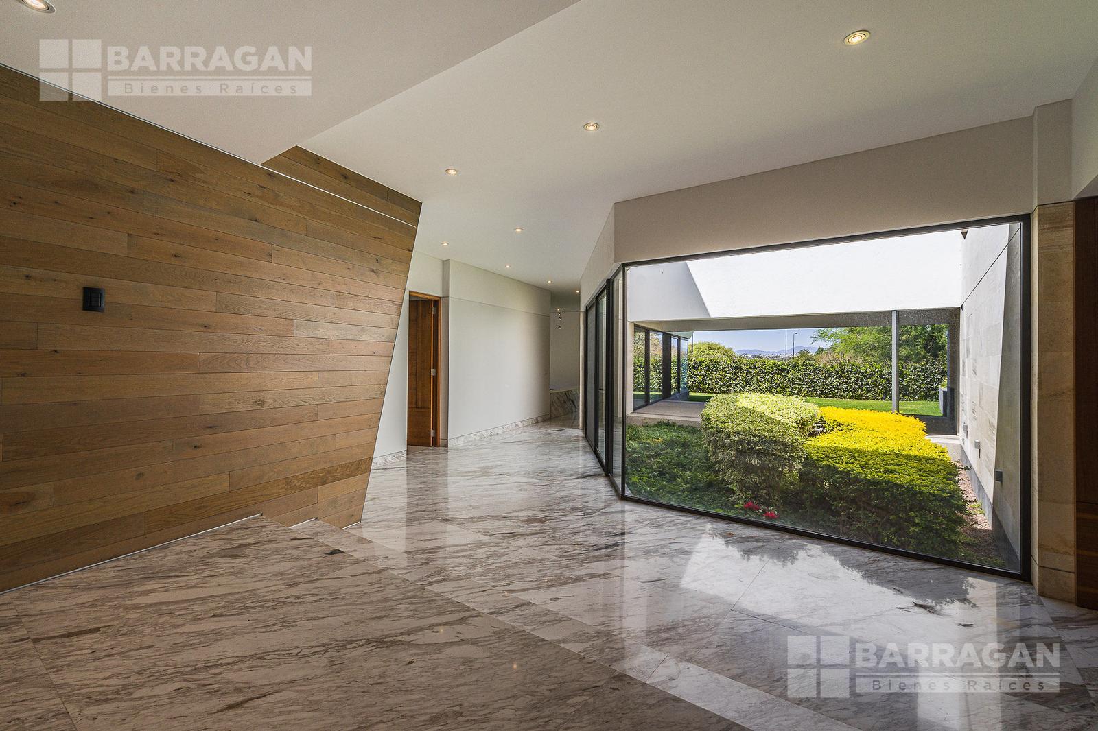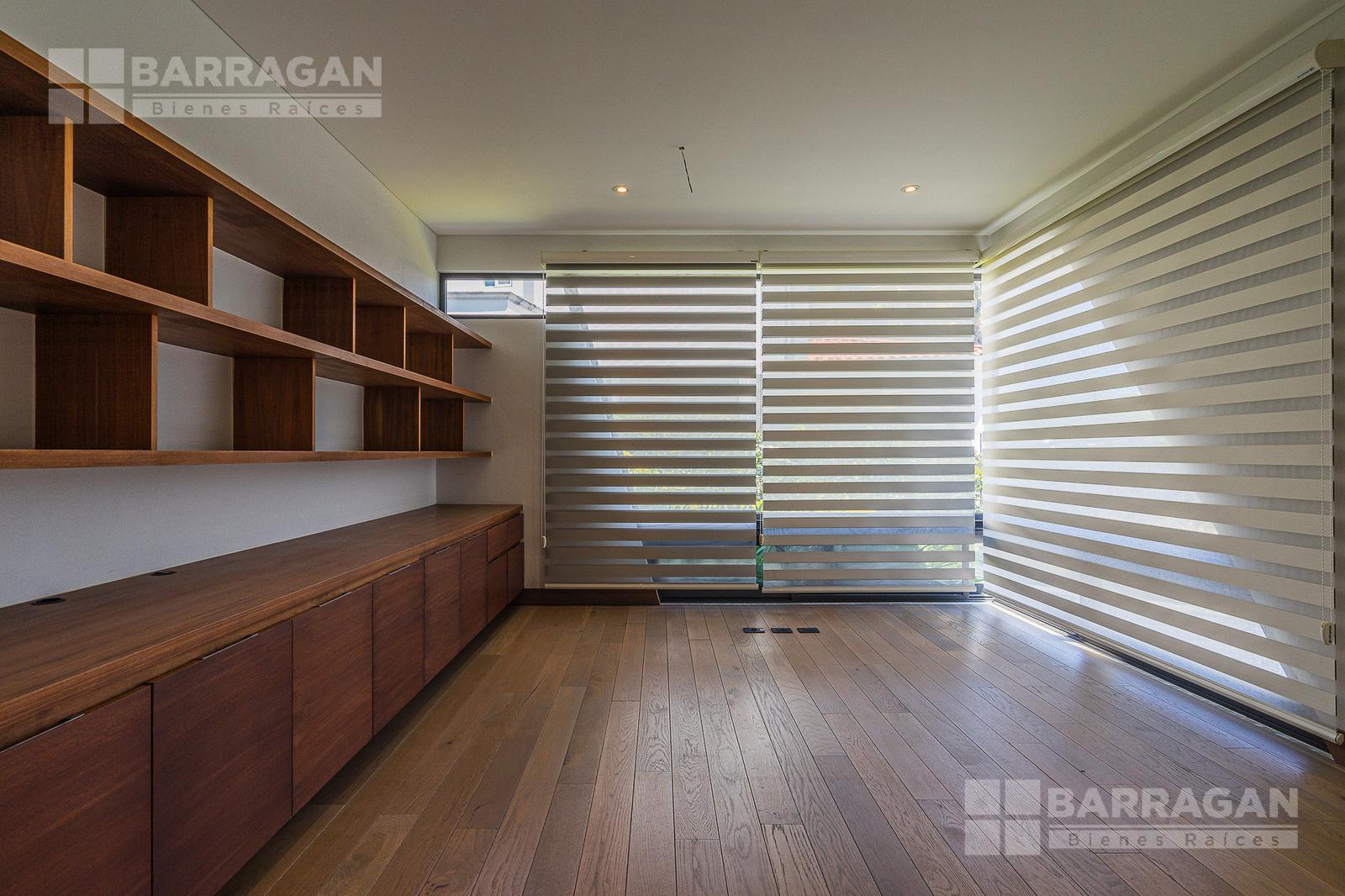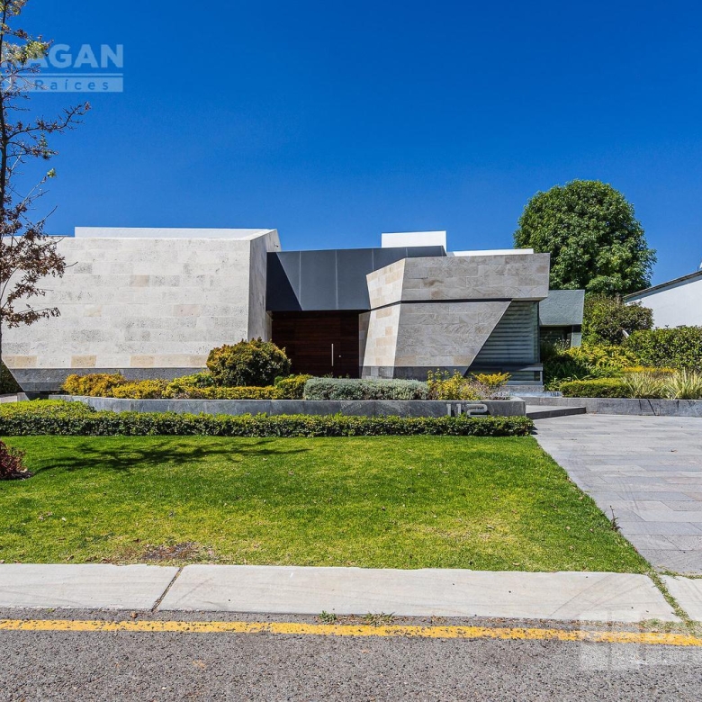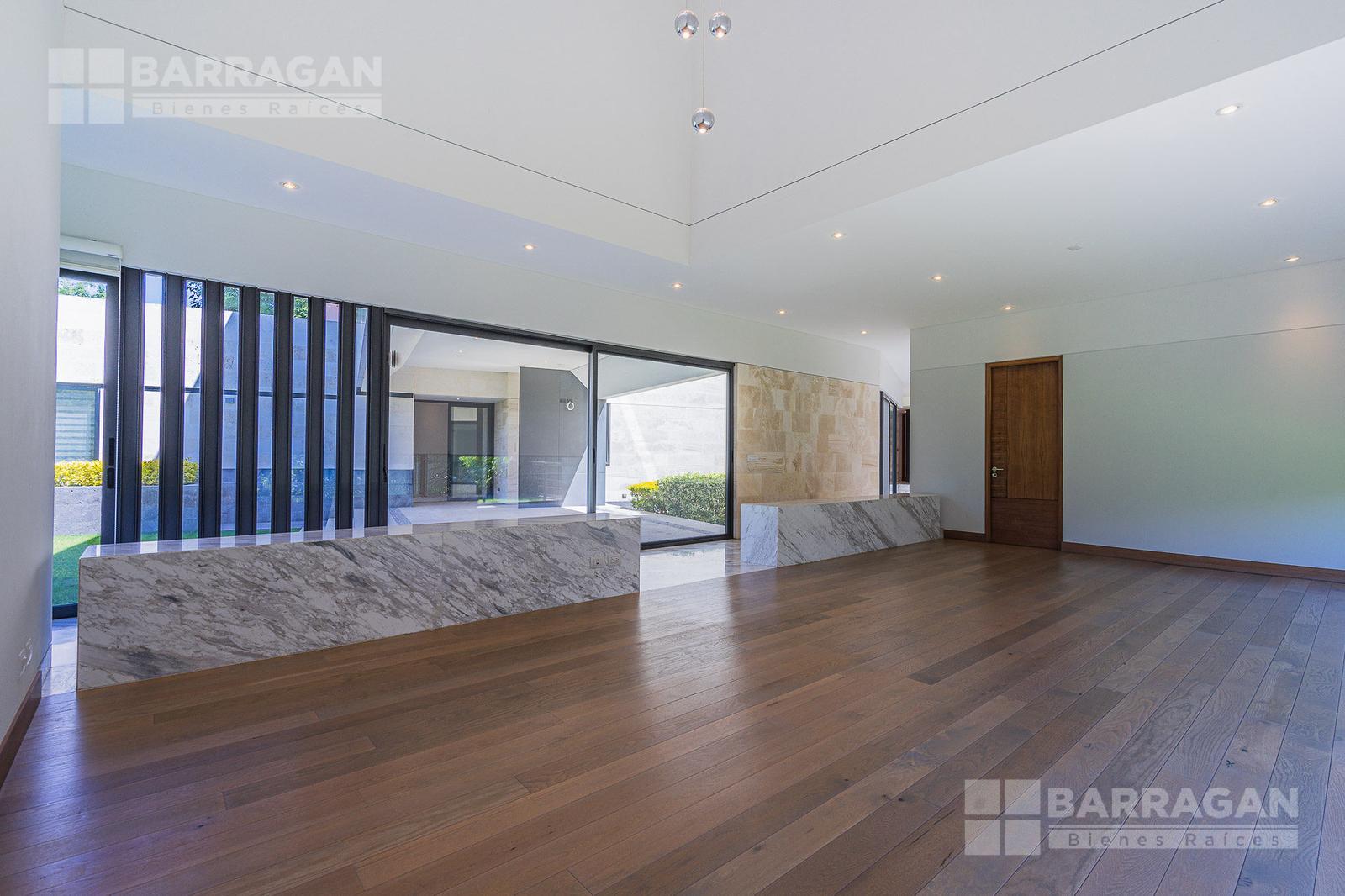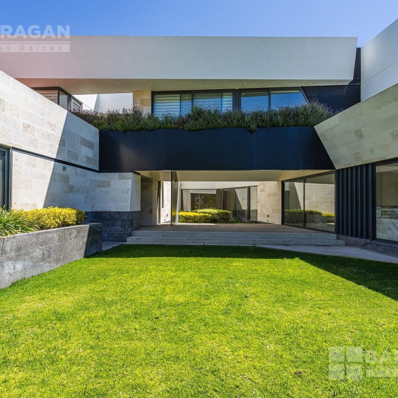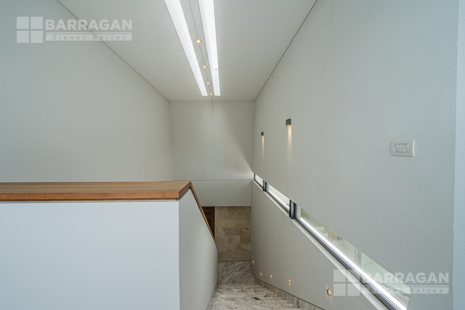 Casa moderna con acceso a amplio recibidor con vista al jardín, del lado derecho encontrarás un estudio y baño completo, la recámara principal se encuentra también en planta baja, cuenta con un vestidor y baño completo, en el mismo pasillo hay un closet grande, del lado izquierdo están sala, comedor y cocina con espacios extras para almacenar, amplia alacena, área de servicio y acceso a la cochera para 6 autos techados, en este espacio hay una amplia bodega y acceso a segundo piso para 2 cuartos de servicio independientes.