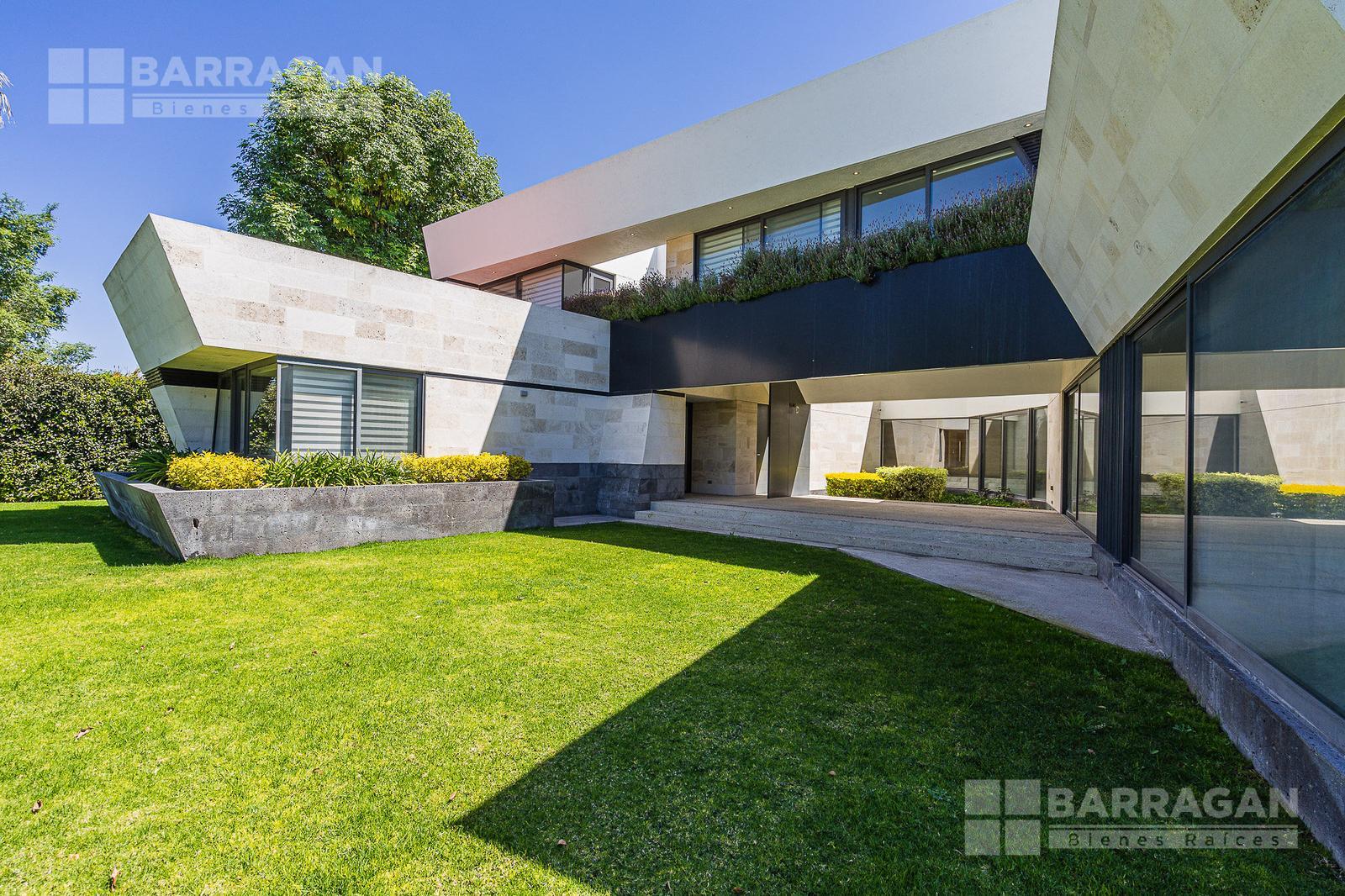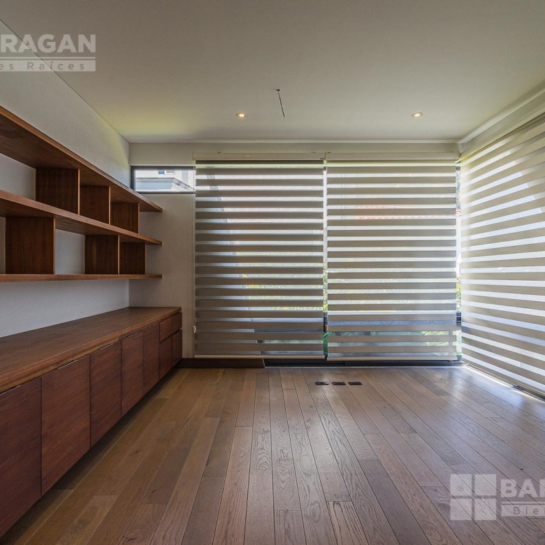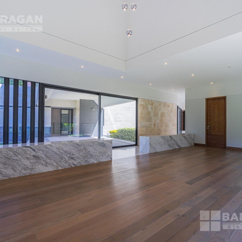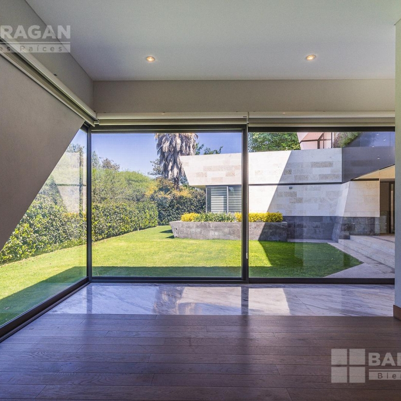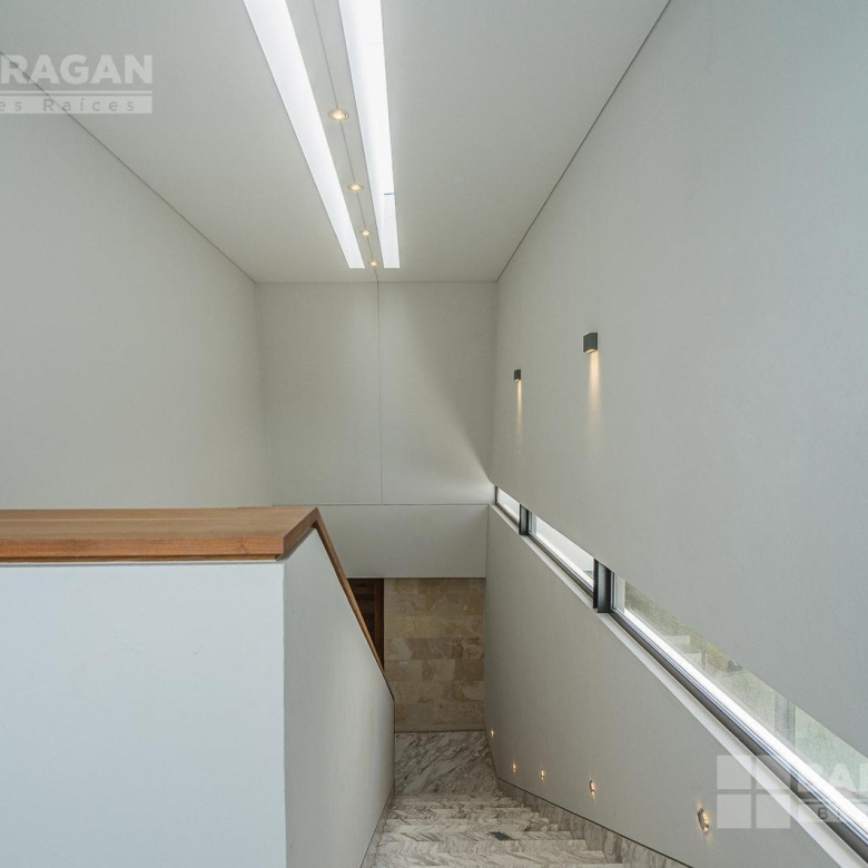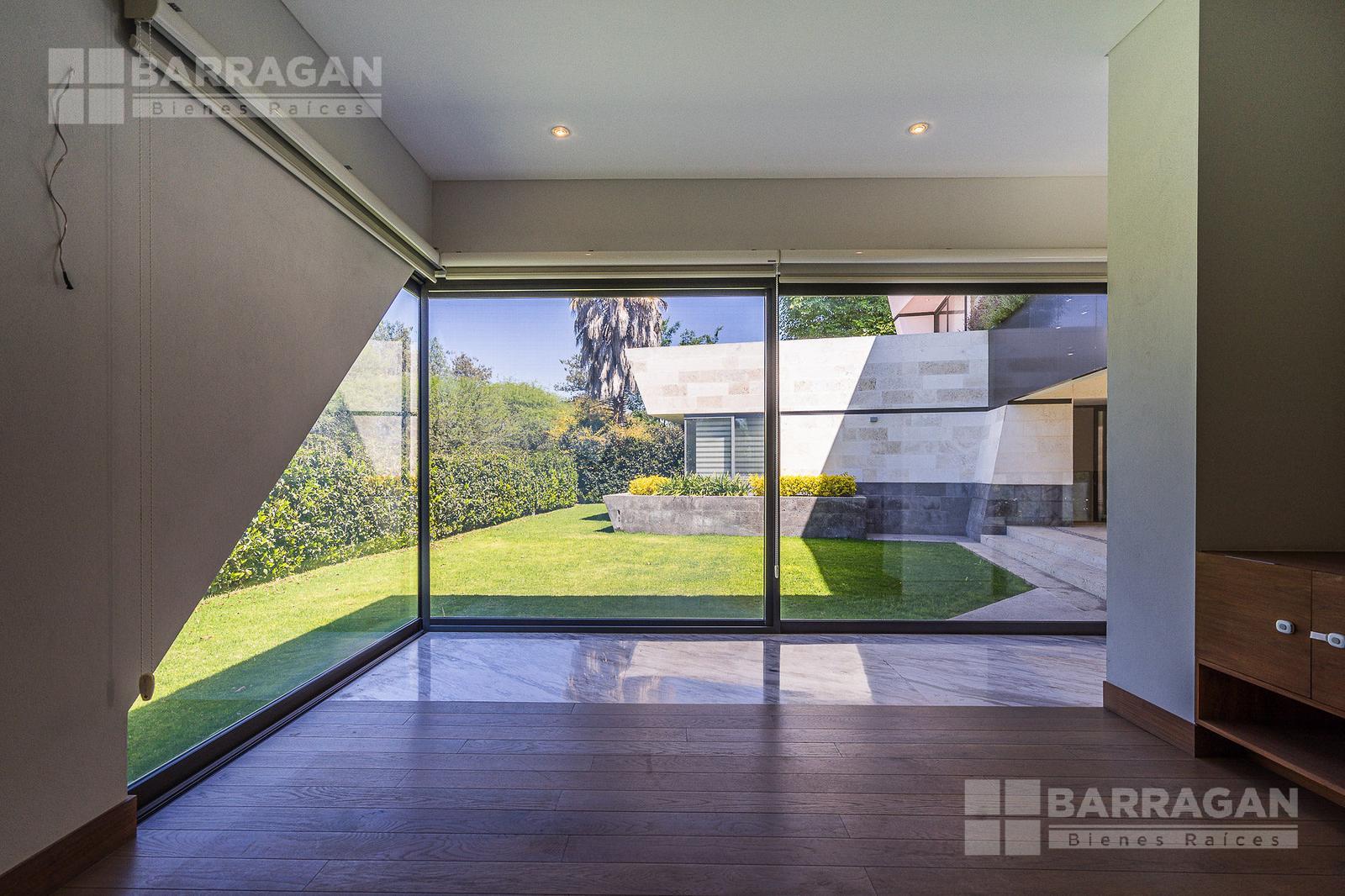 Casa moderna con acceso a amplio recibidor con vista al jardín, del lado derecho encontrarás un estudio y baño completo, la recámara principal se encuentra también en planta baja, cuenta con un vestidor y baño completo, en el mismo pasillo hay un closet grande, del lado izquierdo están sala, comedor y cocina con espacios extras para almacenar, amplia alacena, área de servicio y acceso a la cochera para 6 autos techados, en este espacio hay una amplia bodega y acceso a segundo piso para 2 cuartos de servicio independientes.