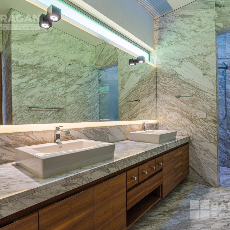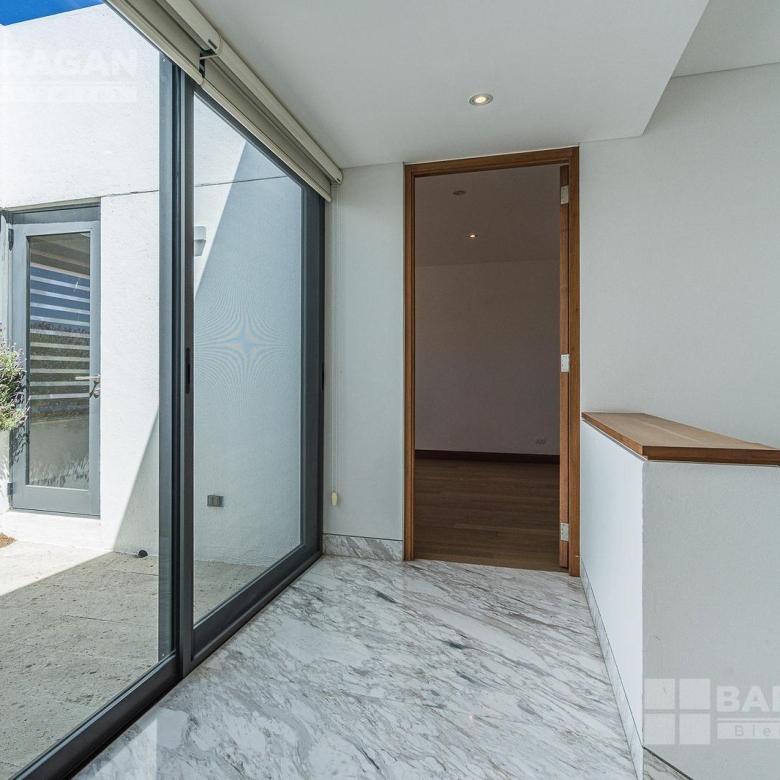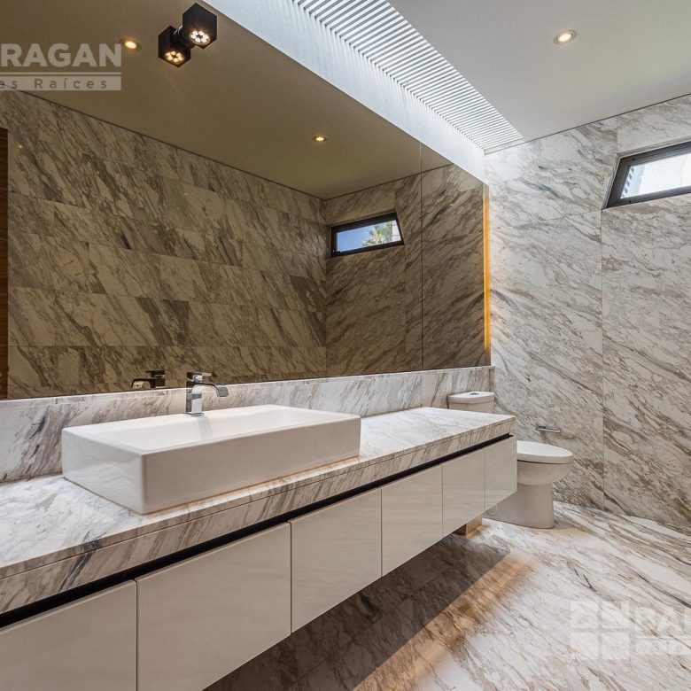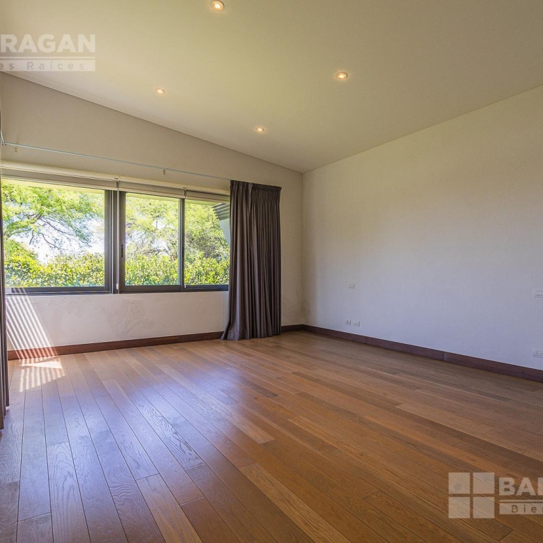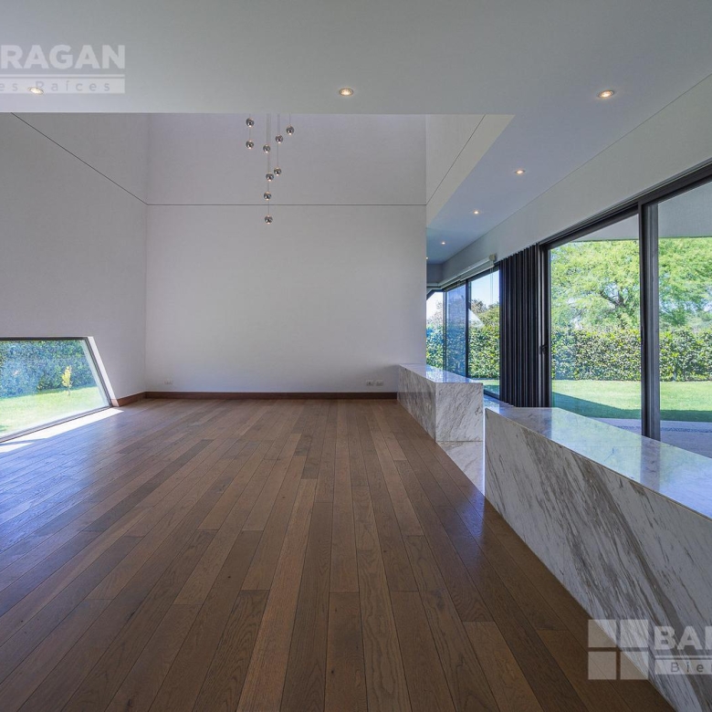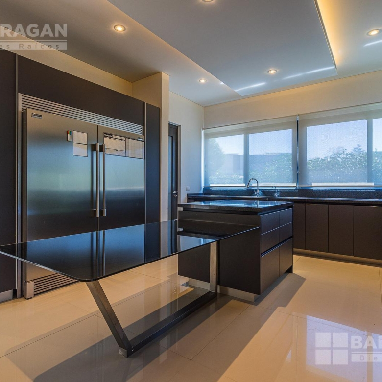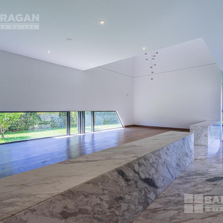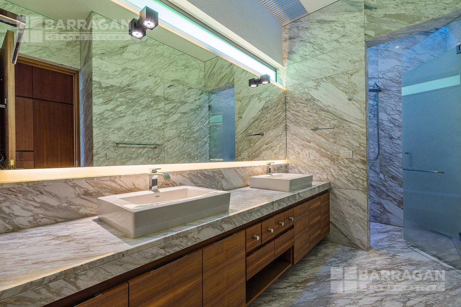Casa moderna con acceso a amplio recibidor con vista al jardín, del lado derecho encontrarás un estudio y baño completo, la recámara principal se encuentra también en planta baja, cuenta con un vestidor y baño completo, en el mismo pasillo hay un closet grande, del lado izquierdo están sala, comedor y cocina con espacios extras para almacenar, amplia alacena, área de servicio y acceso a la cochera para 6 autos techados, en este espacio hay una amplia bodega y acceso a segundo piso para 2 cuartos de servicio independientes.