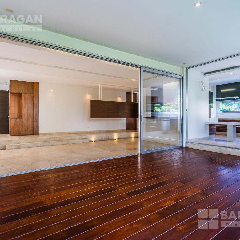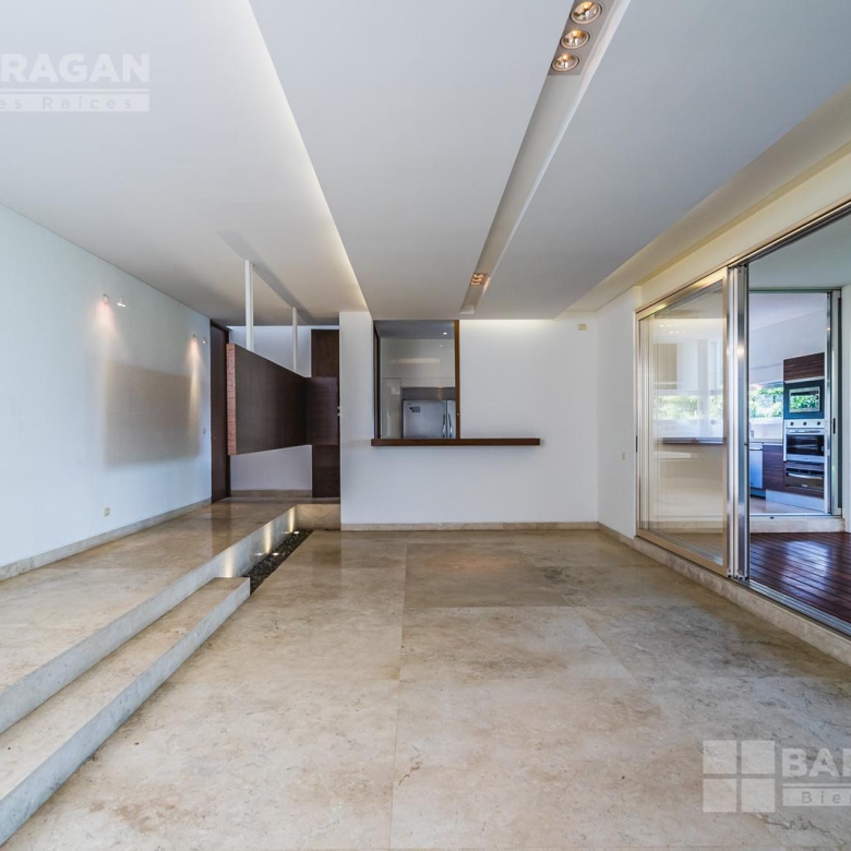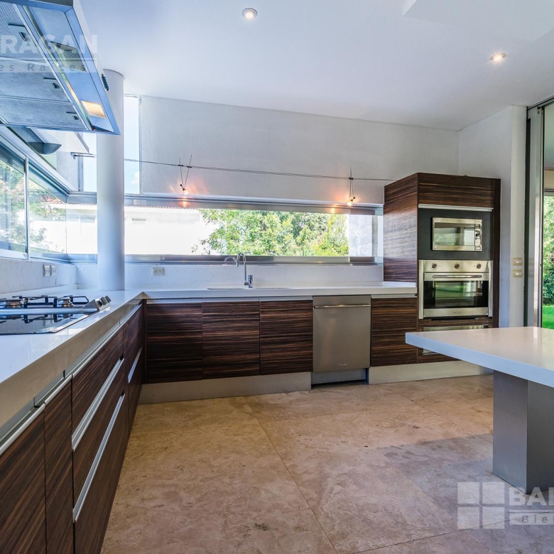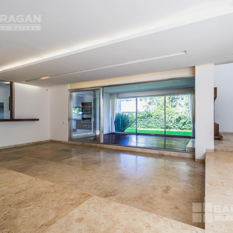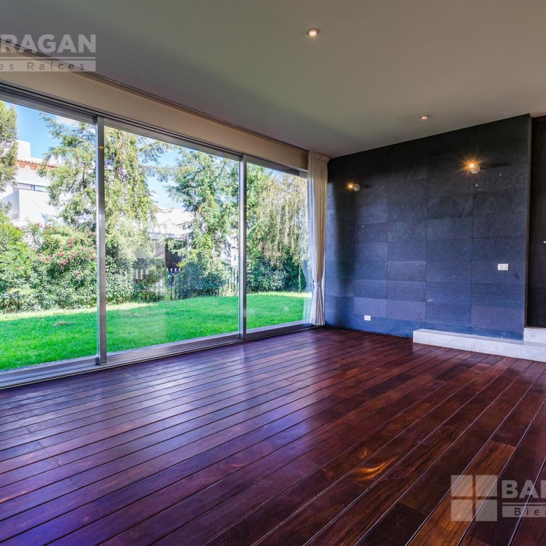 Casa moderna frente a área verde con excelentes acabados, que incluye sótano, cochera techada para dos autos, sala, comedor, cocina equipada, terraza y jardín con dos medios baños, además de cuarto de servicio con baño completo, área de lavado.
