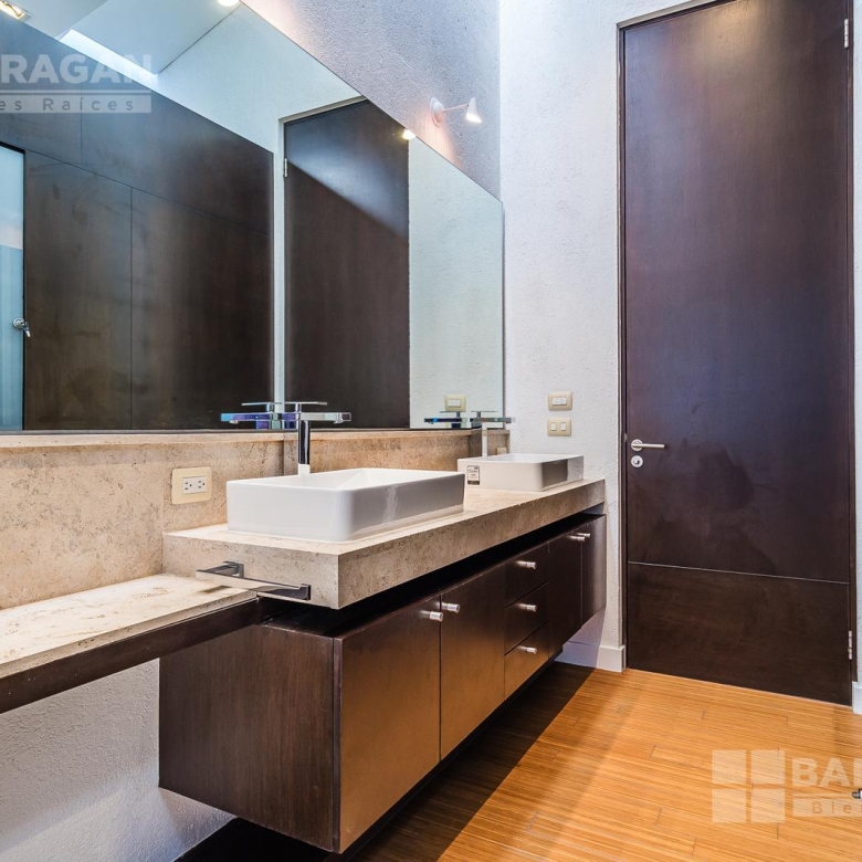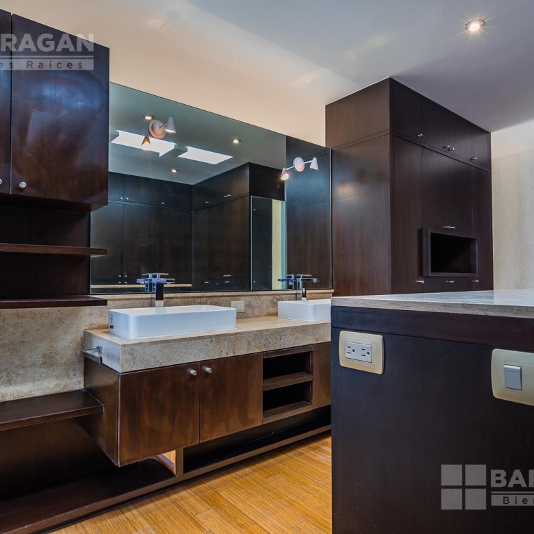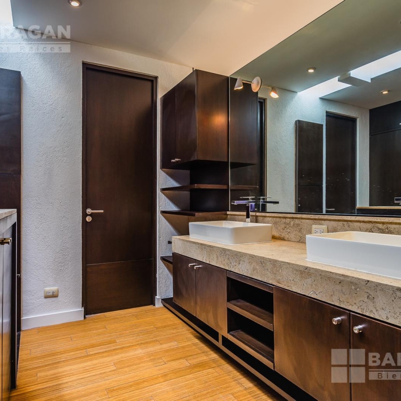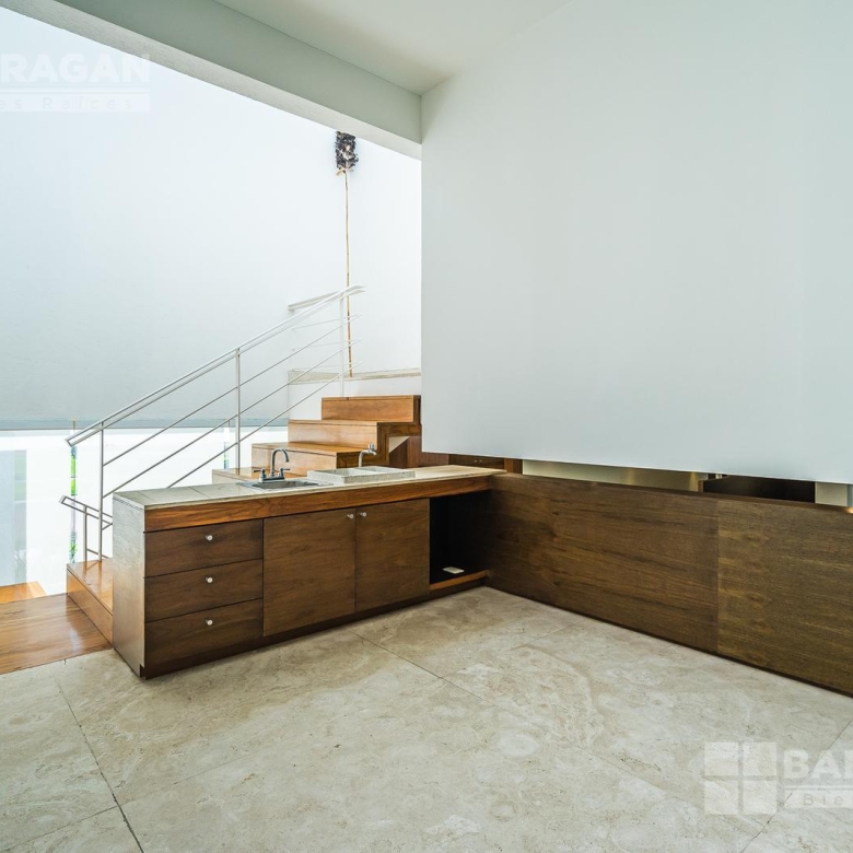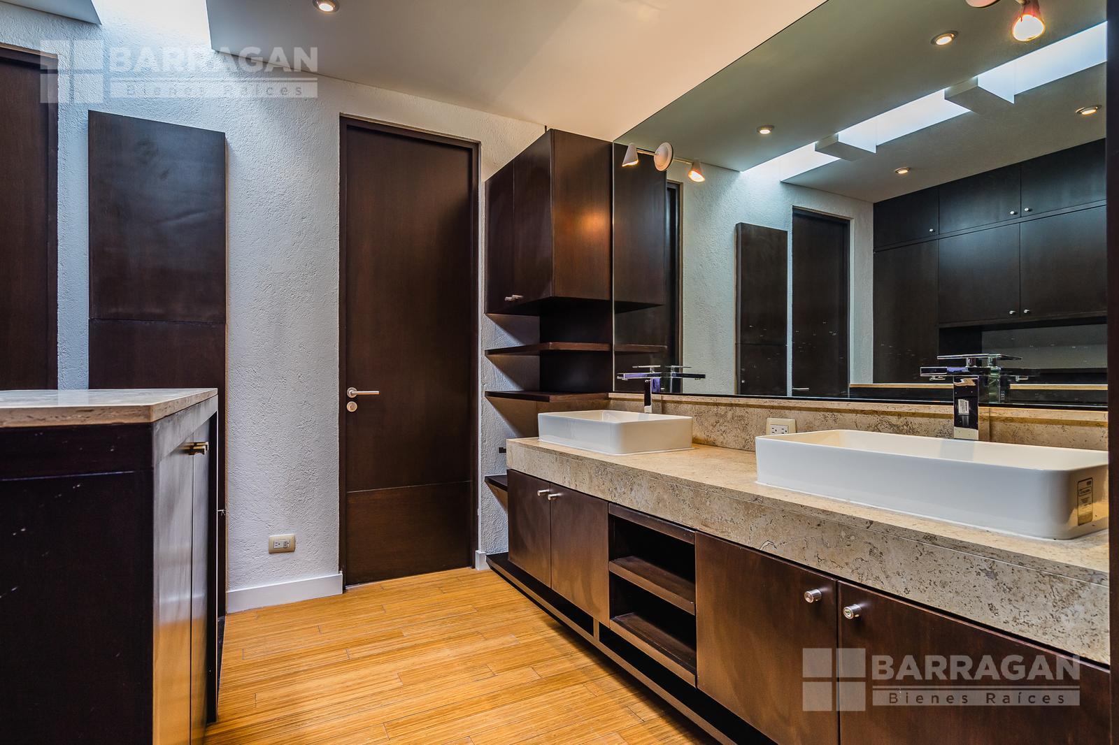 En planta alta encontraras dos salas de TV (una a desnivel), y tres recámaras, la principal con vestidor, baño completo y terraza, mientras que las dos recámaras secundarias cuentan con clóset y baño completo.