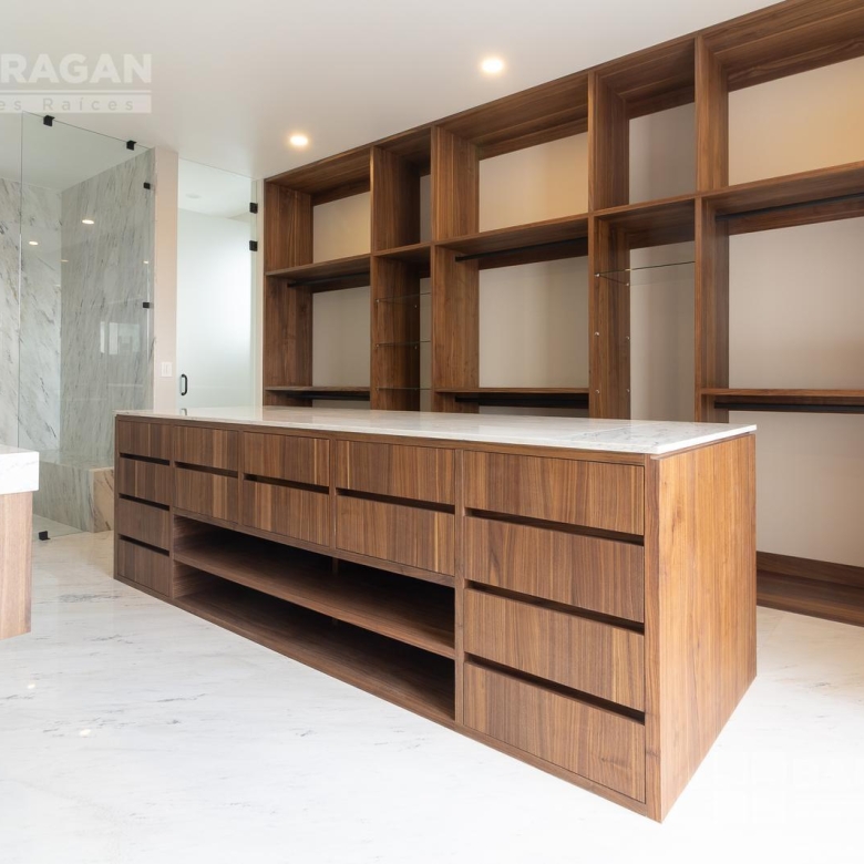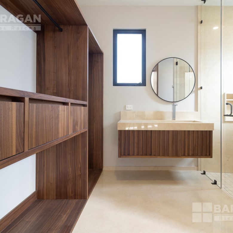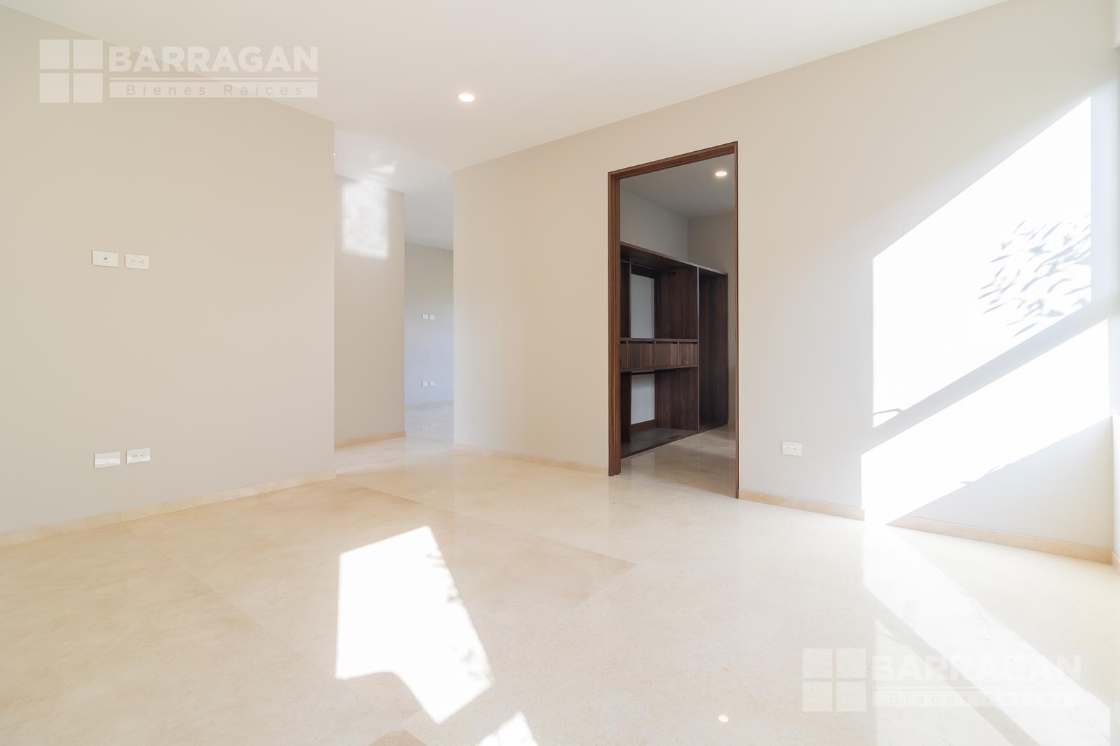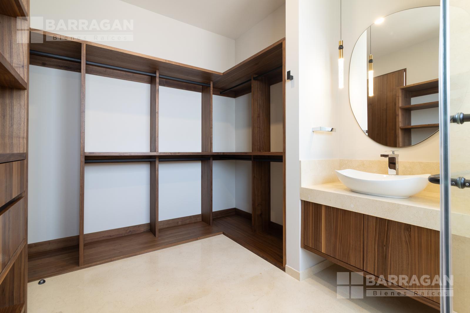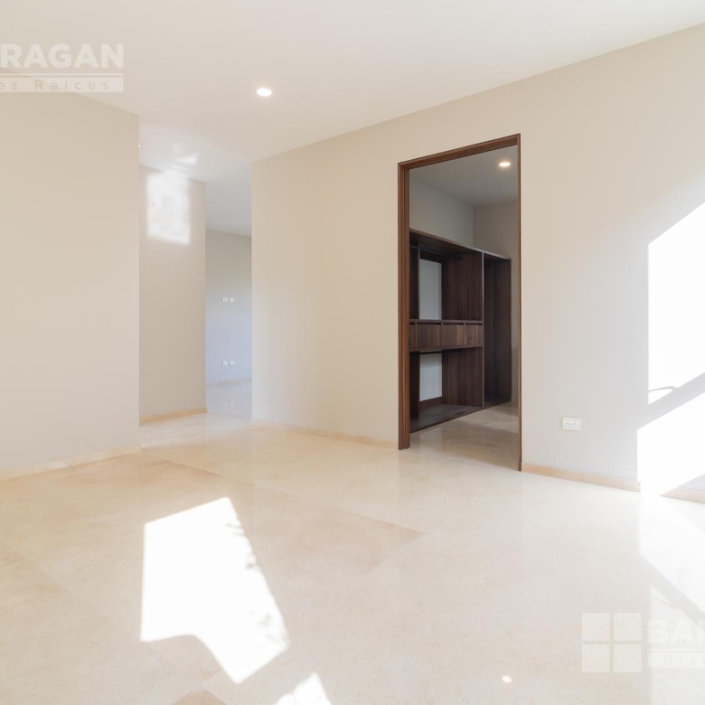 La planta alta alberga tres recámaras, todas con baño completo y vestidor, ofreciendo privacidad y confort. La recámara principal destaca por sus generosas dimensiones, con 31.43 m², un vestidor de 33.30 m² y una terraza privada de 26 m², ideal para disfrutar momentos de descanso. Además, cuenta con una acogedora sala de TV con área para tareas y acceso a una terraza techada, pensada como un espacio familiar cómodo y bien iluminado.