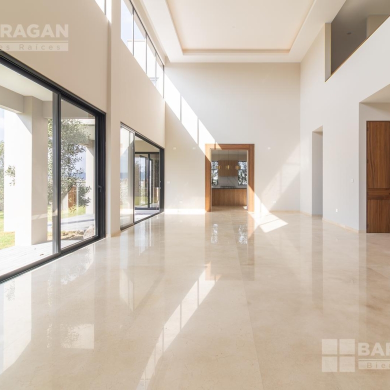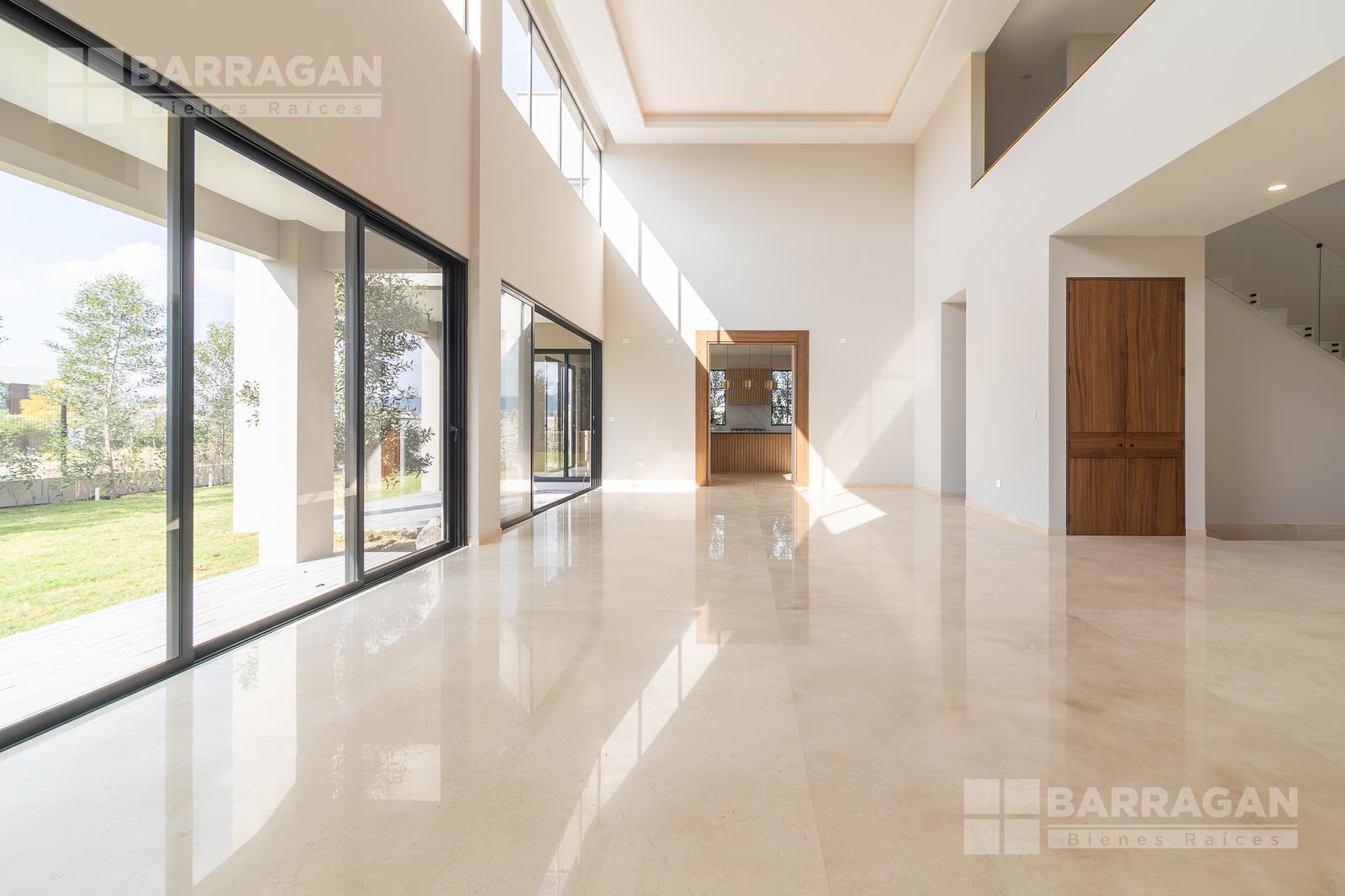 Desde el acceso principal, la residencia recibe con un elegante hall que se abre a una espectacular sala y comedor de doble altura, creando una sensación de amplitud, luz y sofisticación. El área social integra un espacio ideal para bar, perfecto para reuniones y eventos. La planta baja ofrece gran versatilidad al contar con estudio, salón de juegos y una amplia recámara de visitas con baño completo, diseñada para ser accesible a personas con movilidad reducida. Estos espacios pueden integrarse para crear una impresionante recámara principal en planta baja o ampliarse según las necesidades del propietario. La cocina con antecomedor se conecta de forma natural con la terraza techada y el amplio jardín, logrando una excelente relación interior–exterior. Complementan este nivel el estacionamiento techado para 3 autos, espacio adicional para 5 autos sin techar, cuarto de servicio, lavandería, cuarto de máquinas y bodegas, brindando máxima funcionalidad.