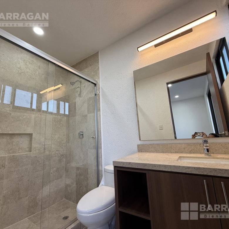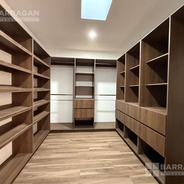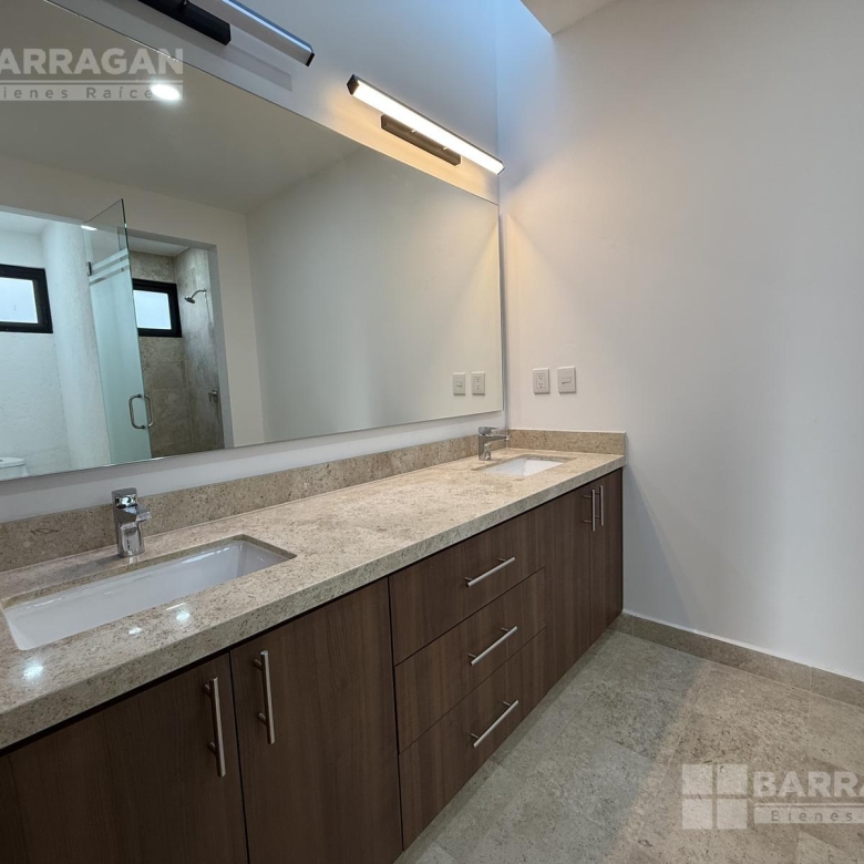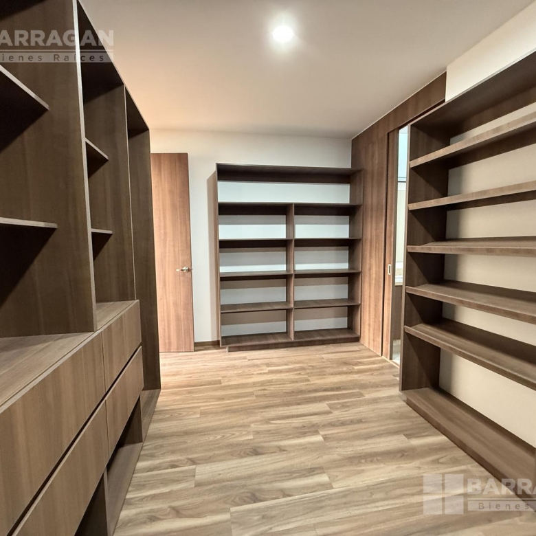 En planta alta ofrece una recámara principal con amplio vestidor y baño completo, dos recámaras secundarias cada una con baño y clóset, un anexo especial ideal como clóset para bolsas y zapatos, un generoso clóset de blancos y una sala de TV de tamaño excepcional con posibilidad de dividirse en dos áreas.