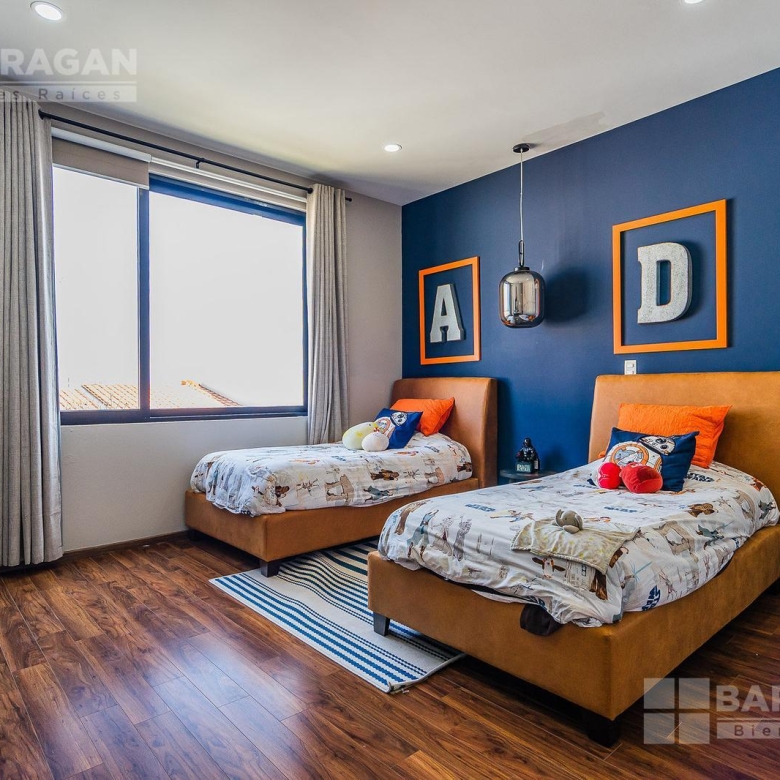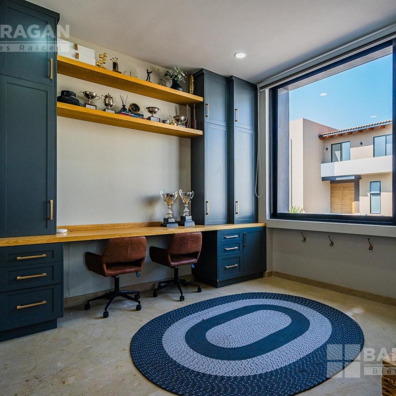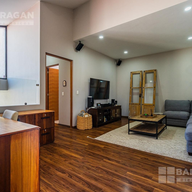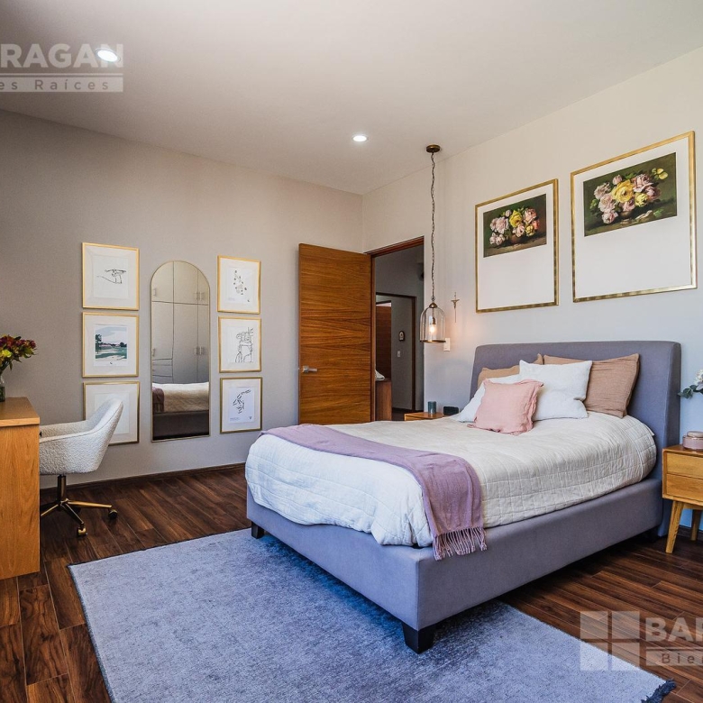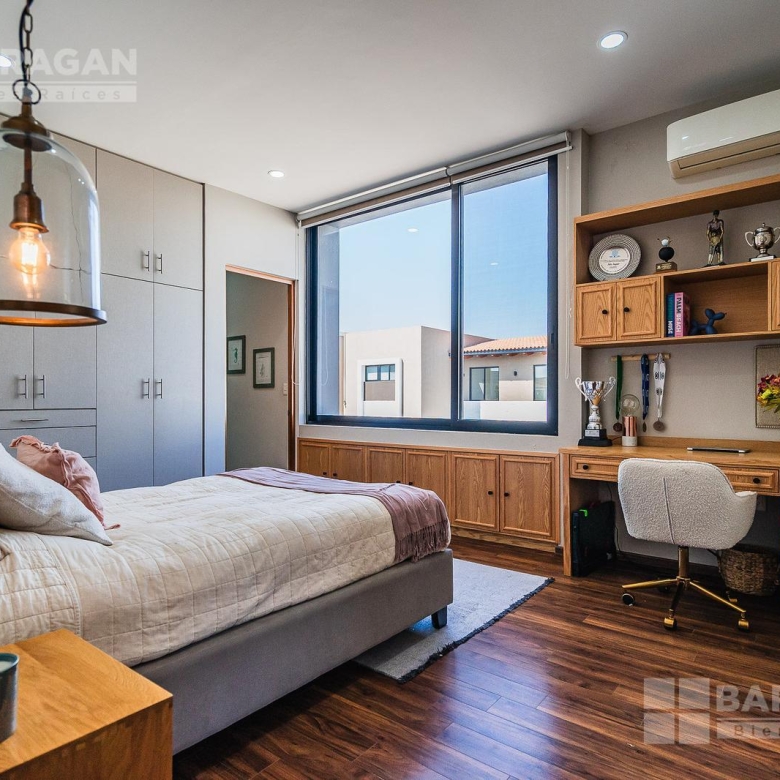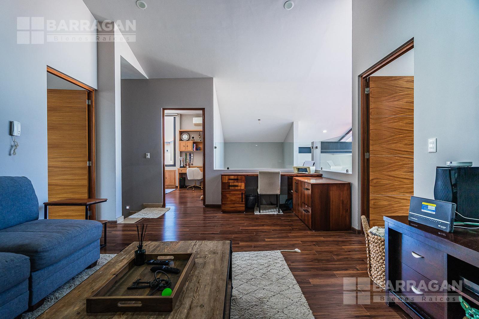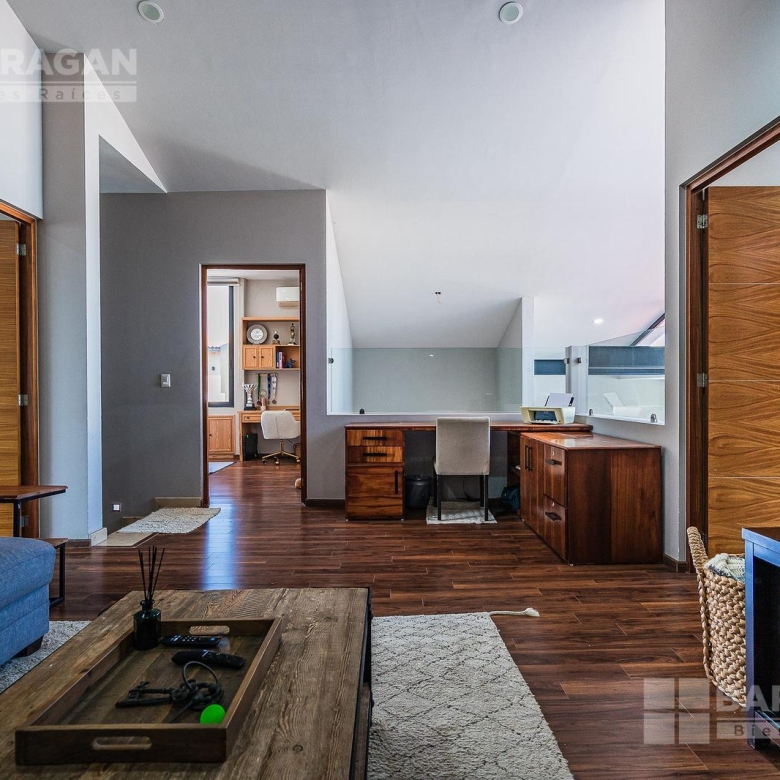 En planta alta, la distribución continúa privilegiando la comodidad: la recámara principal ofrece un vestidor de gran tamaño y baño completo, mientras que las dos recámaras secundarias cuentan cada una con clóset y baño propio, garantizando privacidad para todos los integrantes de la familia. Además, dispone de una acogedora sala de TV con área de escritorio, perfecta para home office o estudio.