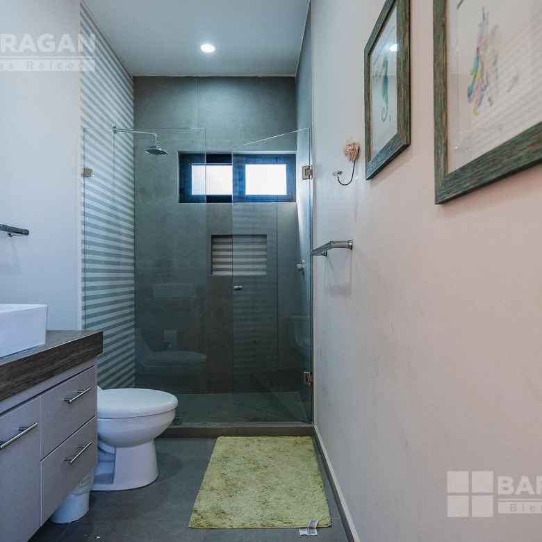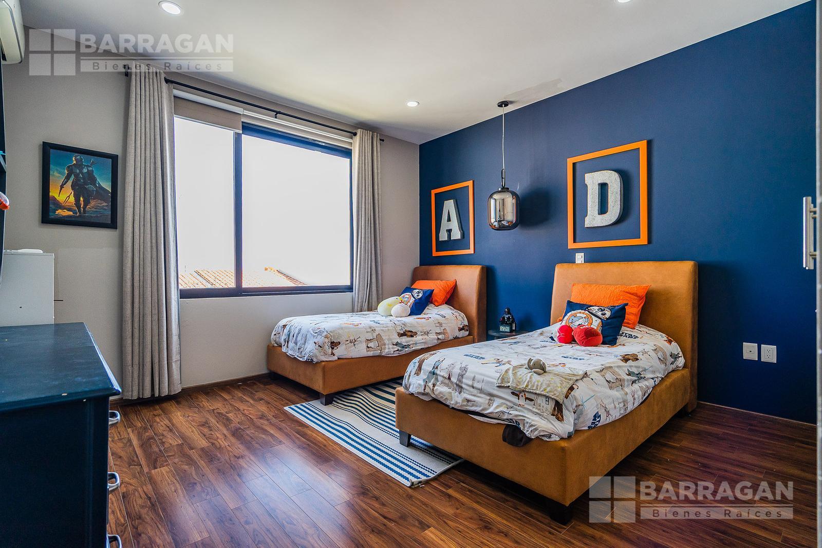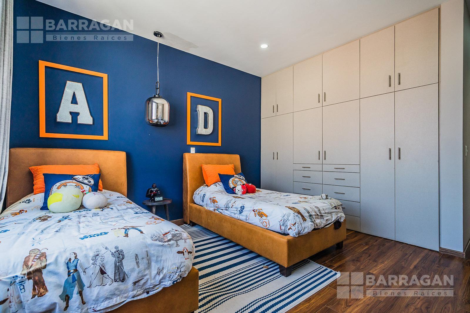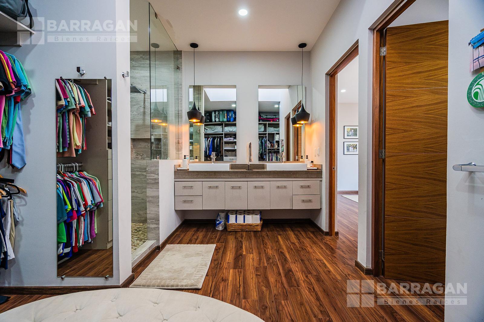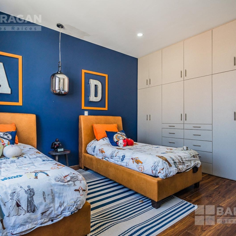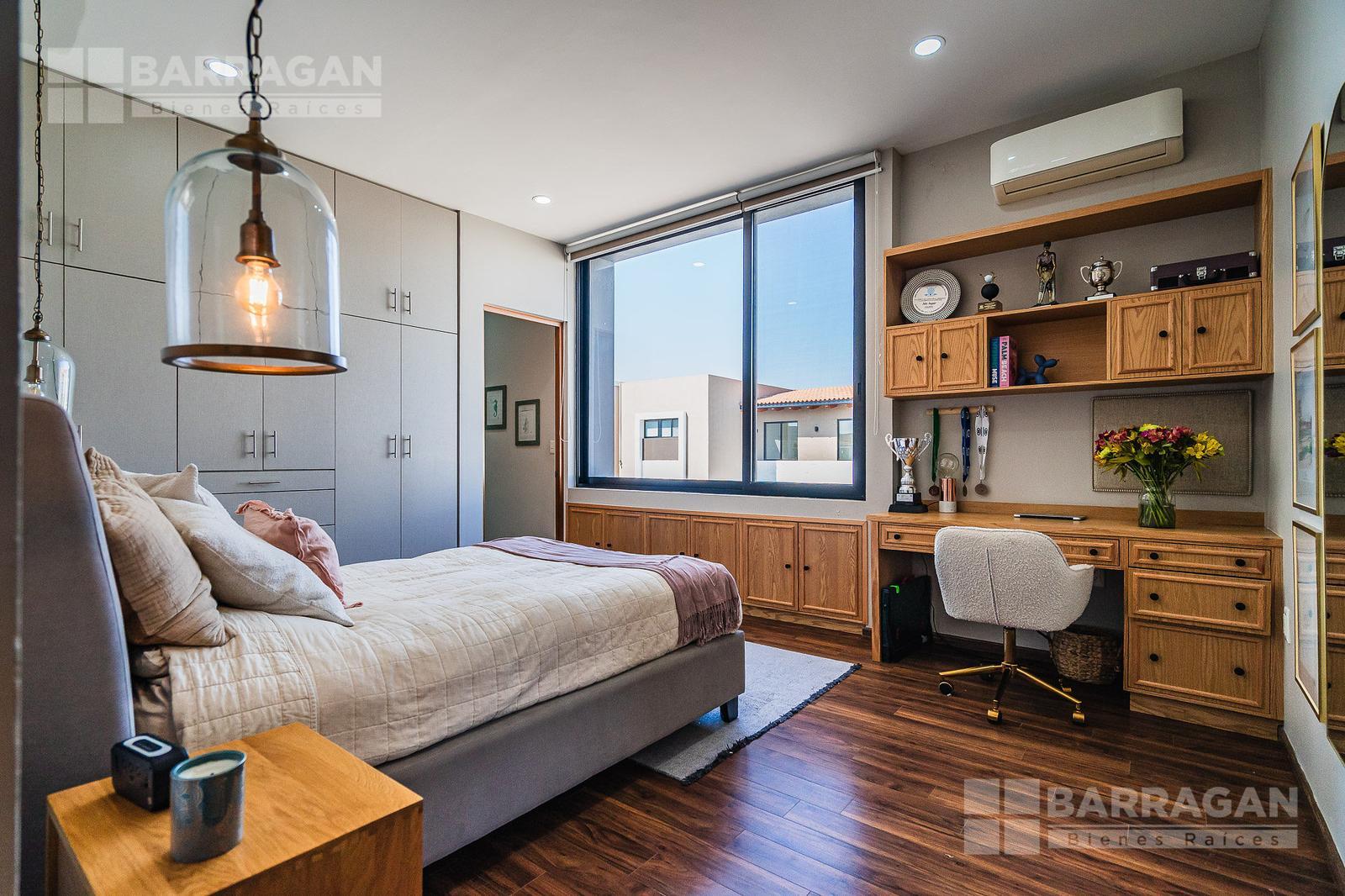En planta alta, la distribución continúa privilegiando la comodidad: la recámara principal ofrece un vestidor de gran tamaño y baño completo, mientras que las dos recámaras secundarias cuentan cada una con clóset y baño propio, garantizando privacidad para todos los integrantes de la familia. Además, dispone de una acogedora sala de TV con área de escritorio, perfecta para home office o estudio.
