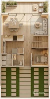 En planta baja, la distribución está pensada para la vida diaria y la convivencia: cochera para 2 a 3 autos, amplia sala-comedor con excelente iluminación natural, cocina integral con barra ideal para reuniones, área de lavado independiente, una recámara o estudio versátil, baño completo y un acogedor patio trasero.