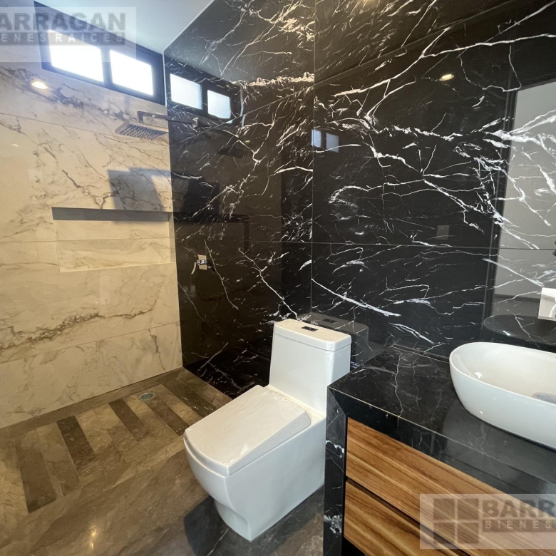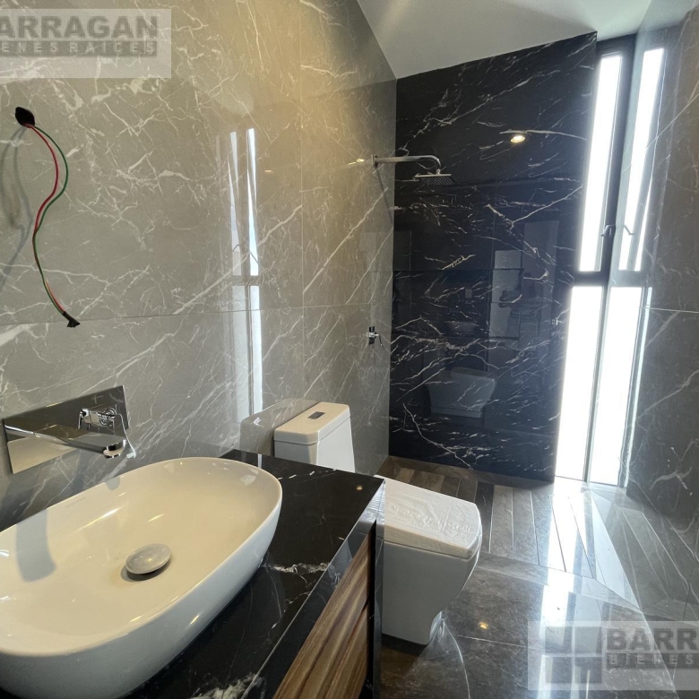 La cocina es espaciosa y moderna, y también incluye una oficina o estudio con baño completo, que puede usarse como cuarta recámara.