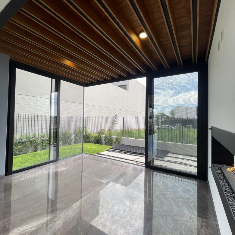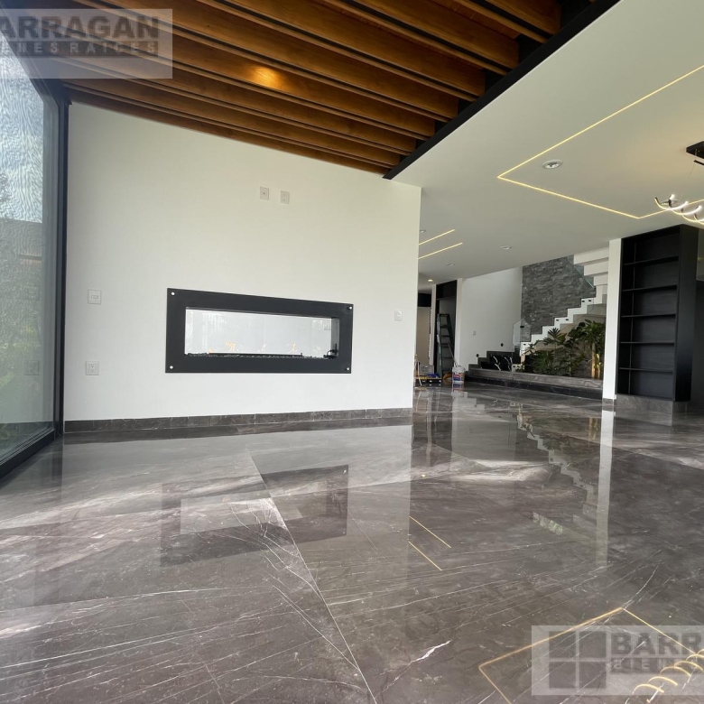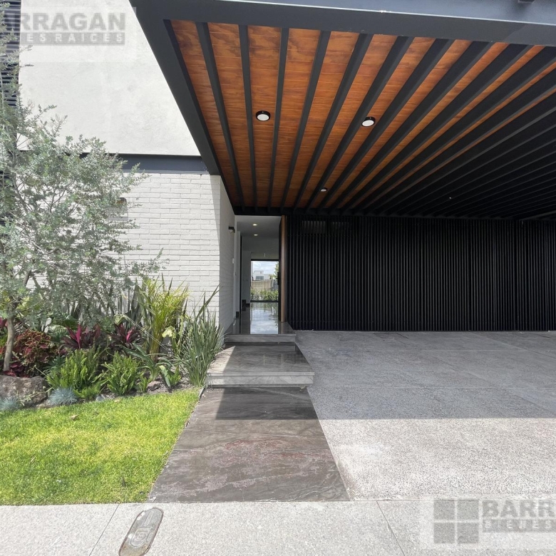 La casa posee una cochera techada para tres autos, una sala de doble altura con un área de bar, un comedor, terraza y un jardín ideal para relajarse.