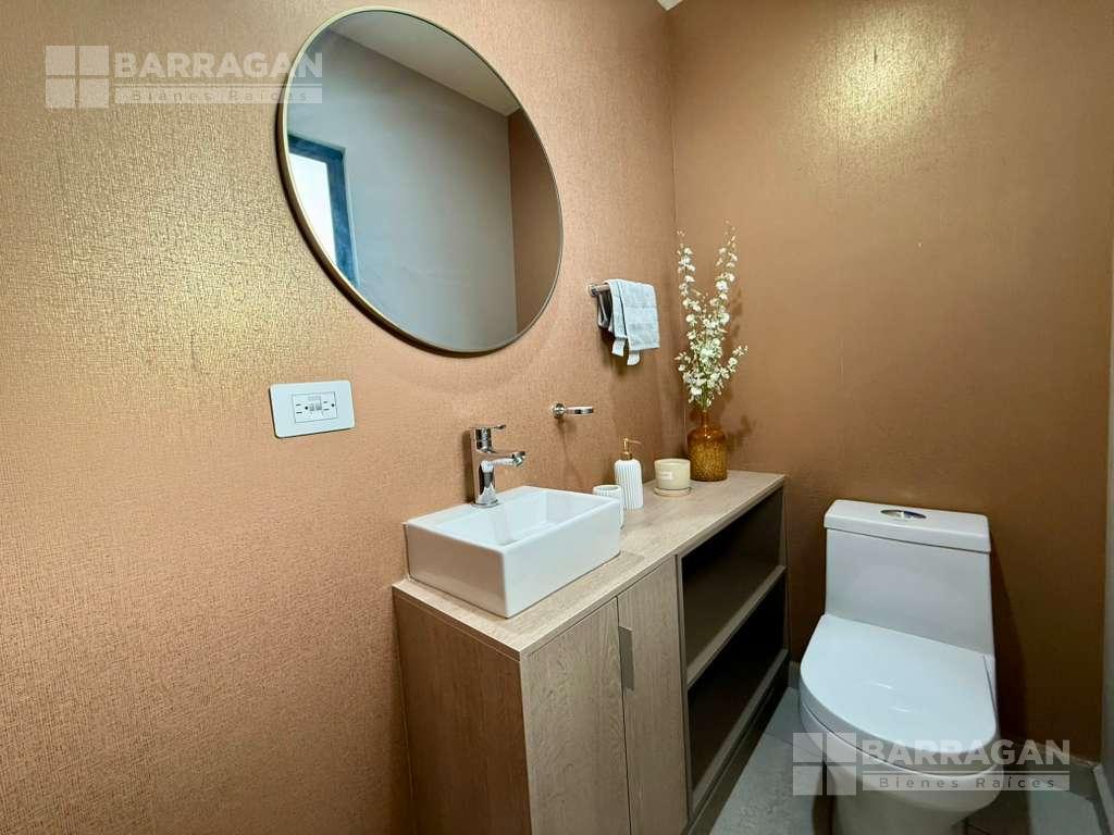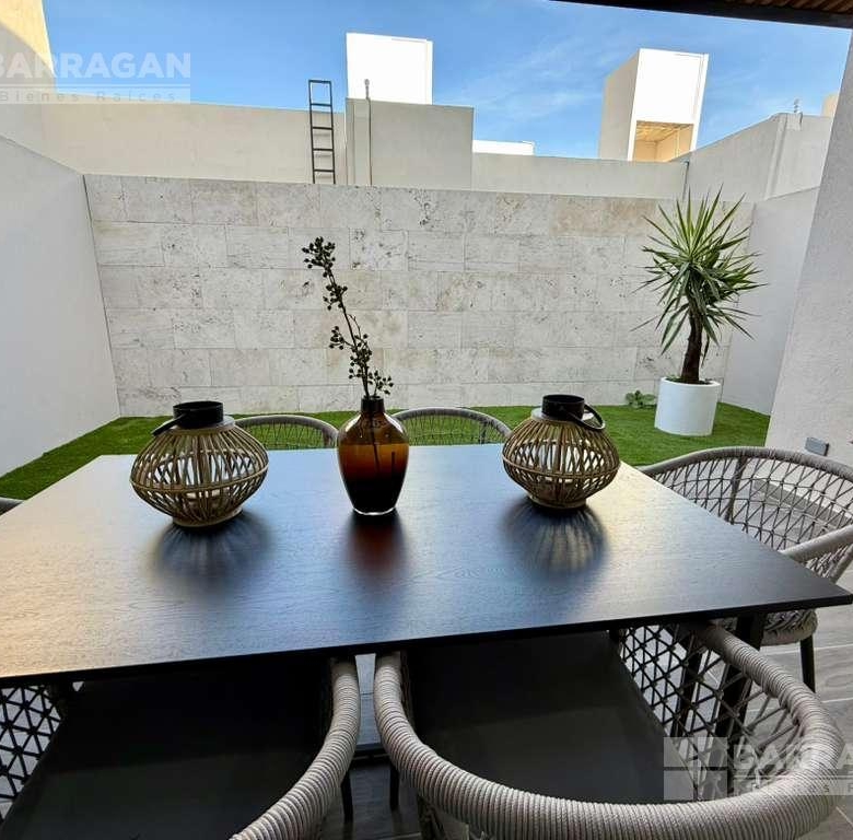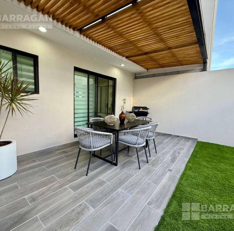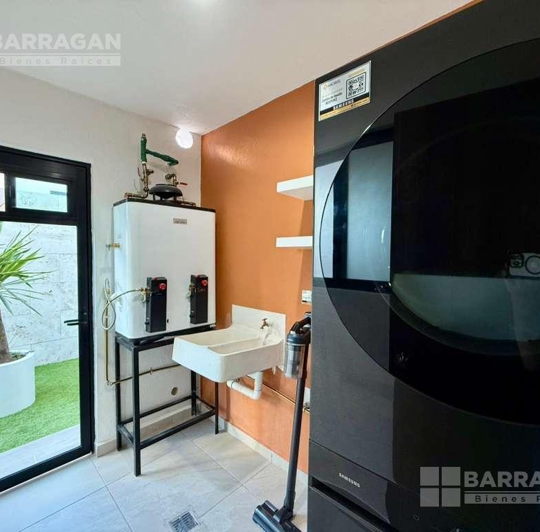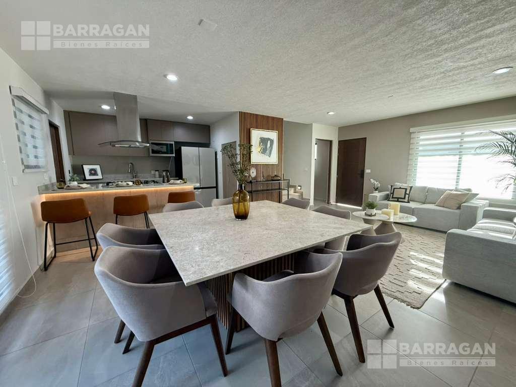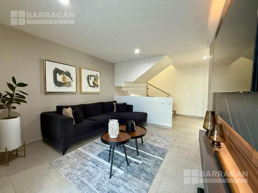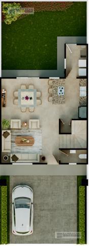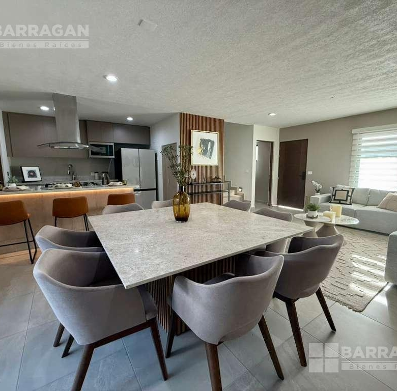 En planta baja cuenta con sala comedor, moderna cocina equipada con barra desayunadora, alacena, jardín, Cuarto de lavado, baño de visitas y 2 cajones de estacionamiento.