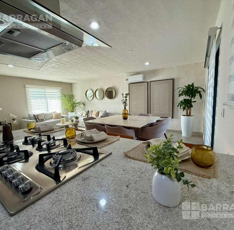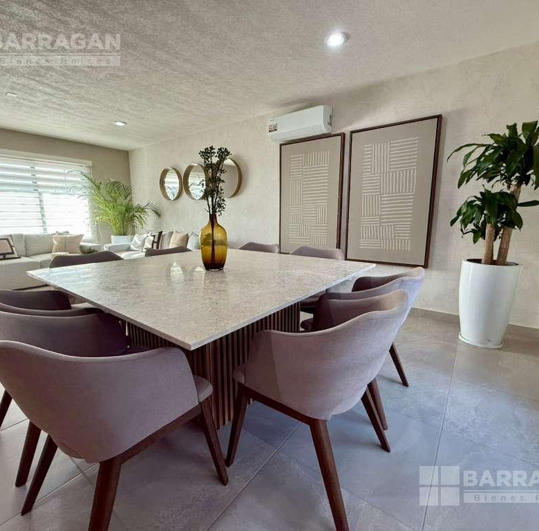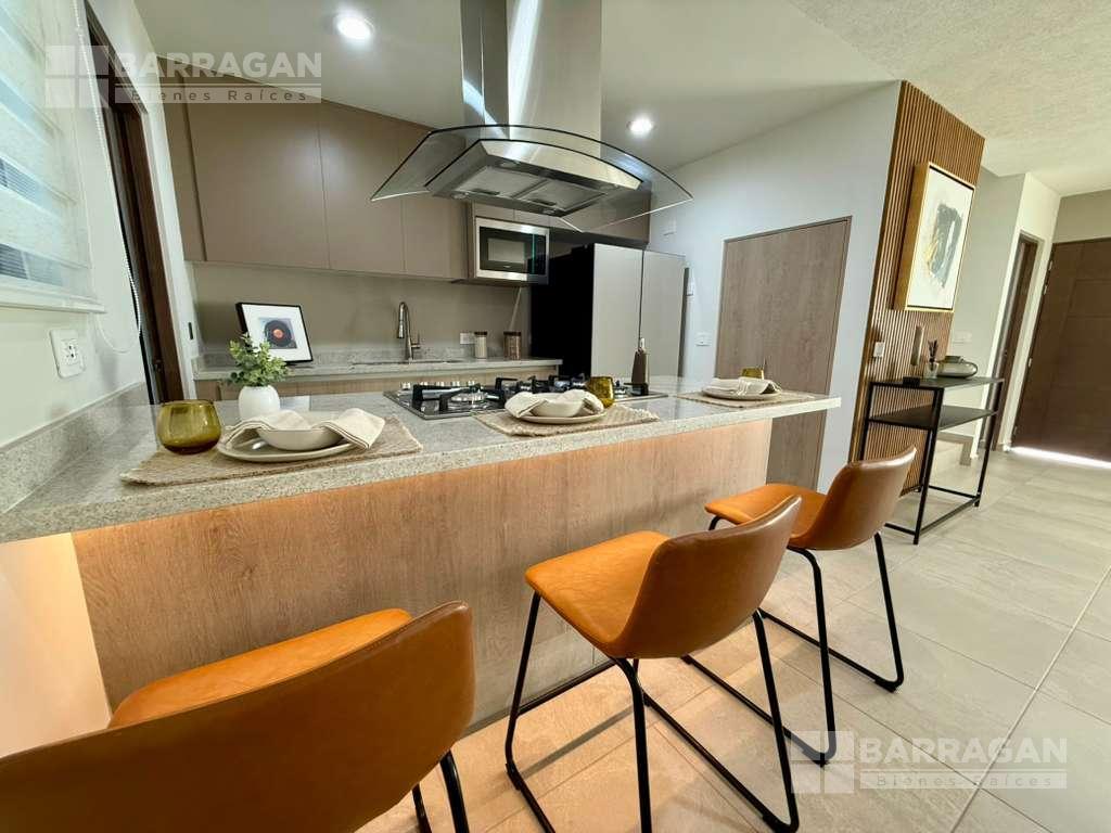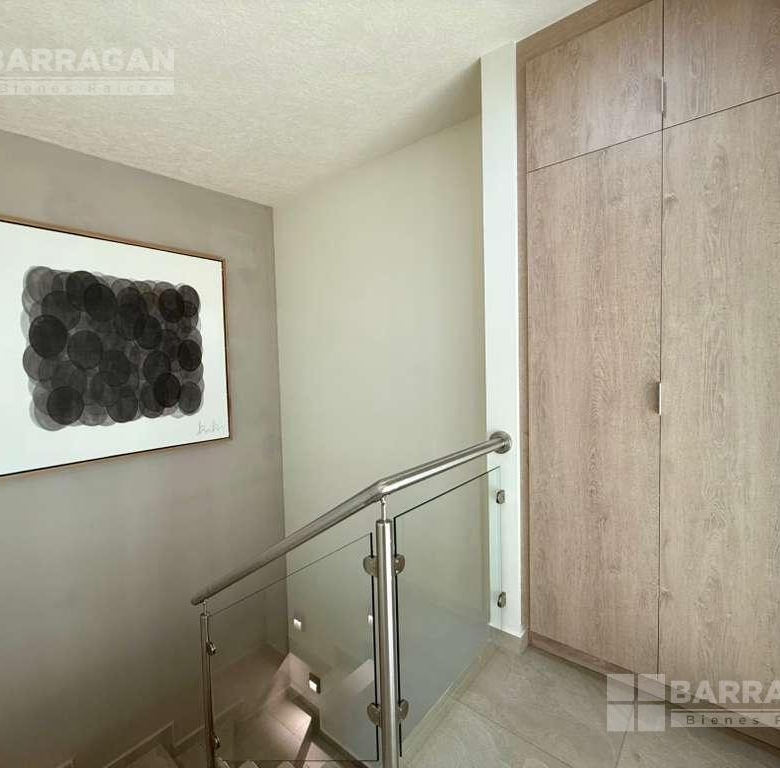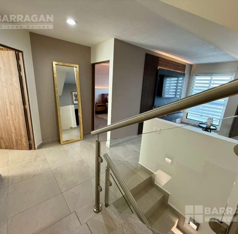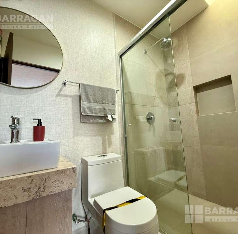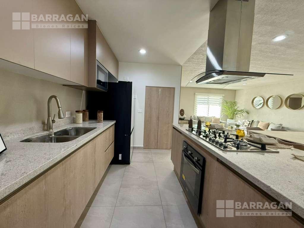 En planta baja cuenta con sala comedor, moderna cocina equipada con barra desayunadora, alacena, jardín, Cuarto de lavado, baño de visitas y 2 cajones de estacionamiento.