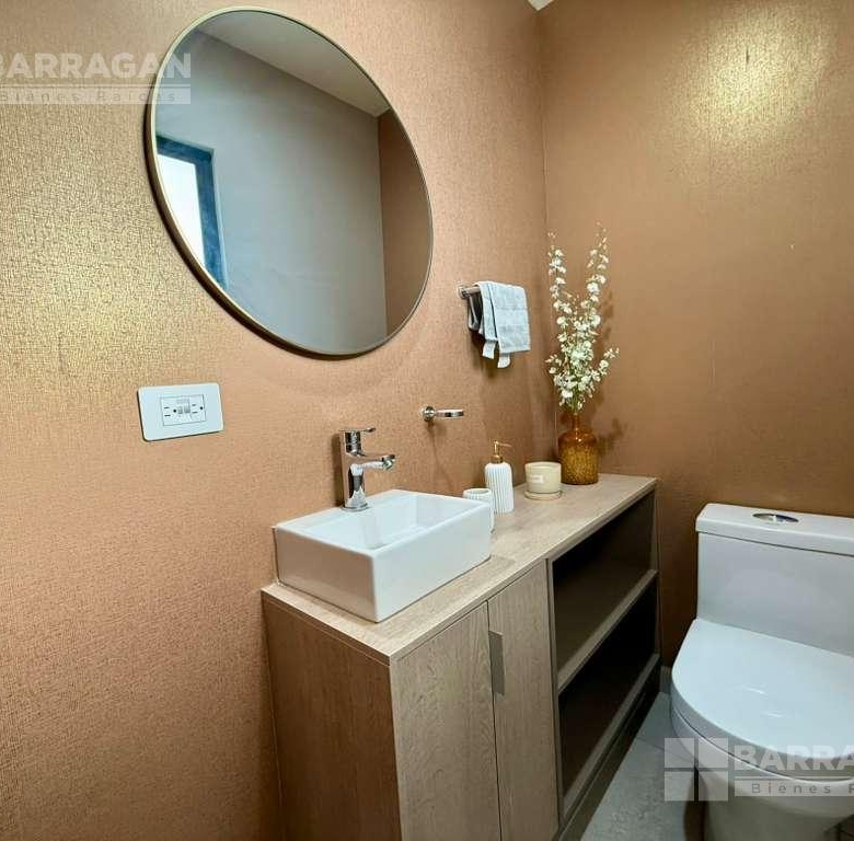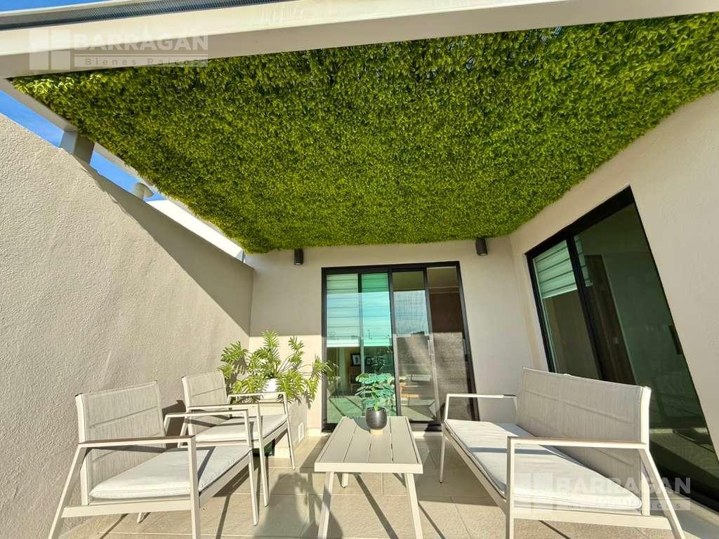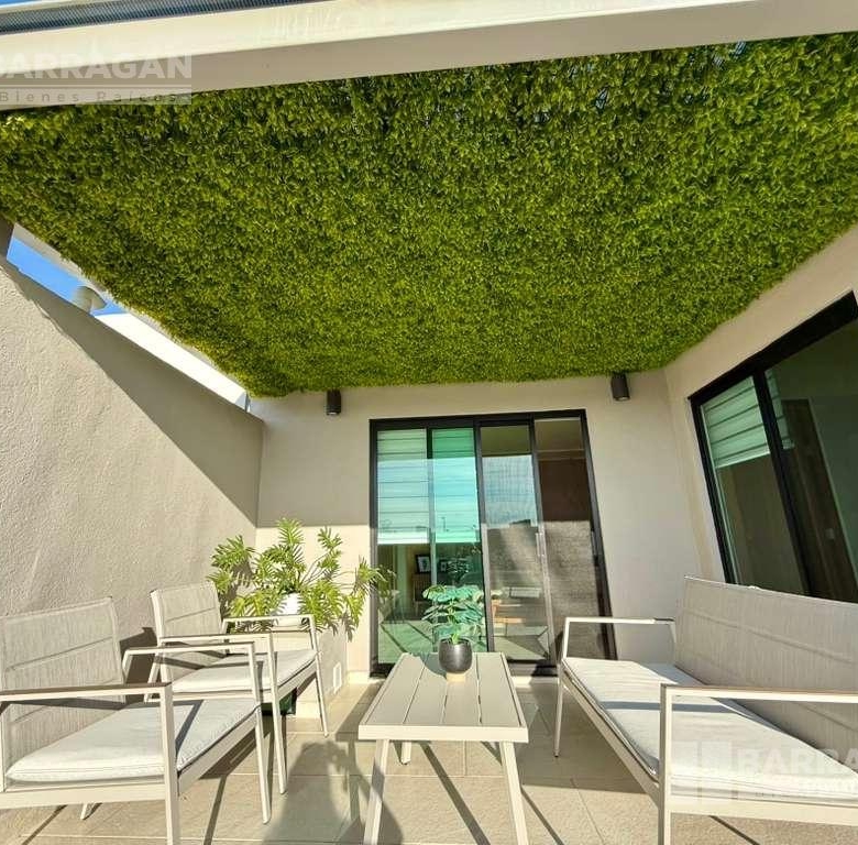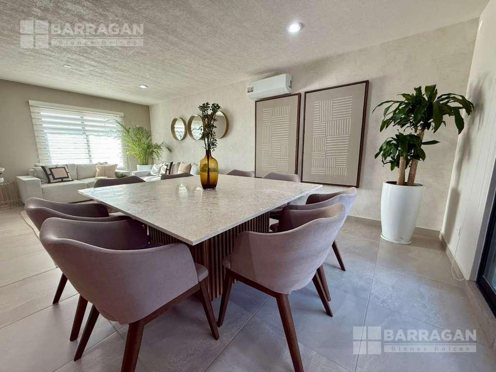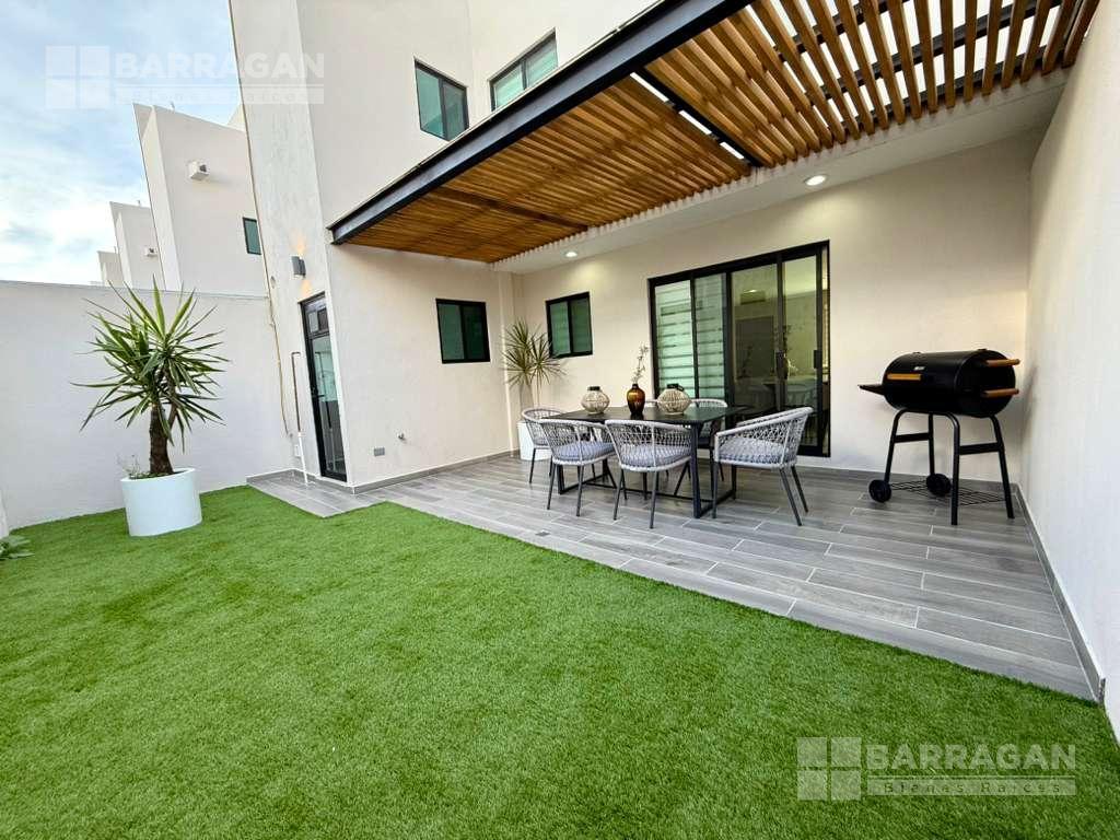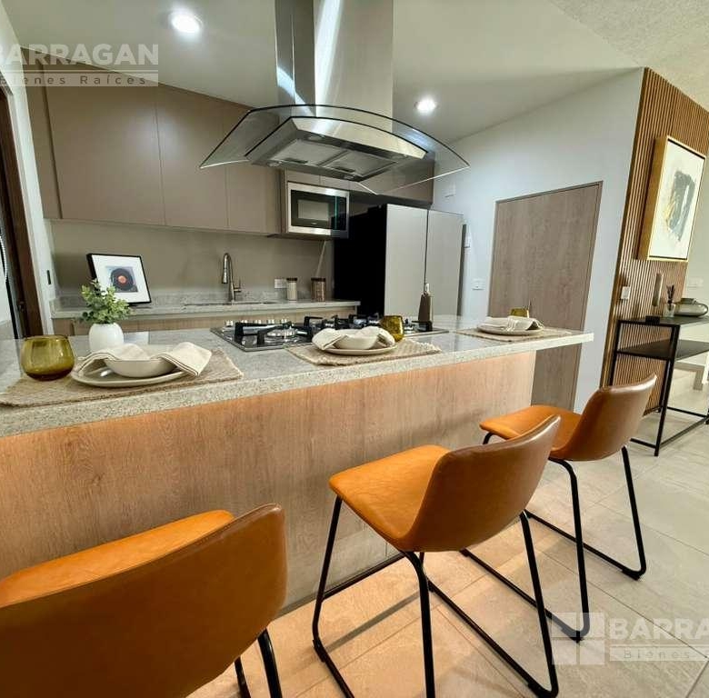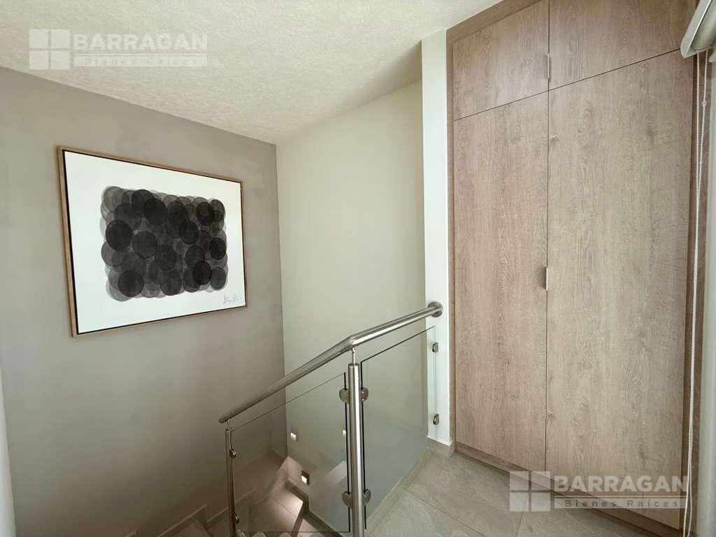 En planta baja cuenta con sala comedor, moderna cocina equipada con barra desayunadora, alacena, jardín, Cuarto de lavado, baño de visitas y 2 cajones de estacionamiento.
