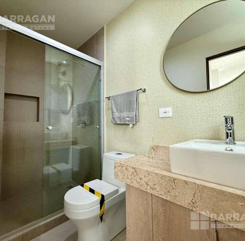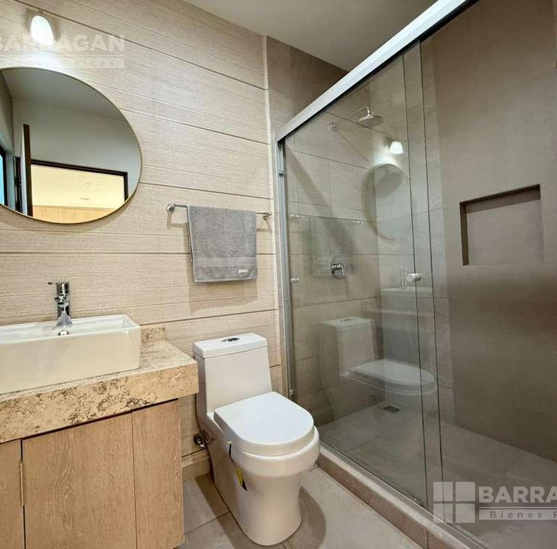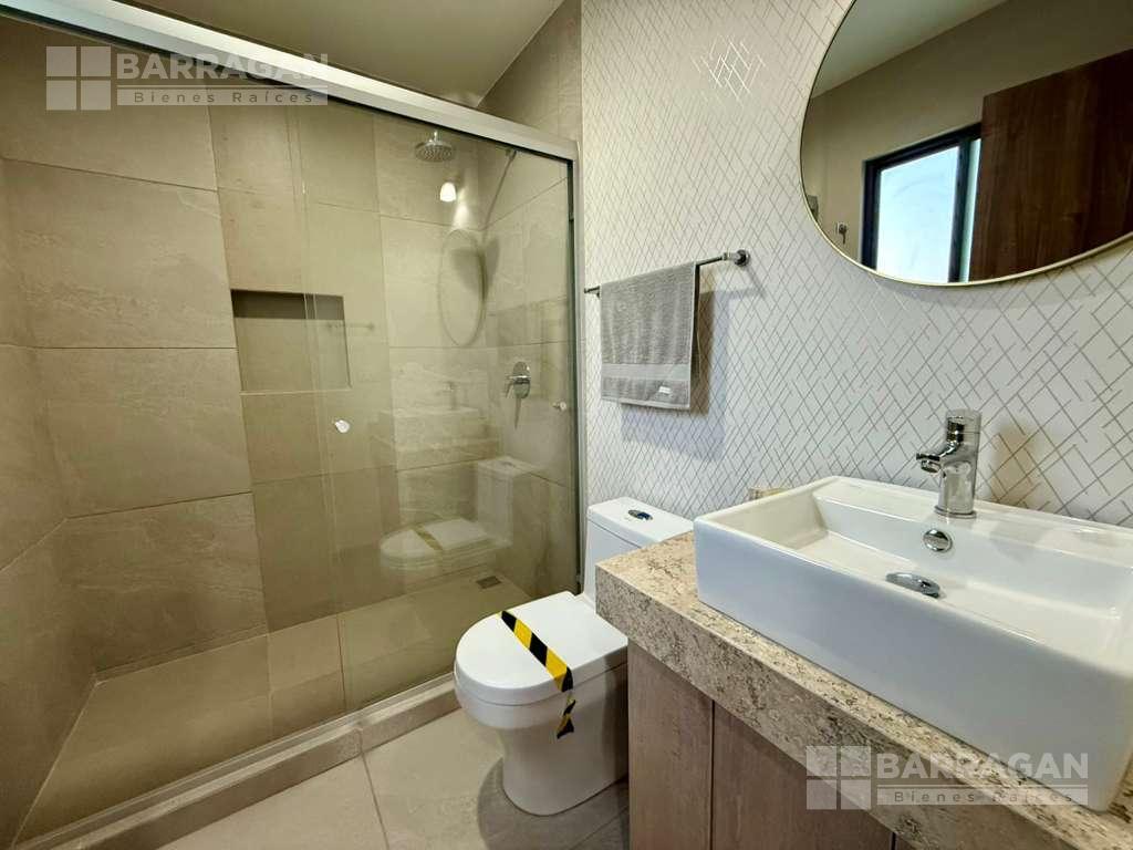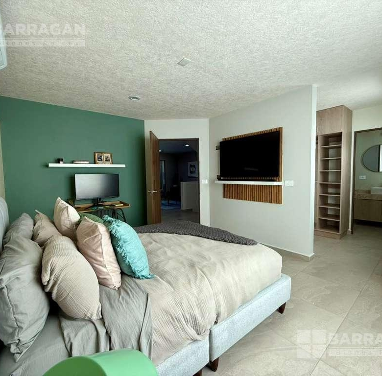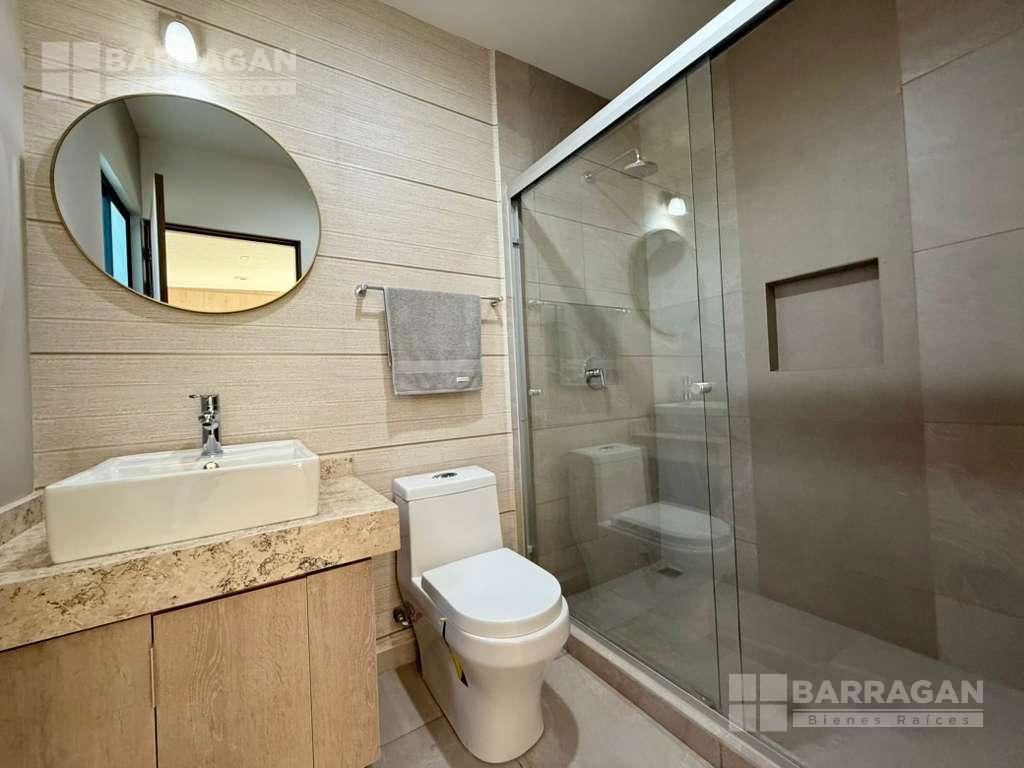 En el primer nivel la recámara principal con baño completo, walking closet, recámara secundaria con closet y baño, Sala de T.V. con baño completo.