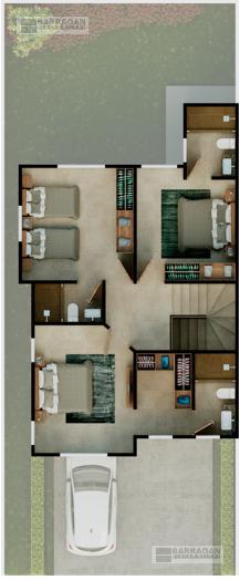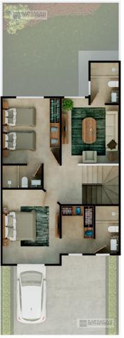 En planta alta tenemos la Recámara principal con baño y Walking closet y dos recámaras secundarias con baño y closet