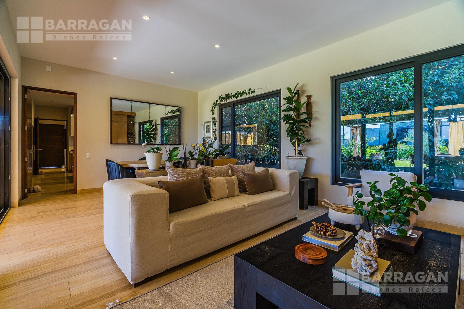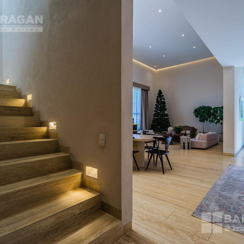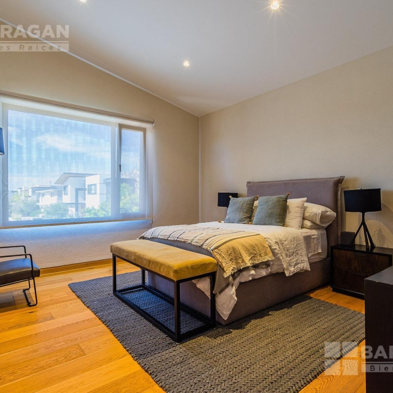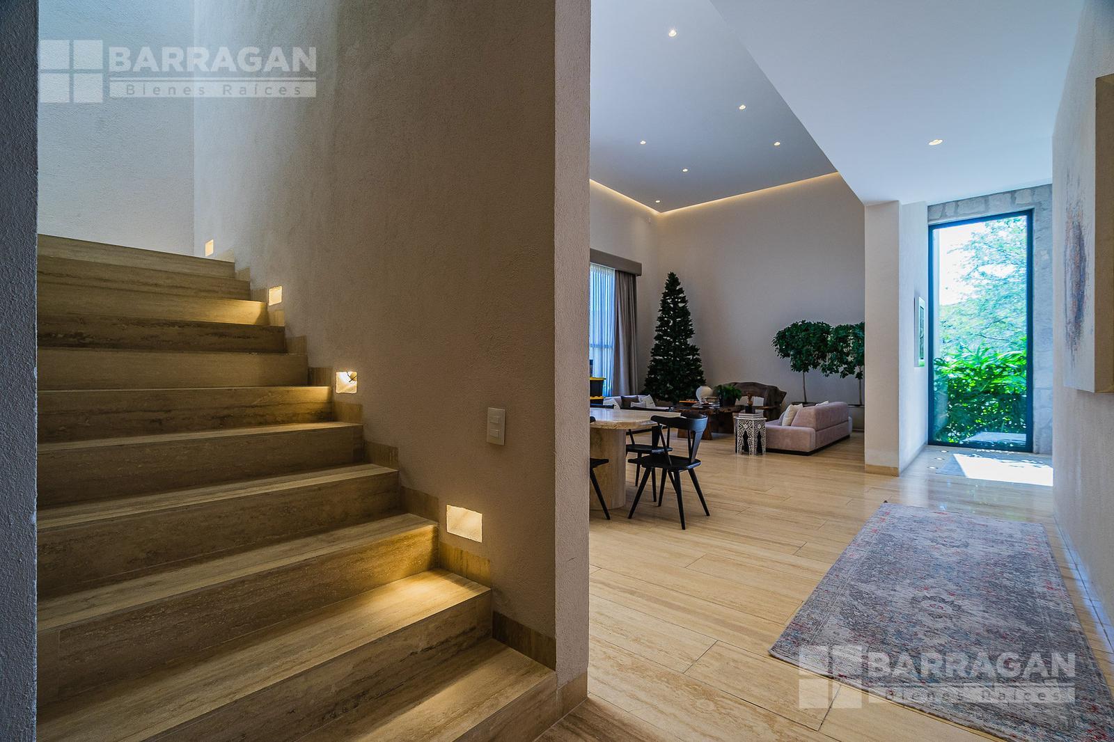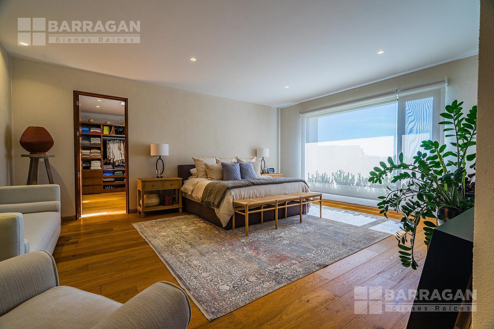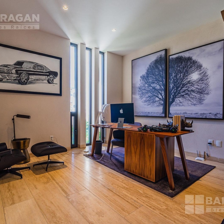 En la planta baja cuenta con un recibidor a doble altura que da la bienvenida a un despacho privado, baño de visitas, sala y comedor también a doble altura, además de una cocina equipada de lujo y un acogedor family room. La terraza es muy amplia y conecta con un gran jardín, ideal para disfrutar al aire libre. Dispone de garage cubierto para tres autos y recámara de servicio con baño completo.