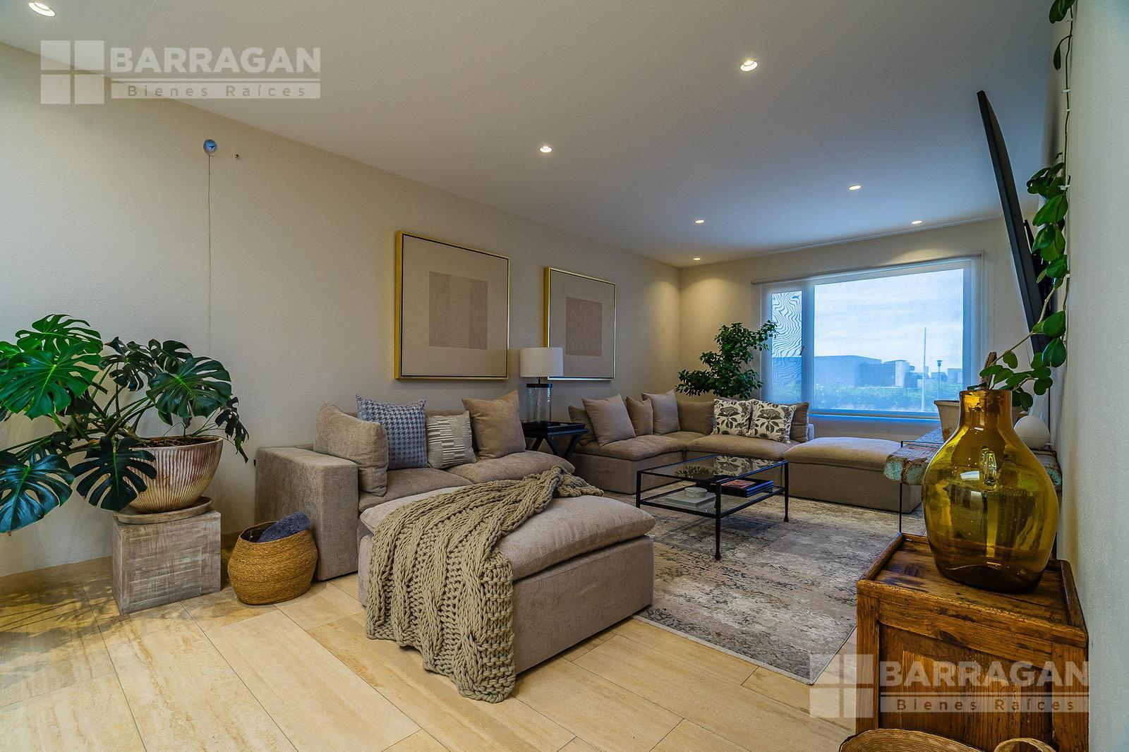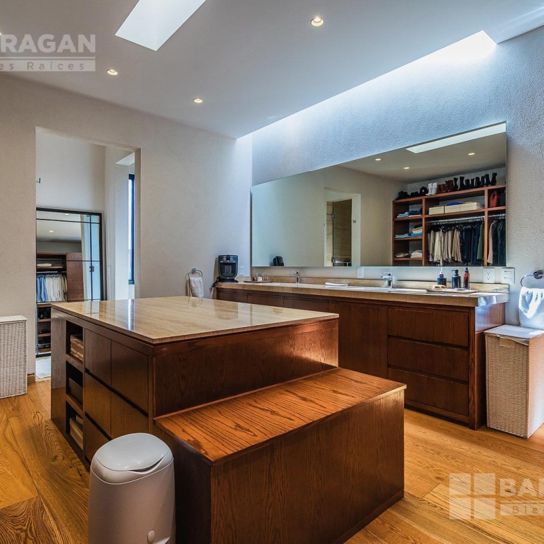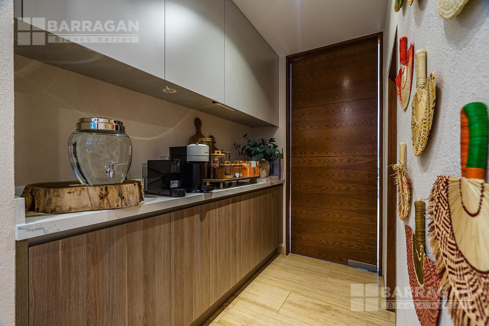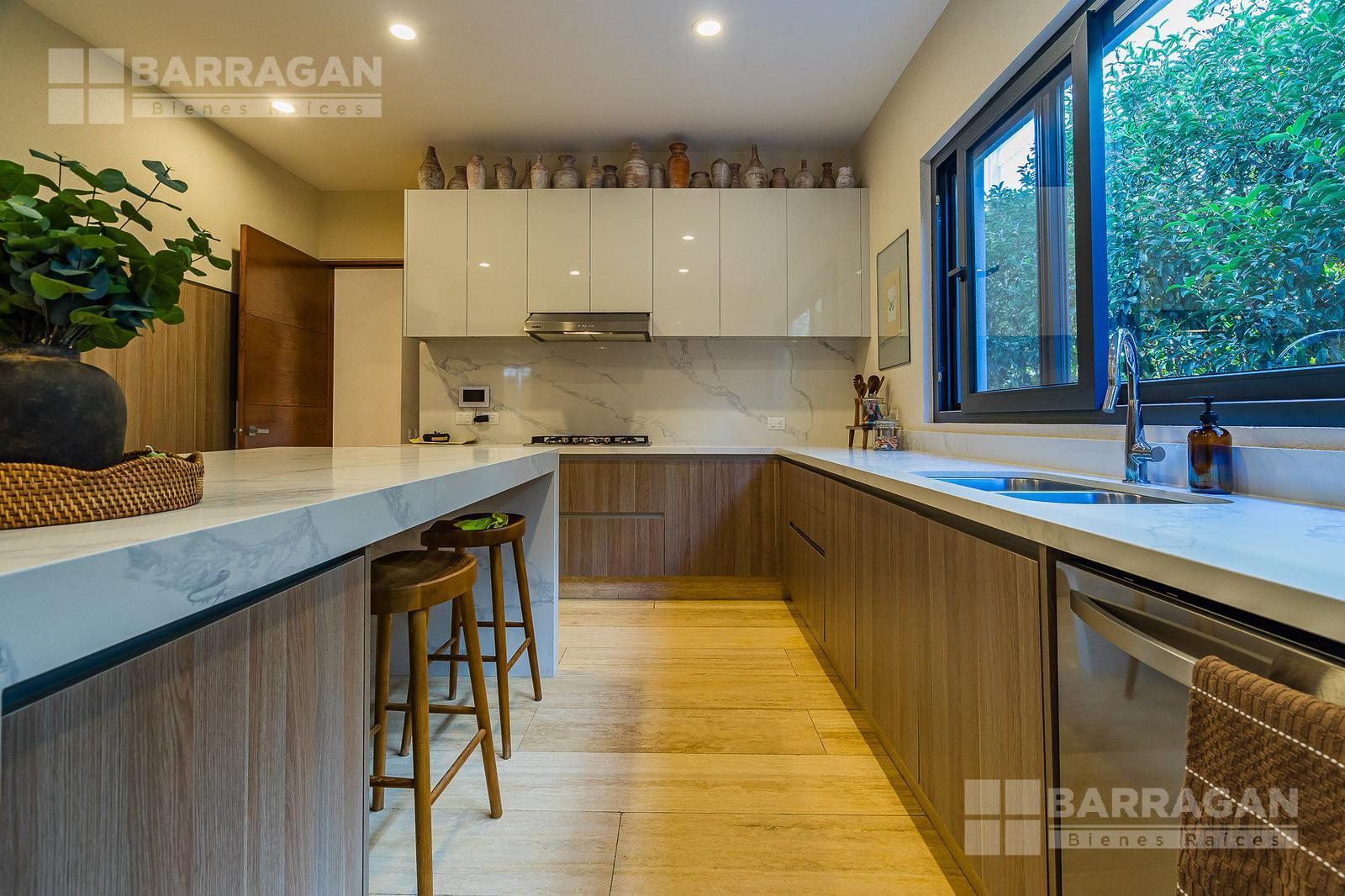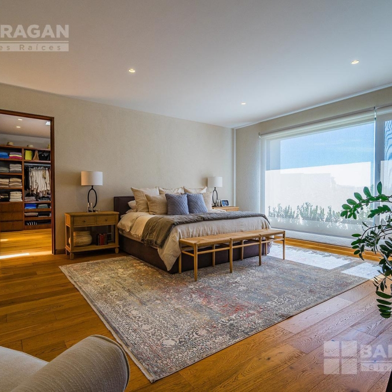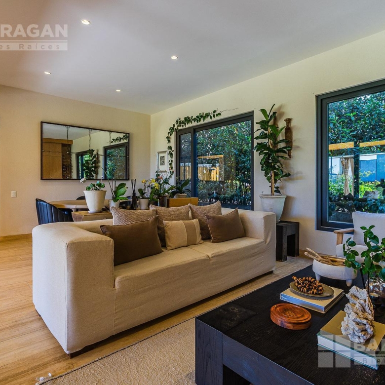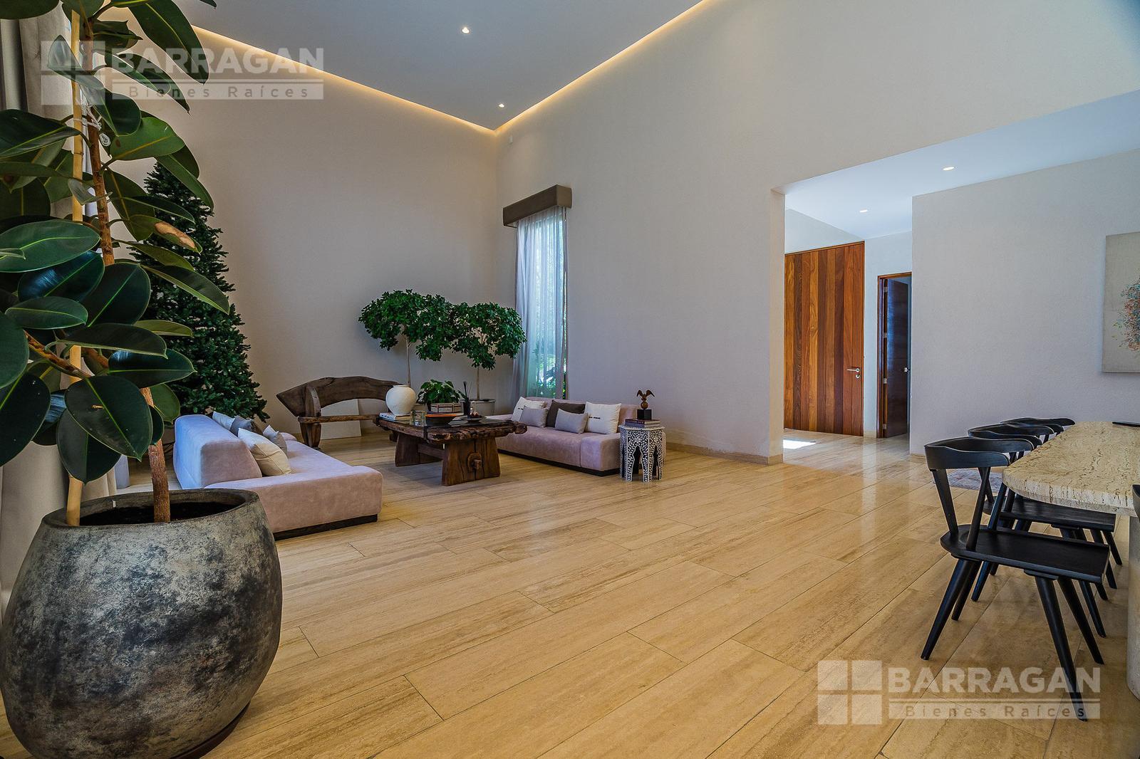 En la planta baja cuenta con un recibidor a doble altura que da la bienvenida a un despacho privado, baño de visitas, sala y comedor también a doble altura, además de una cocina equipada de lujo y un acogedor family room. La terraza es muy amplia y conecta con un gran jardín, ideal para disfrutar al aire libre. Dispone de garage cubierto para tres autos y recámara de servicio con baño completo.
