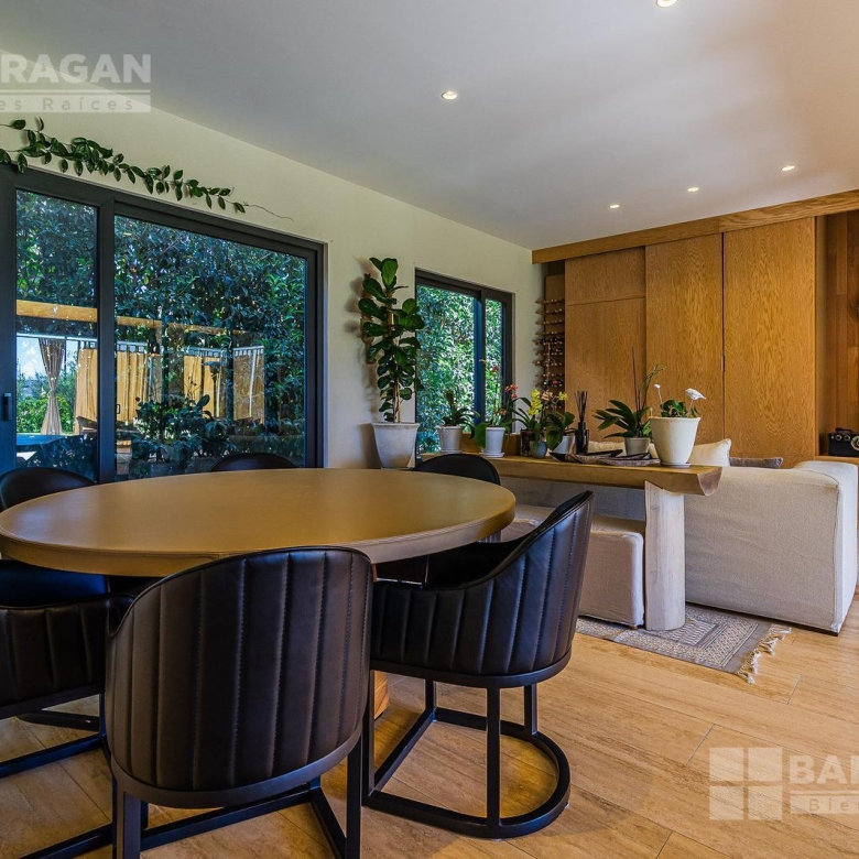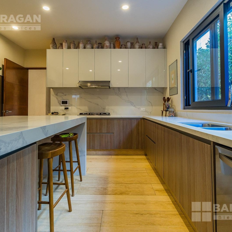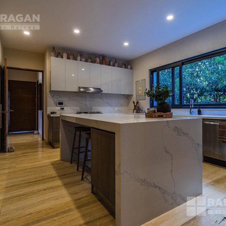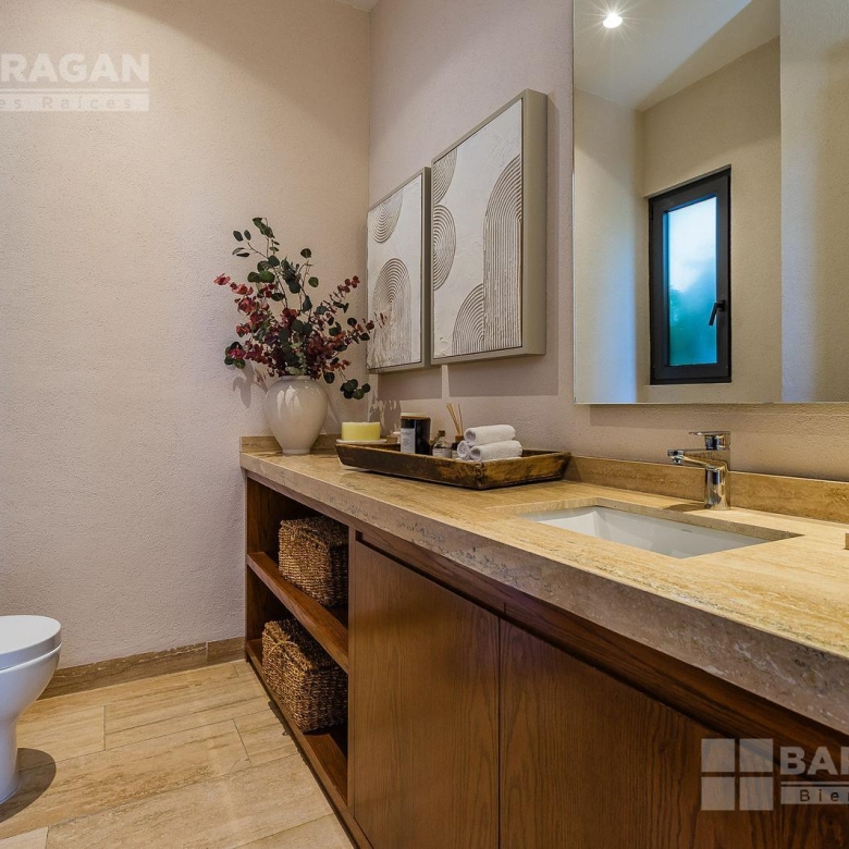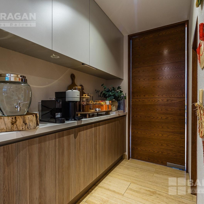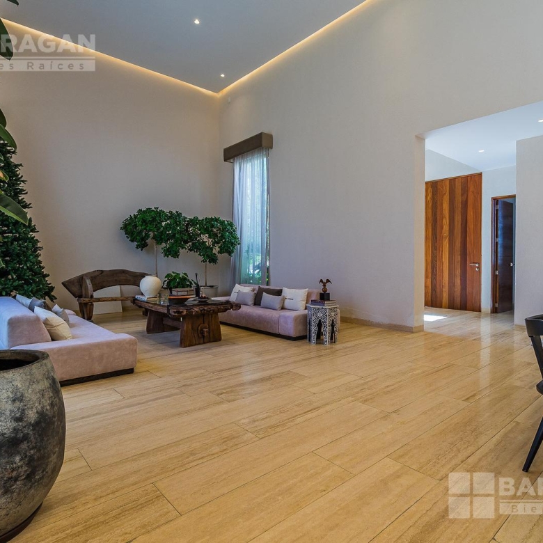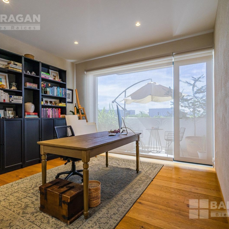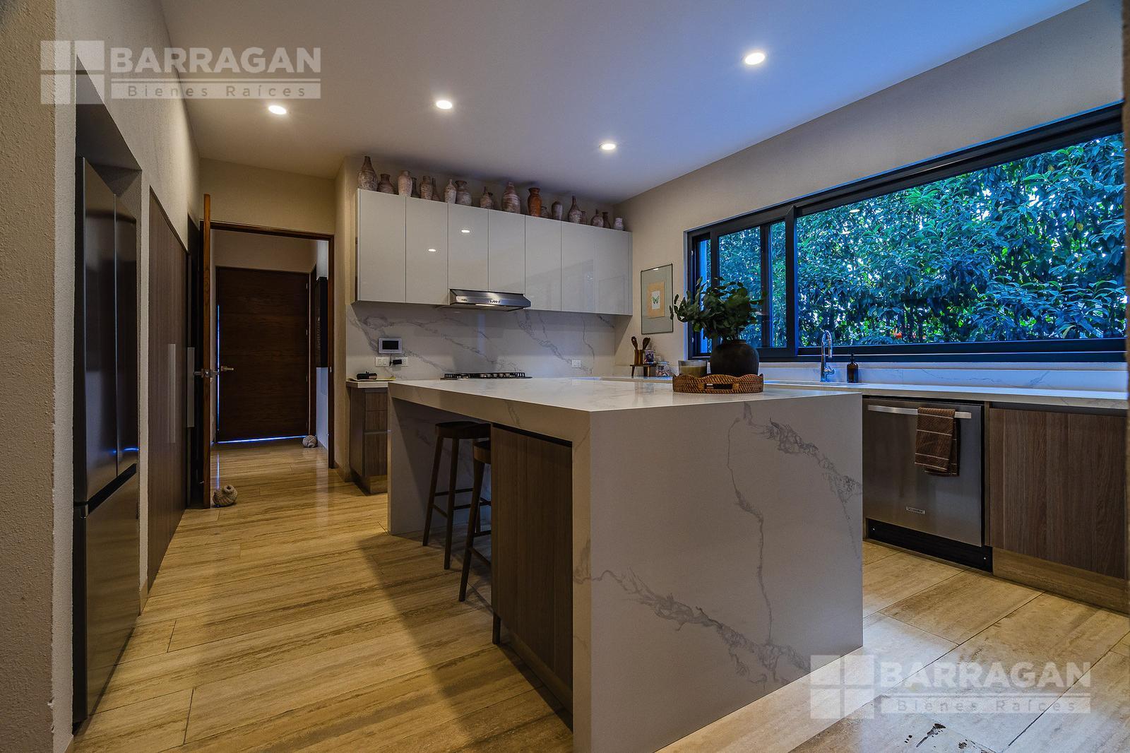 En la planta baja cuenta con un recibidor a doble altura que da la bienvenida a un despacho privado, baño de visitas, sala y comedor también a doble altura, además de una cocina equipada de lujo y un acogedor family room. La terraza es muy amplia y conecta con un gran jardín, ideal para disfrutar al aire libre. Dispone de garage cubierto para tres autos y recámara de servicio con baño completo.