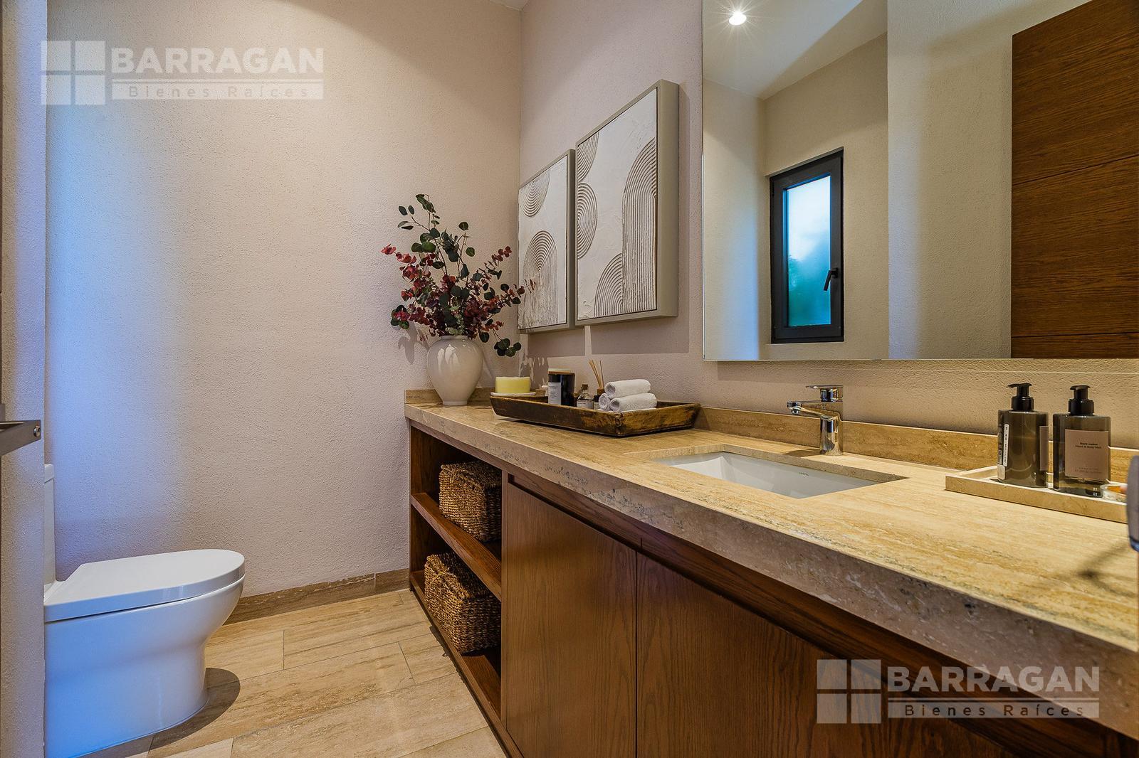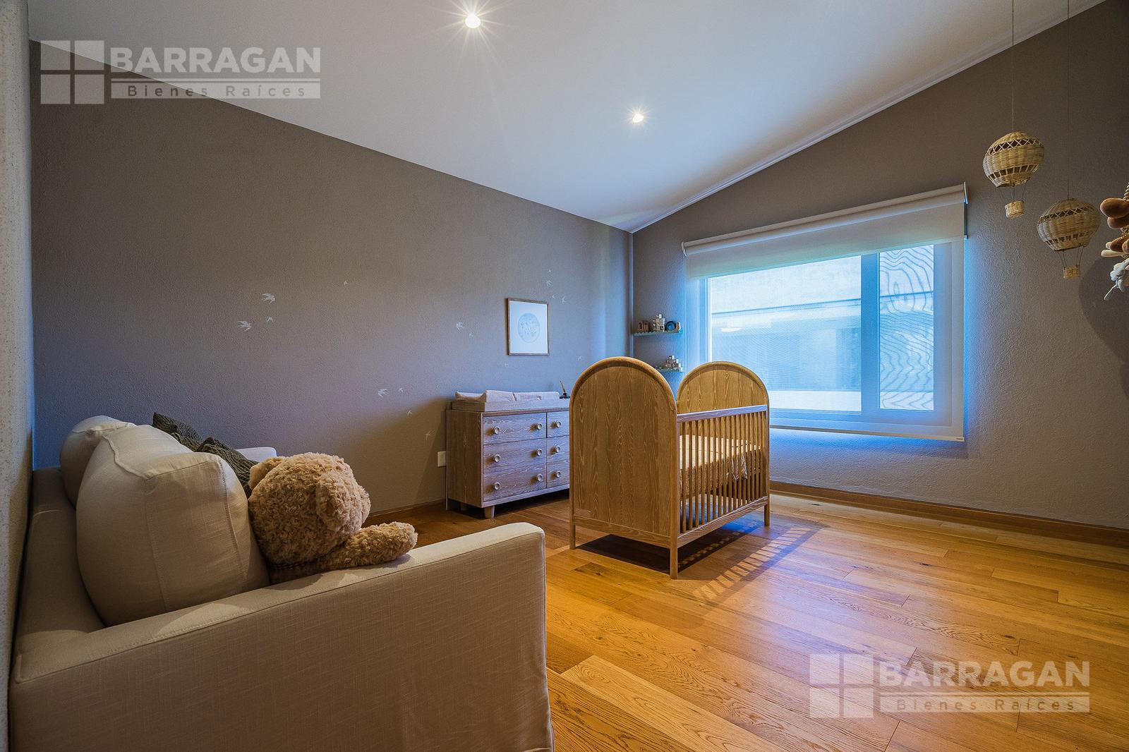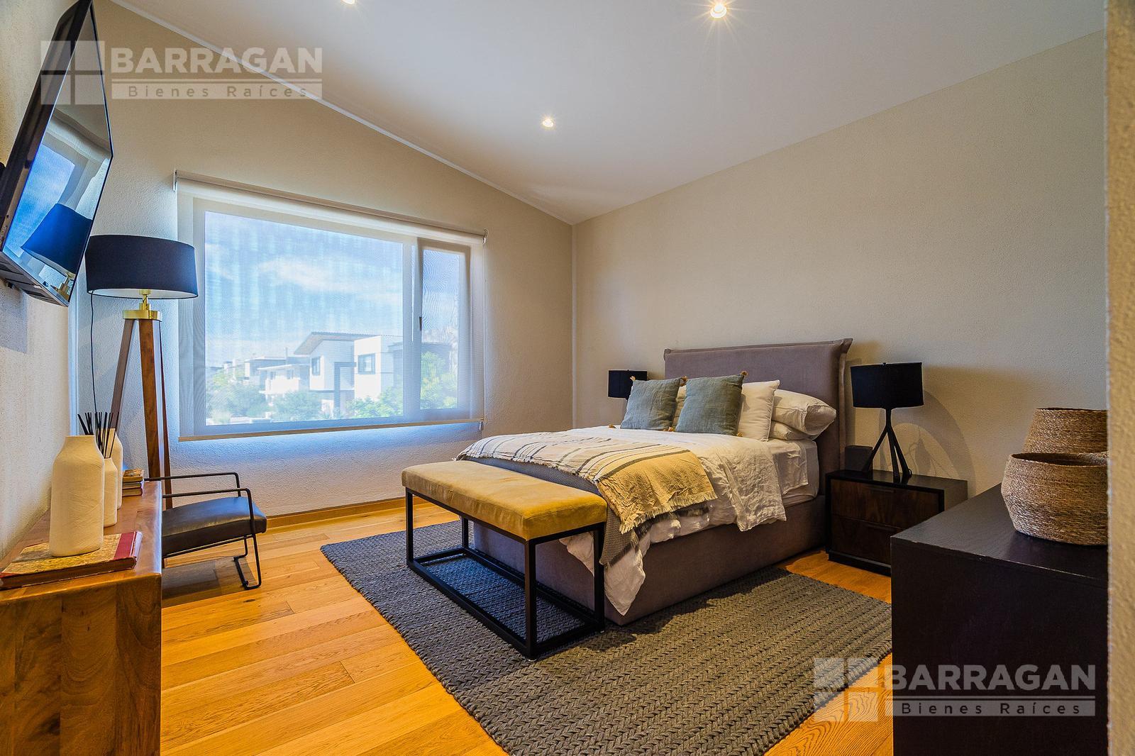 En la planta alta se encuentra un cómodo cuarto de televisión y cuatro recámaras, tres de ellas con vestidor y baño completo, y una cuarta recámara también con baño propio.