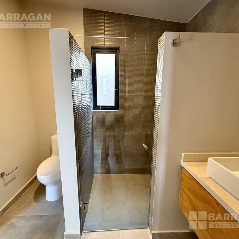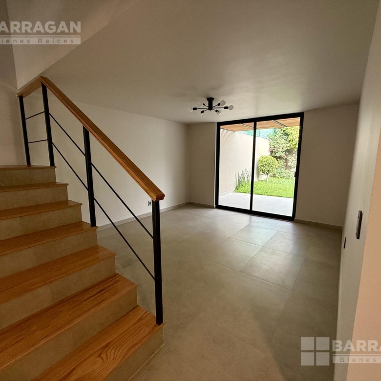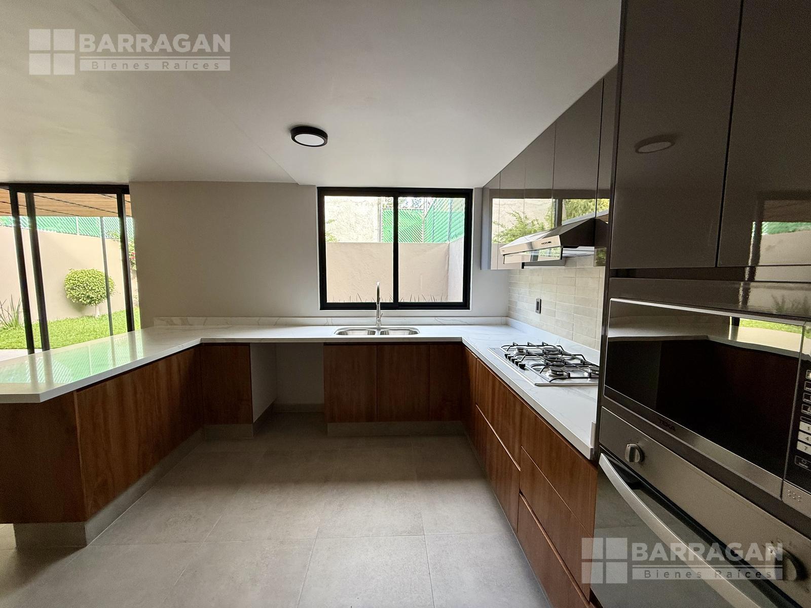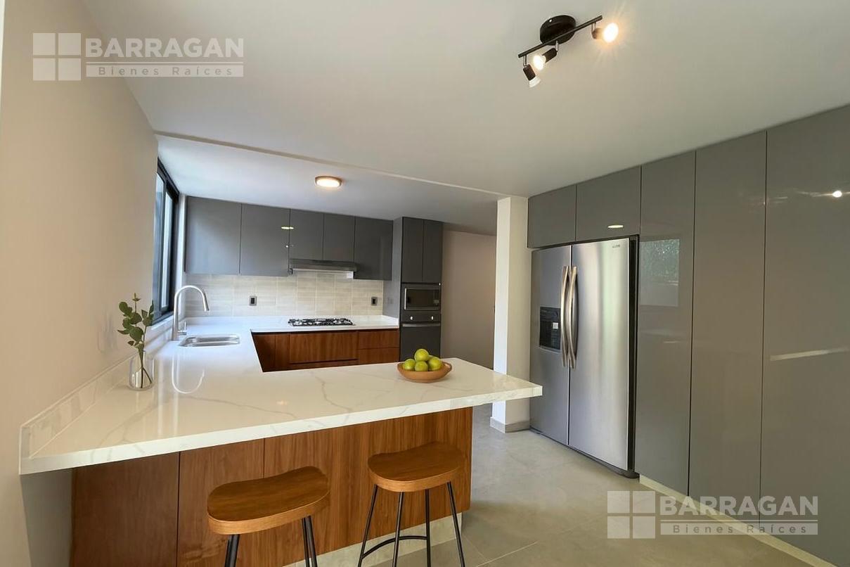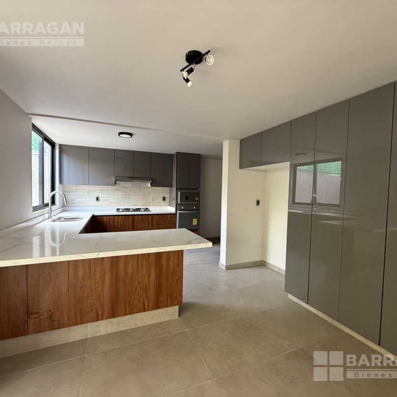 En planta baja nos recibe la sala y el comedor integrándose con una amplia terraza techada y un jardín muy bonito; la cocina muy bien equipada con cubierta de cuarzo y muebles de tzalam.