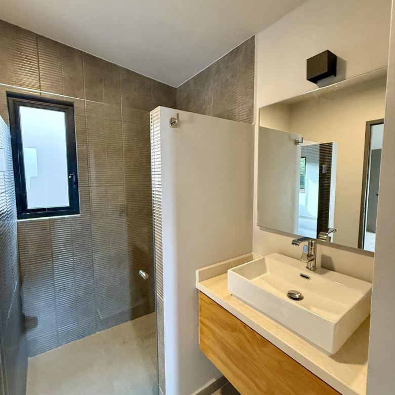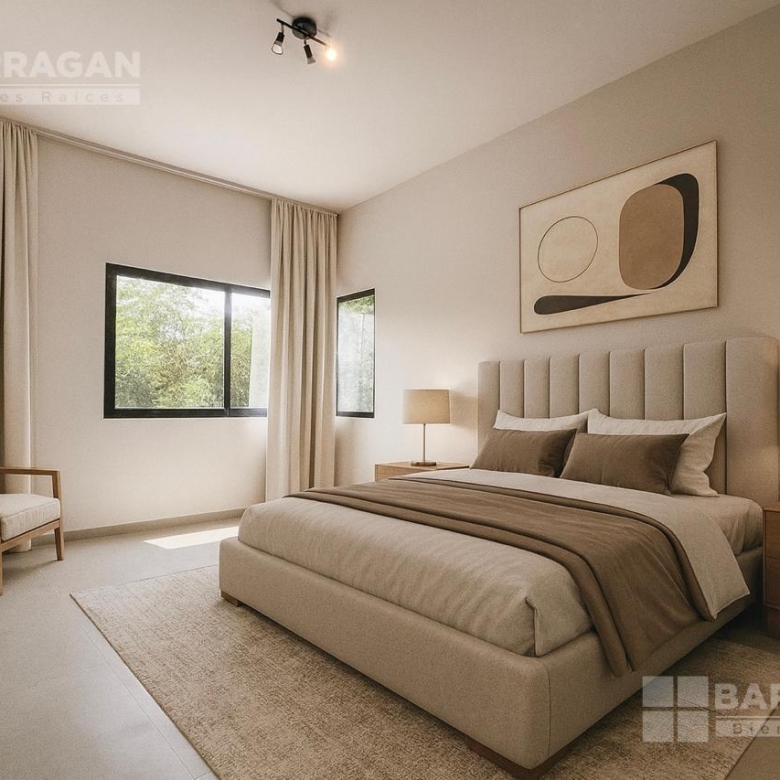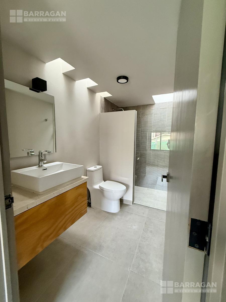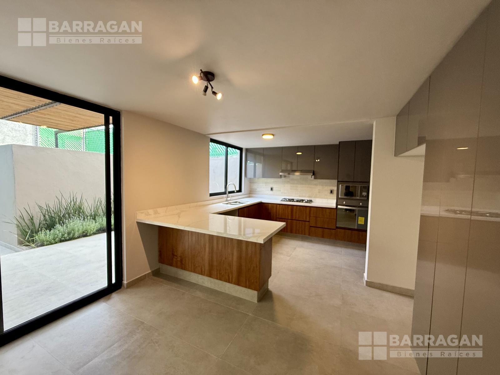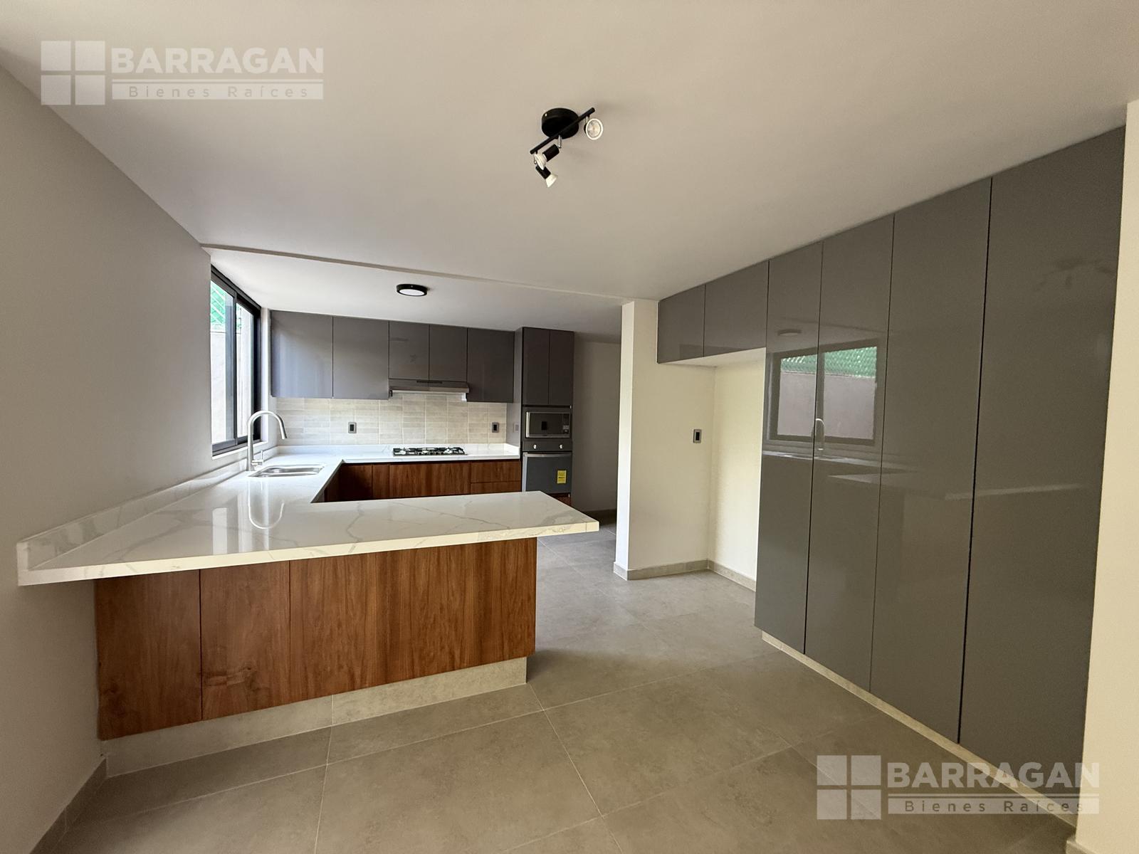 En planta baja nos recibe la sala y el comedor integrándose con una amplia terraza techada y un jardín muy bonito; la cocina muy bien equipada con cubierta de cuarzo y muebles de tzalam.