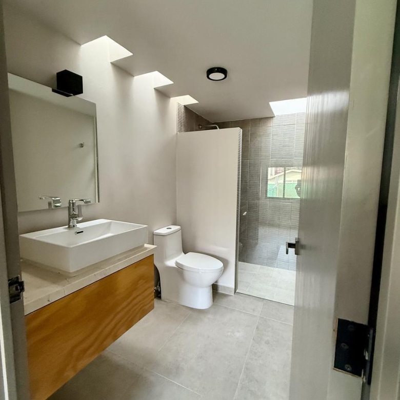 En planta alta nos encontramos con cuatro recámaras, dos comparten 1 baño completo, una tercera con baño completo y clóset y la principal con walking clóset y baño completo.