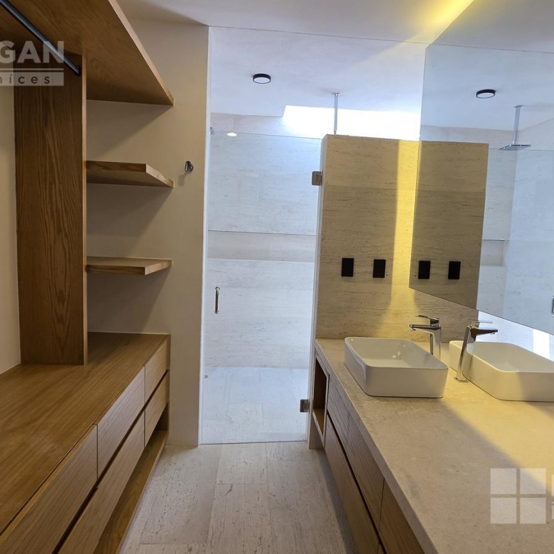 Se accede a través de un vestíbulo que conduce a la sala de TV y a las tres recámaras, todas con vestidor y baño completo. La recámara principal destaca por su amplitud y excelente distribución.