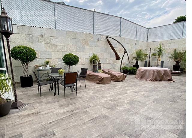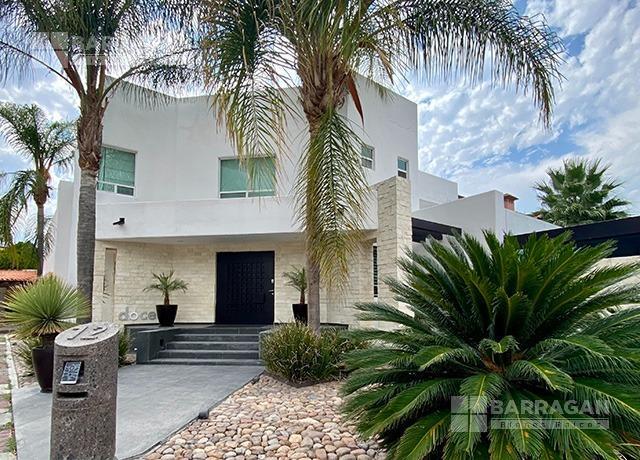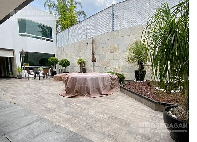En planta baja cuenta con dos estudios, medio baño de visitas, cuarto de servicio, cuarto de lavado, cocina integral con isla, cochera techada para 4 autos, patio trasero y terraza, y un bungaló con salón de juegos y gimnasio.