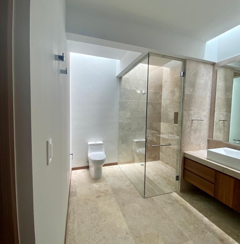 En planta alta se encuentra la recámara principal con vestidor y baño completo, dos recámaras secundarias con closet y baño, terraza compartida para estas recamaras y para la recámara principal.