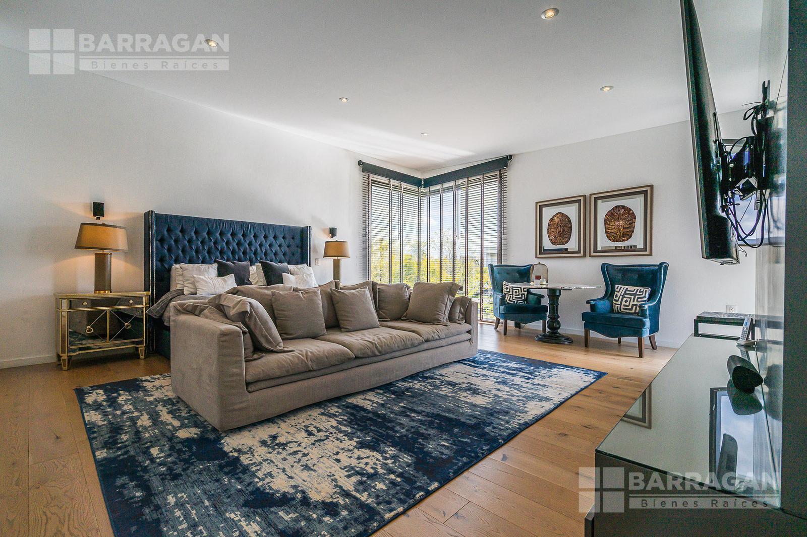 Subiendo a planta alta se encuentran tres recámaras, la principal tiene un espacioso vestidor y baño con doble servicio, dos recámaras secundarias con baño y vestidor, amplia sala de televisión. Desde planta alta podrás disfrutar de una increíble vista al lago.