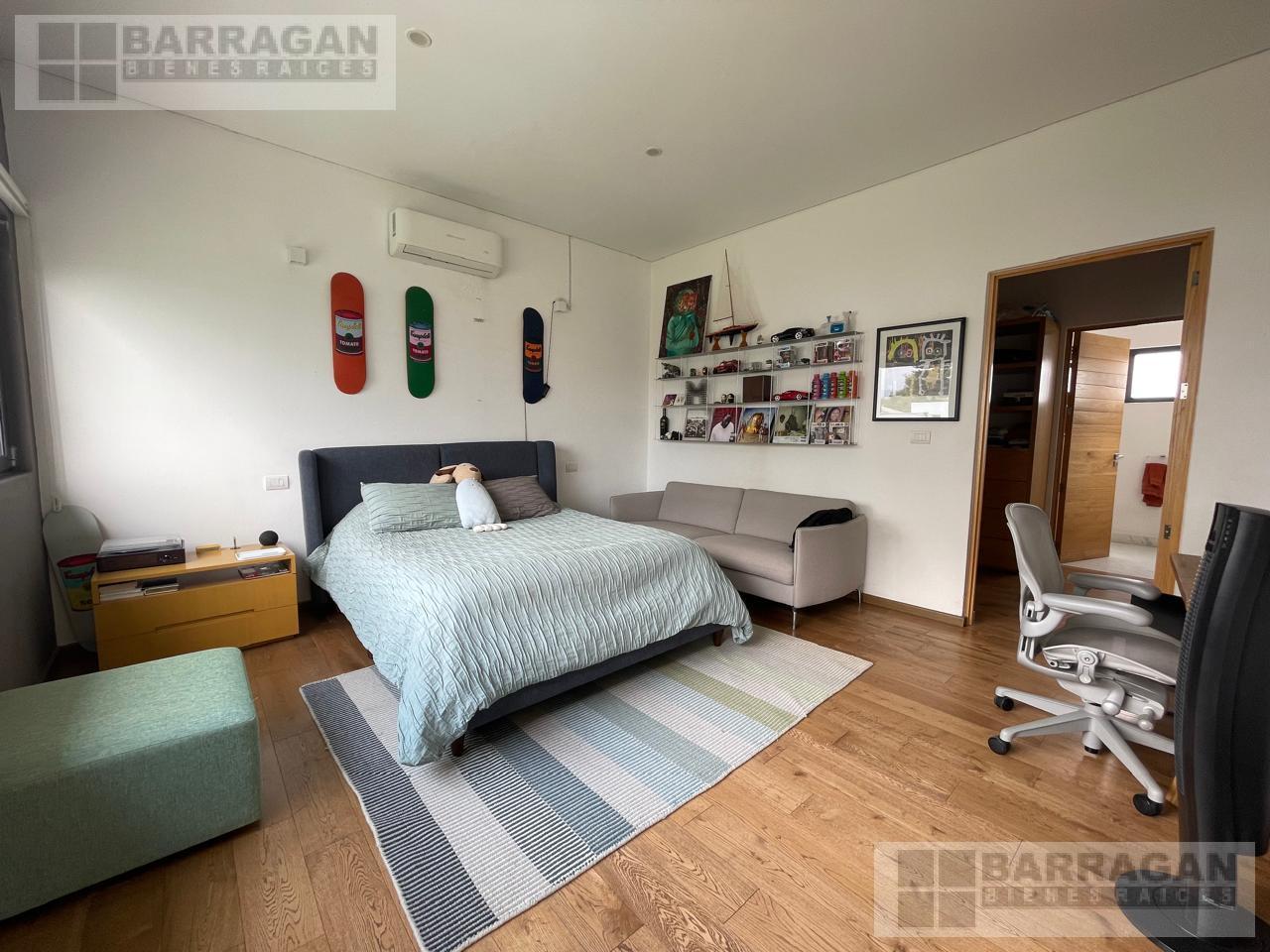En planta alta te recibe un pasillo con ventanería con vista al jardín a través del cual llegas a cuatro recámaras con vestidor y baño cada una.