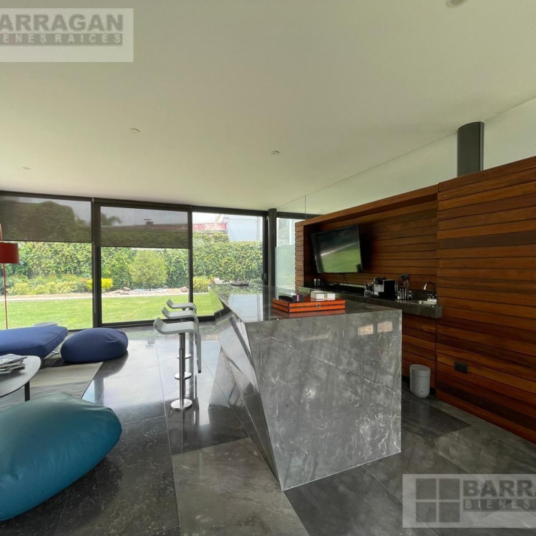 Entrando a la casa, tienes la sala con doble altura que conecta con la terraza y el jardín, un espacio súper agradable para poder compartir con familia y amigos. Junto a la sala, tenemos la sala de televisión familiar. El comedor con vista al jardín el cual cuenta con excelente tamaño y conecta con el family room en el cual hay un bar con barra, sala de televisión y sala de juegos. Pasamos a la cocina que tiene equipos de alta gama, amplia alacena y barra con cubierta de cuarzo que se puede usar como desayunador, junto está el área de lavandería y cuarto de servicio.