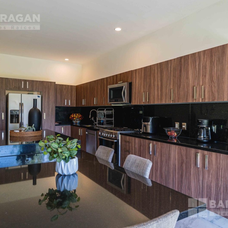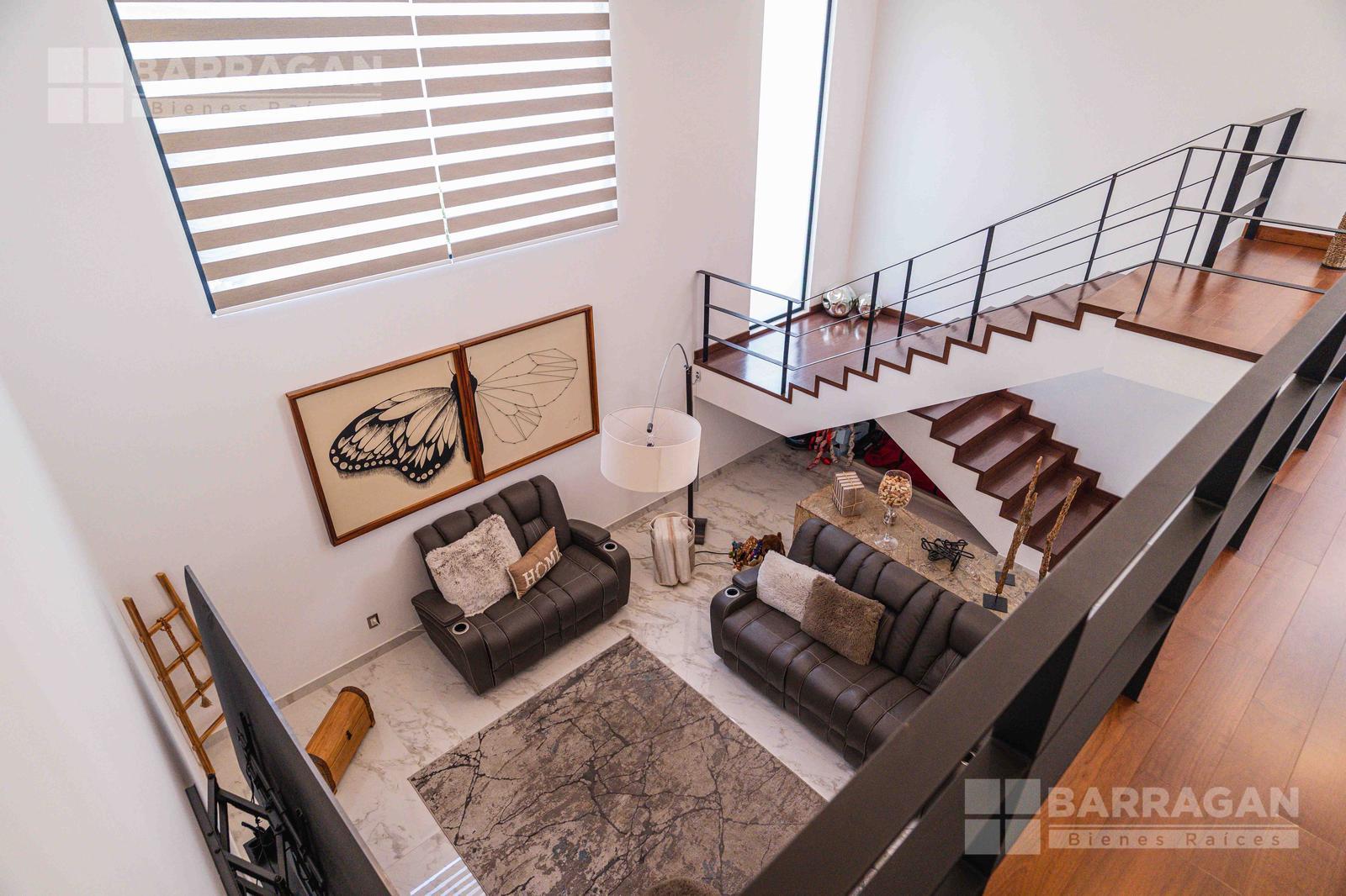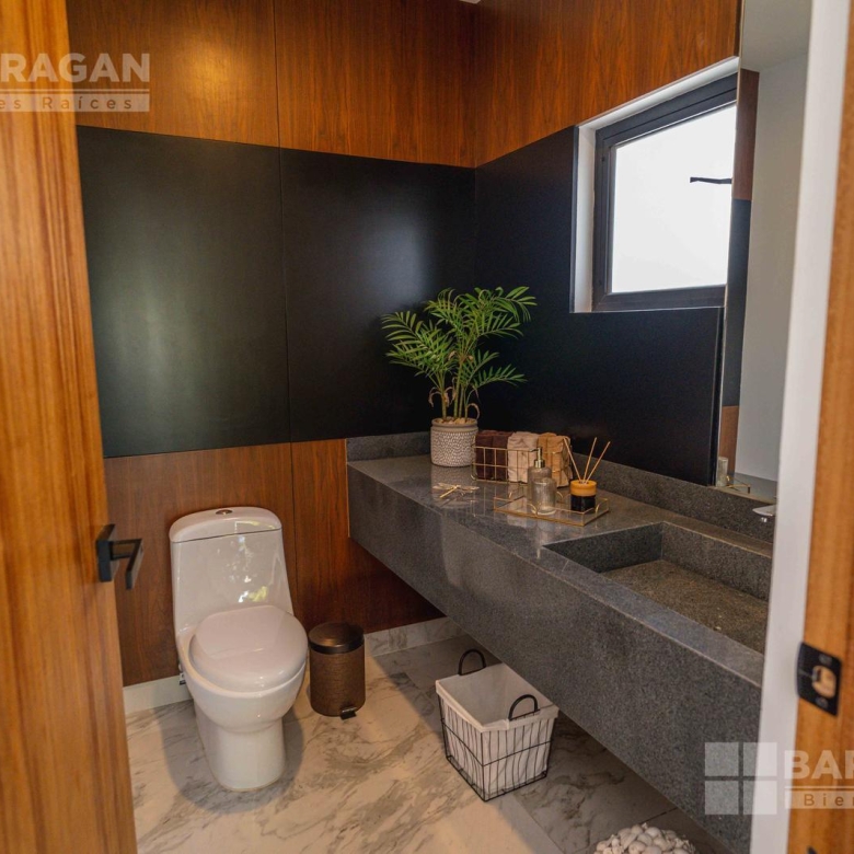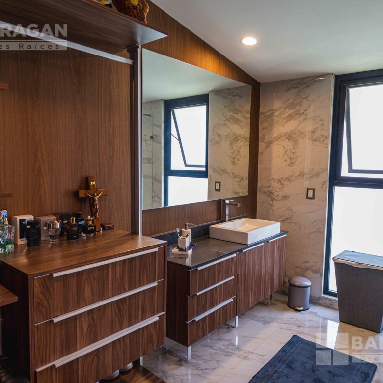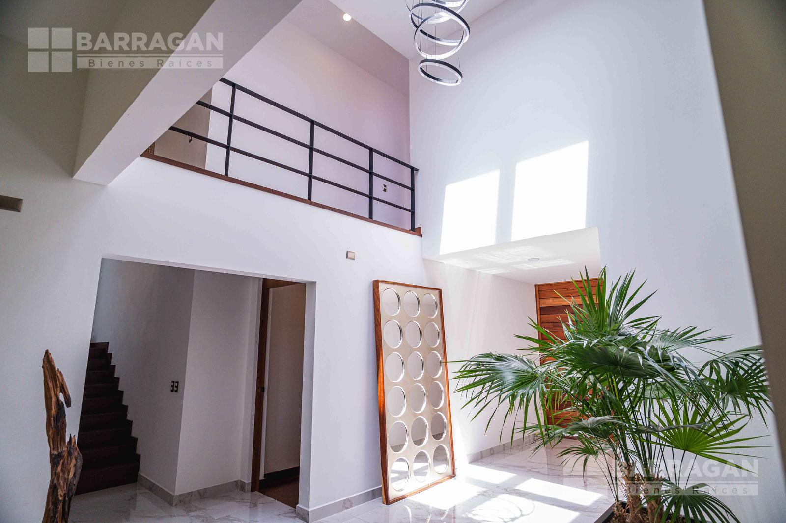 Al ingresar, ofrece un imponente recibidor a doble altura con excelente iluminación natural, medio baño de visitas, así como sala, comedor y cocina equipada. Cuenta además con área de lavandería, cuarto de servicio y cochera con capacidad para tres autos techados y tres adicionales sin techar.