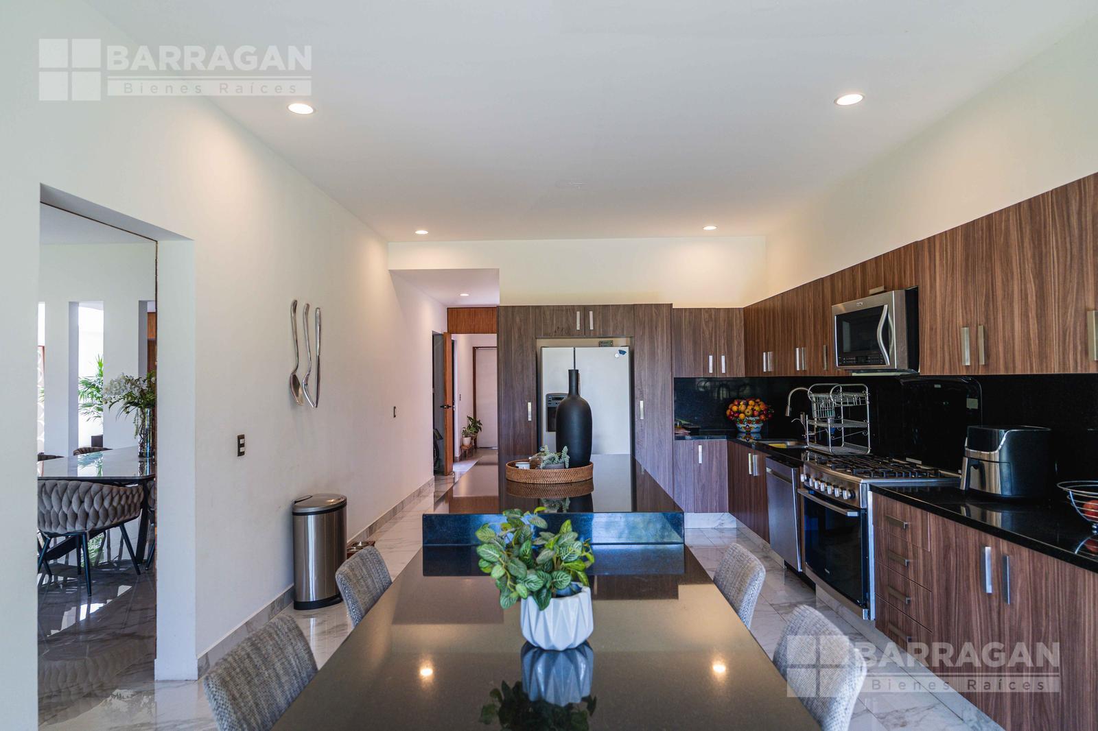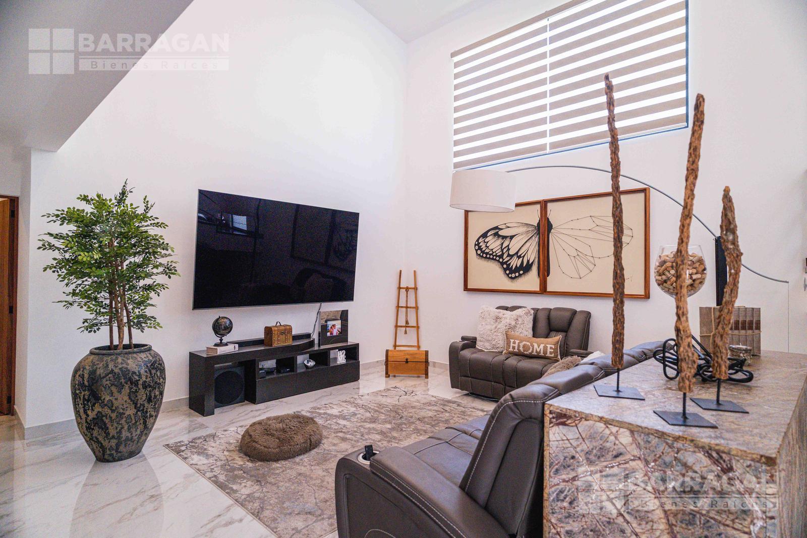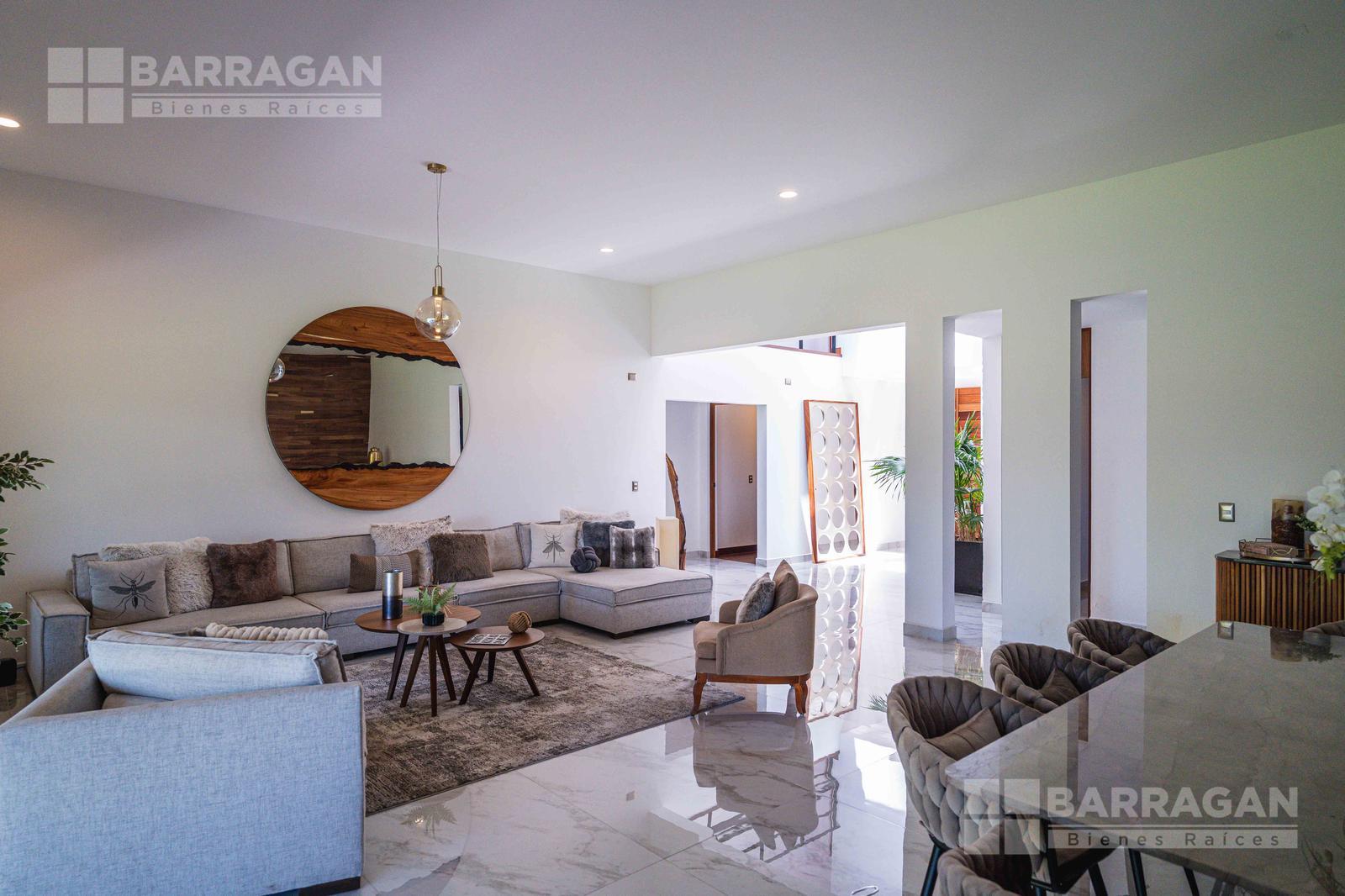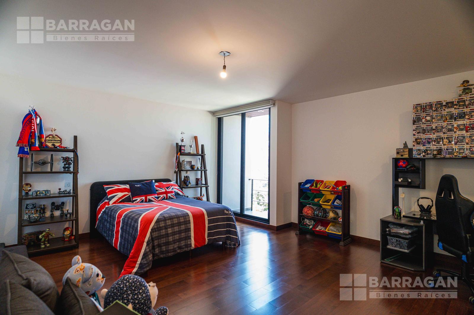 Al ingresar, ofrece un imponente recibidor a doble altura con excelente iluminación natural, medio baño de visitas, así como sala, comedor y cocina equipada. Cuenta además con área de lavandería, cuarto de servicio y cochera con capacidad para tres autos techados y tres adicionales sin techar.