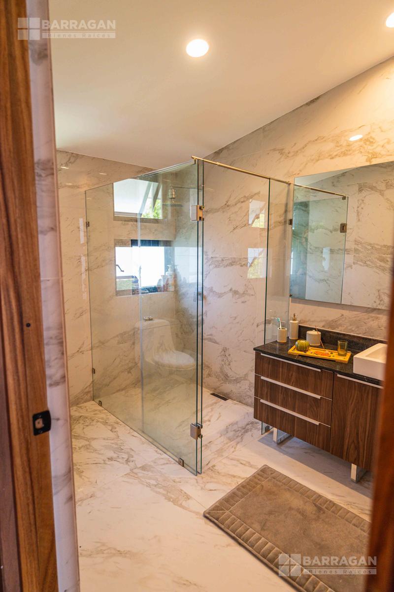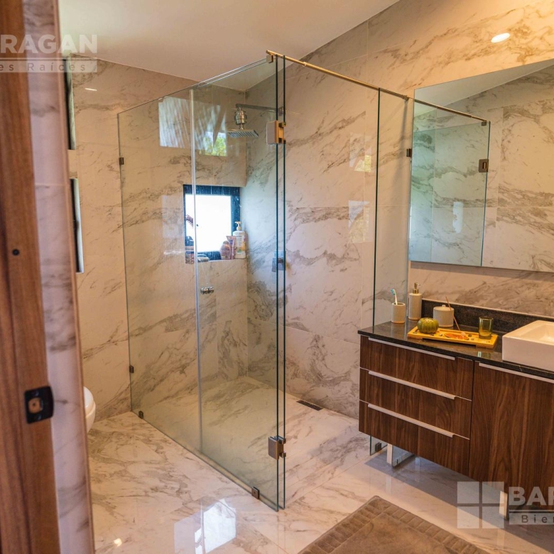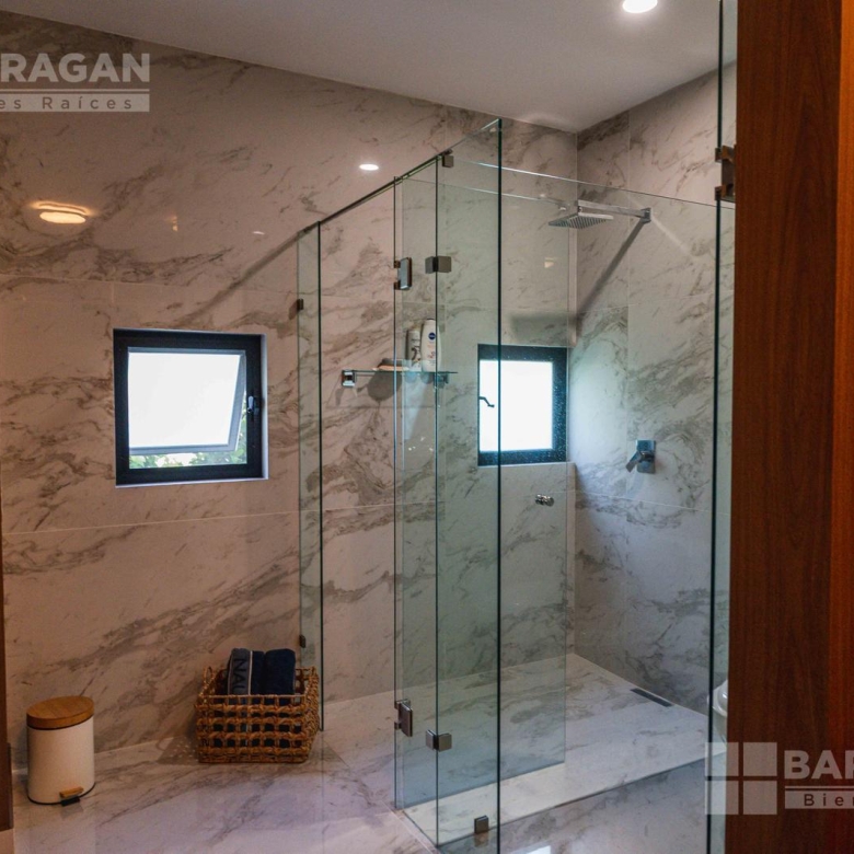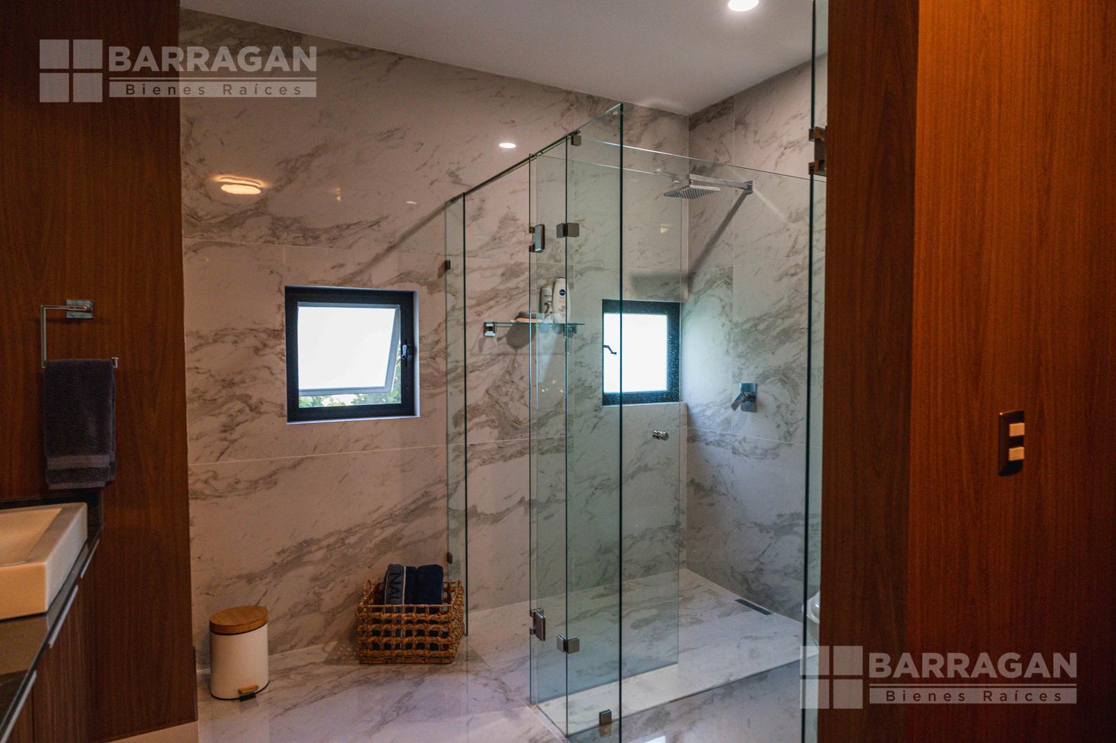 En planta alta dispone de dos recámaras adicionales, cada una con baño, clóset y aire acondicionado. La casa cuenta con sistema de calentador solar, aportando eficiencia energética y confort.