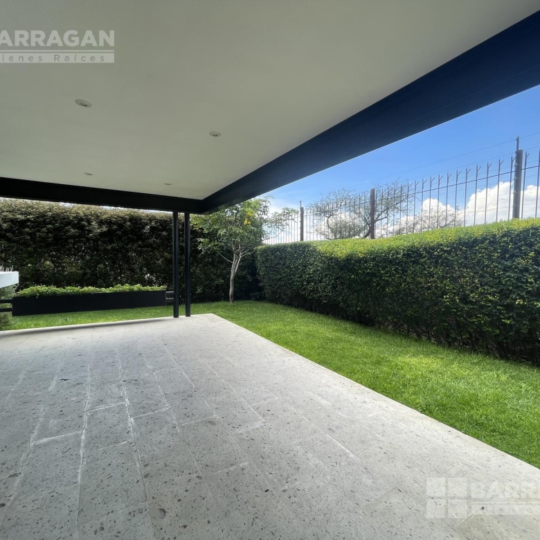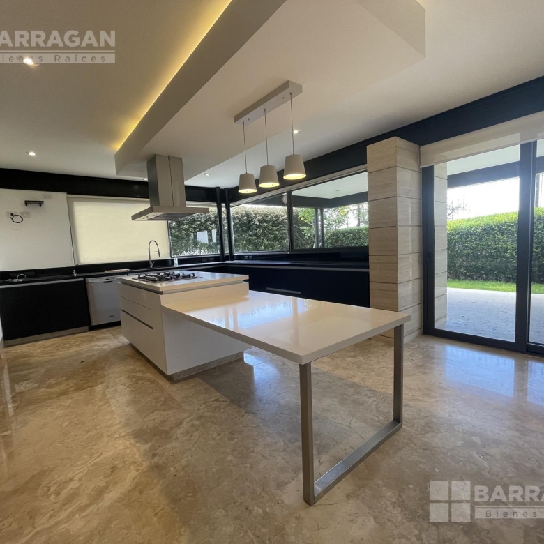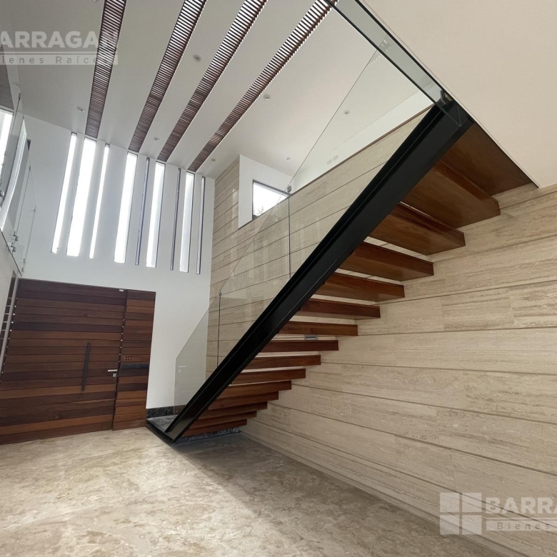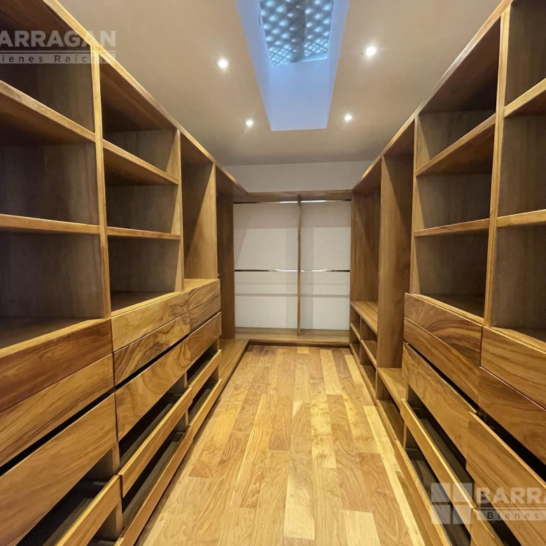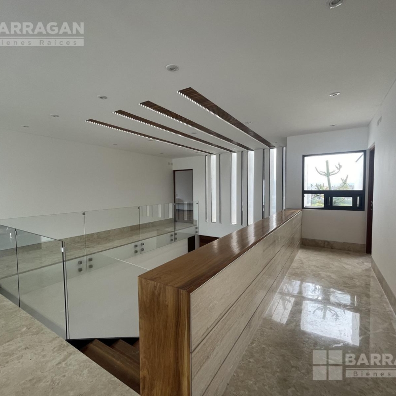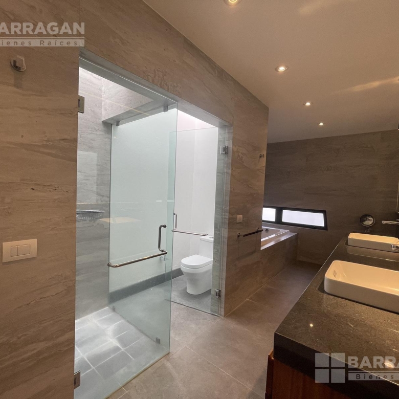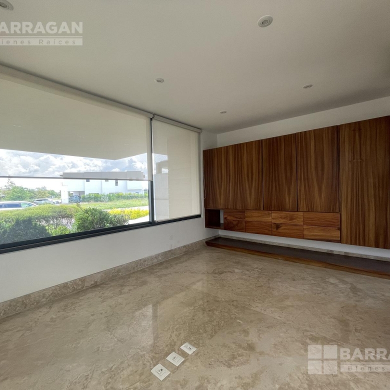 En la planta baja, la entrada de doble altura da la bienvenida a un espacio que incluye un estudio que puede funcionar como cuarta recámara y se complementa con un baño completo. La amplia y equipada cocina se conecta con un comedor, una sala y una sala de TV, mientras que una alacena, un cuarto de servicio, una lavandería y un patio de servicio añaden funcionalidad. Además, cuenta con un cuarto de máquinas y una cochera tiene capacidad para cuatro autos.