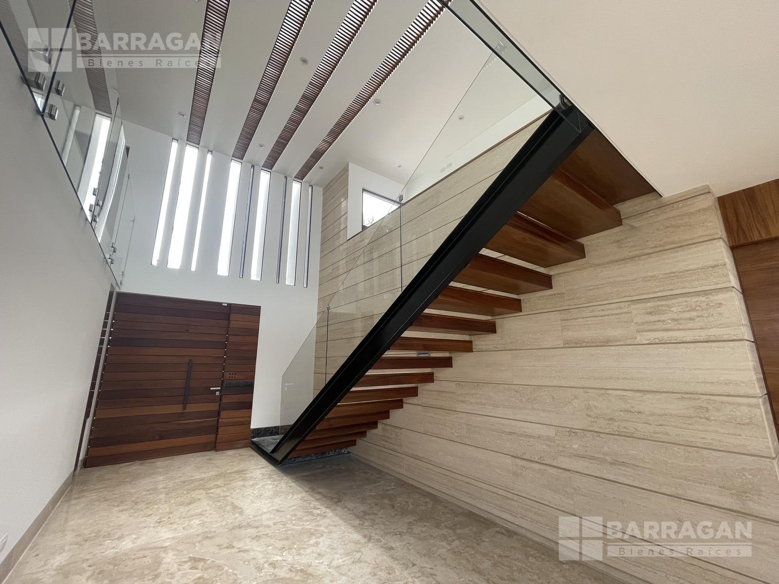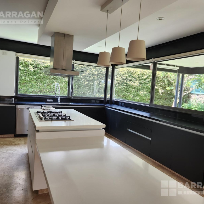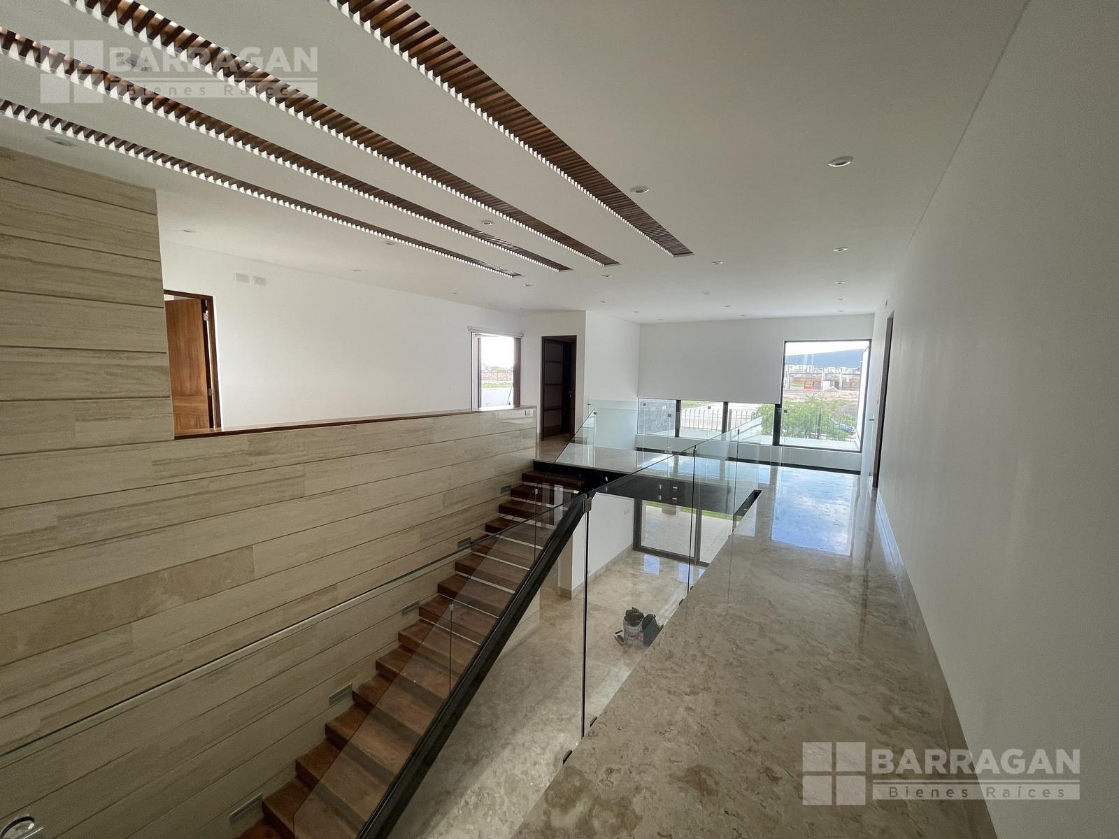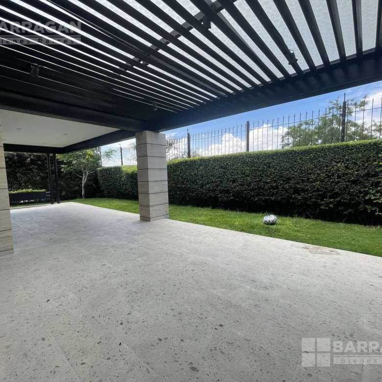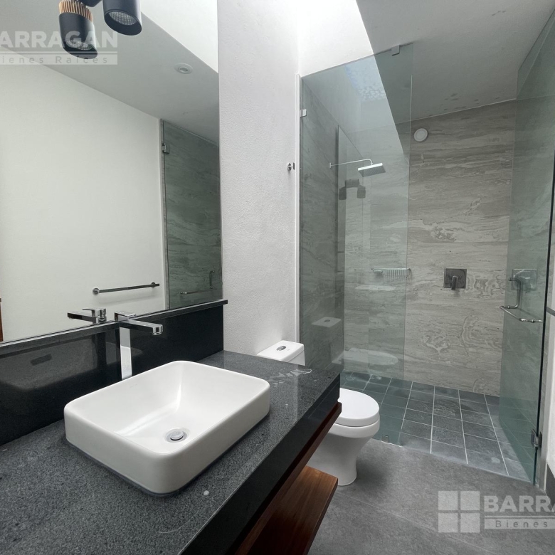 En la planta baja, la entrada de doble altura da la bienvenida a un espacio que incluye un estudio que puede funcionar como cuarta recámara y se complementa con un baño completo. La amplia y equipada cocina se conecta con un comedor, una sala y una sala de TV, mientras que una alacena, un cuarto de servicio, una lavandería y un patio de servicio añaden funcionalidad. Además, cuenta con un cuarto de máquinas y una cochera tiene capacidad para cuatro autos.