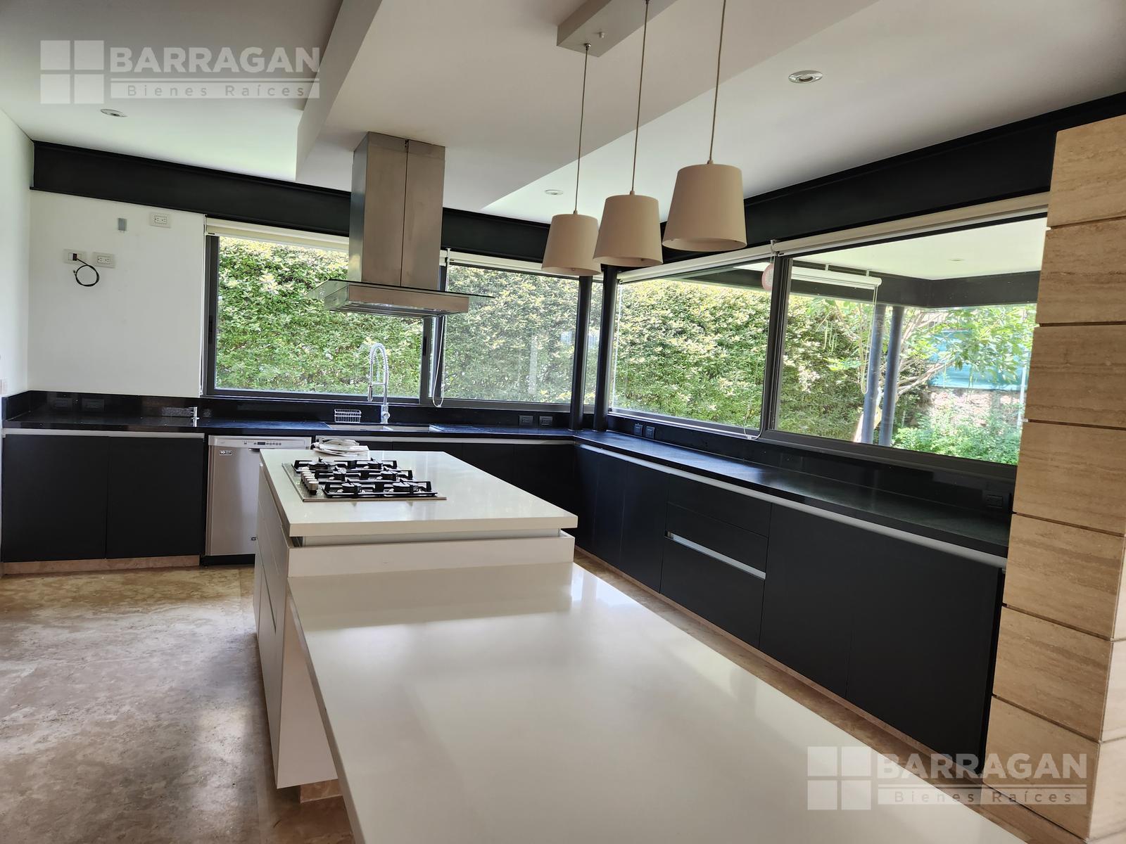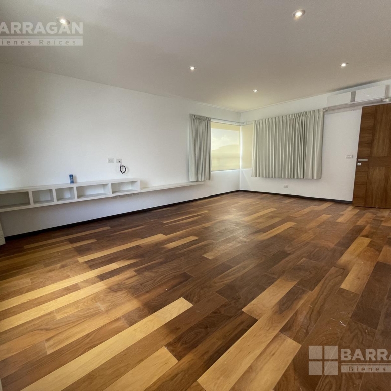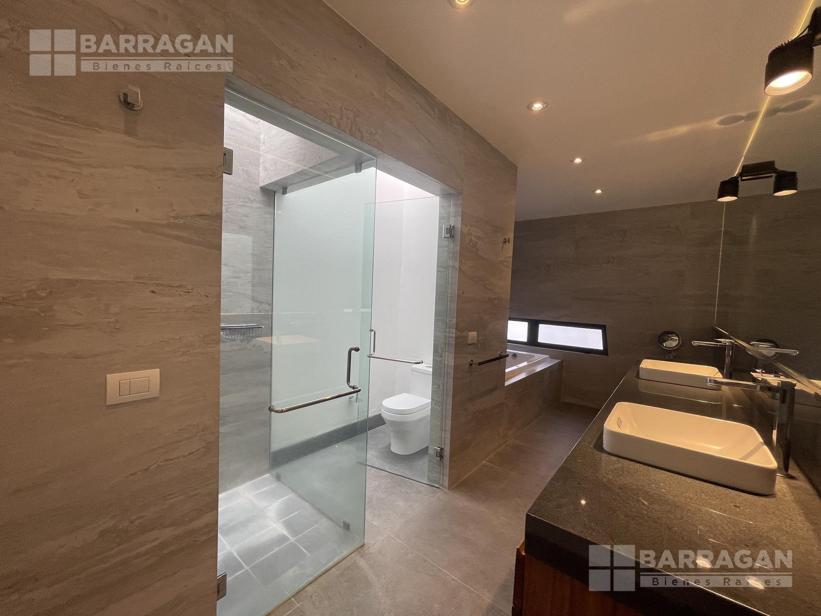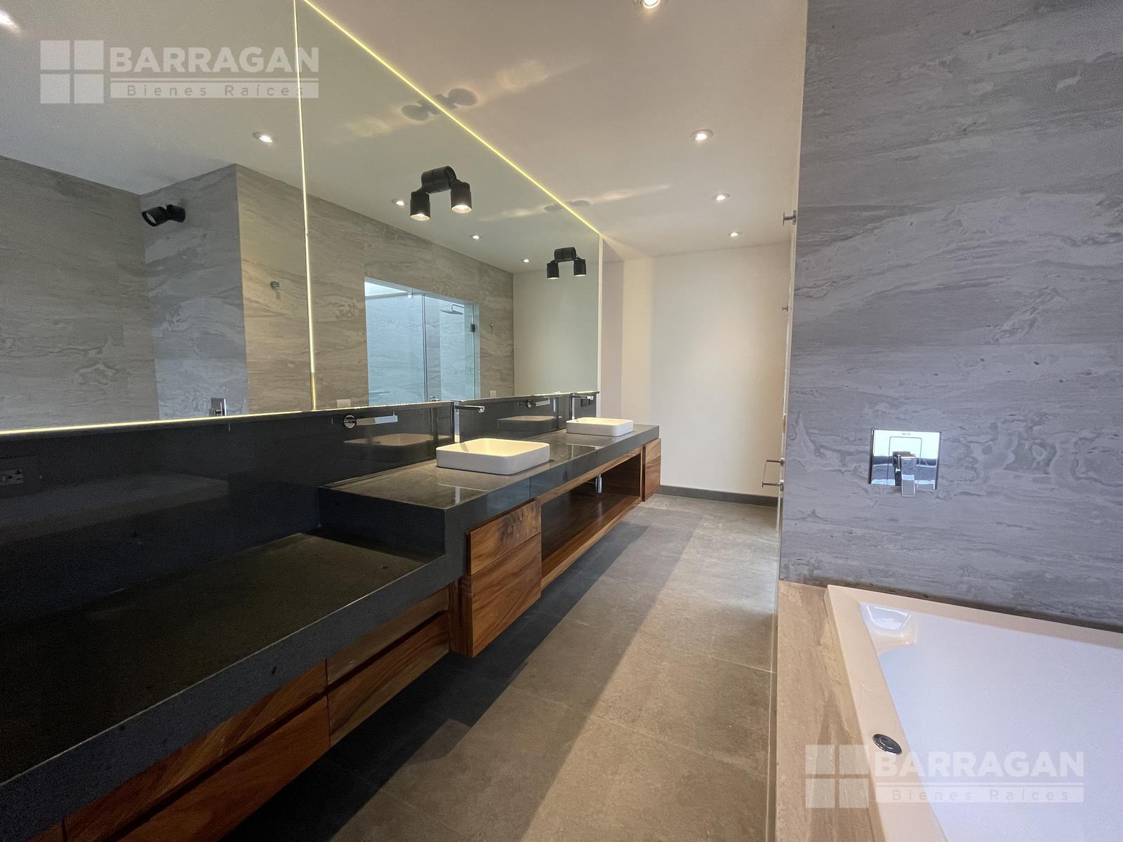 En la planta baja, la entrada de doble altura da la bienvenida a un espacio que incluye un estudio que puede funcionar como cuarta recámara y se complementa con un baño completo. La amplia y equipada cocina se conecta con un comedor, una sala y una sala de TV, mientras que una alacena, un cuarto de servicio, una lavandería y un patio de servicio añaden funcionalidad. Además, cuenta con un cuarto de máquinas y una cochera tiene capacidad para cuatro autos.
