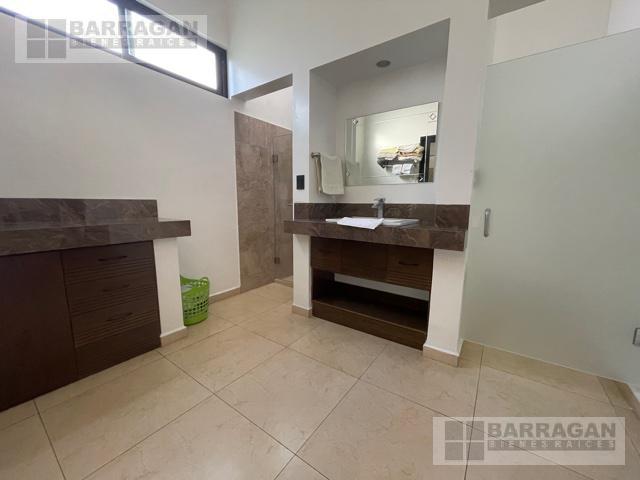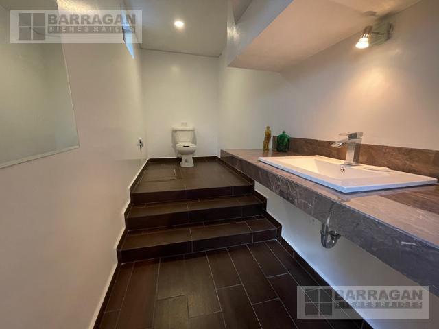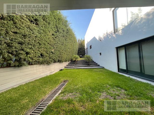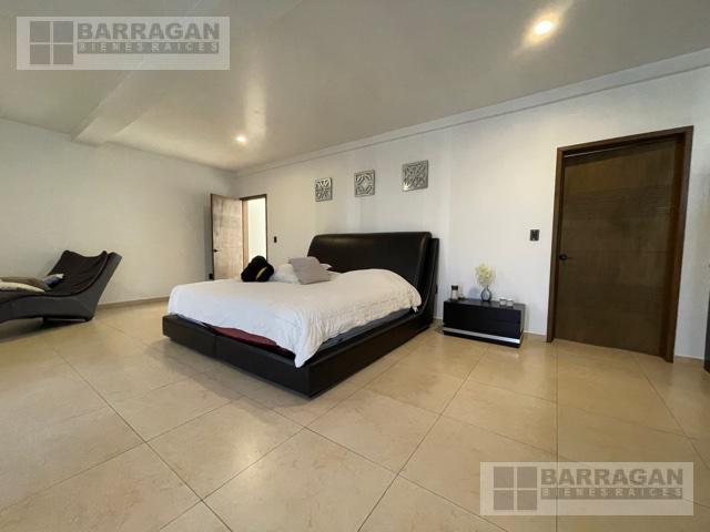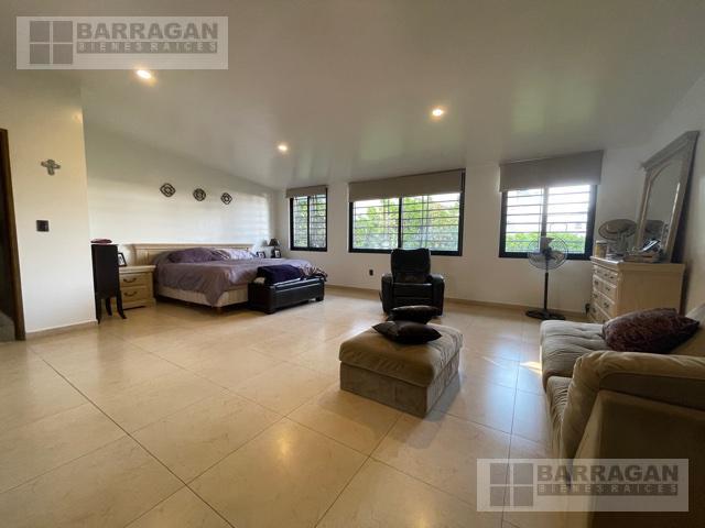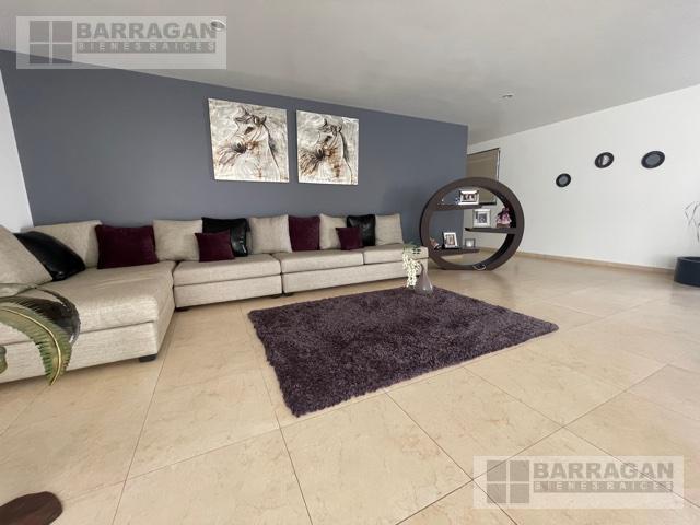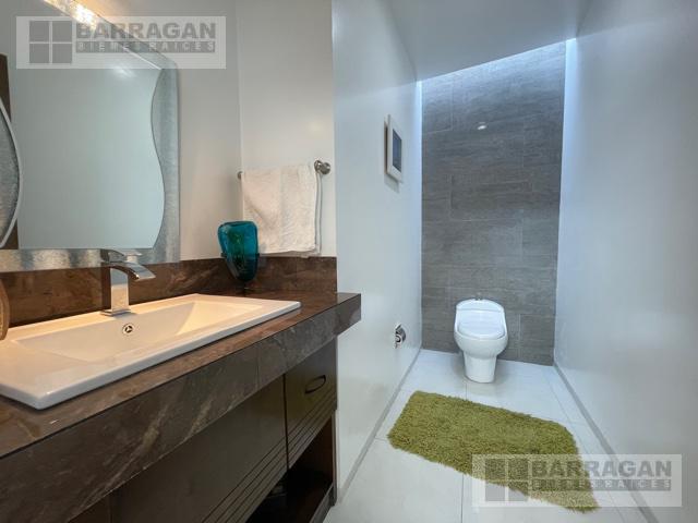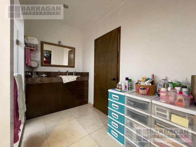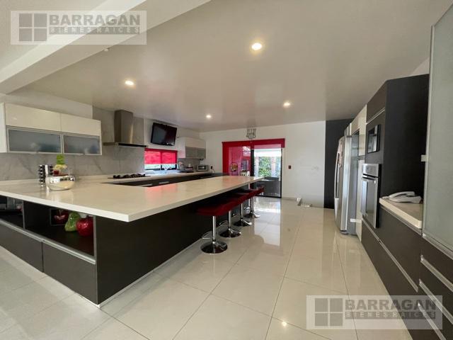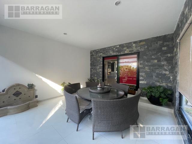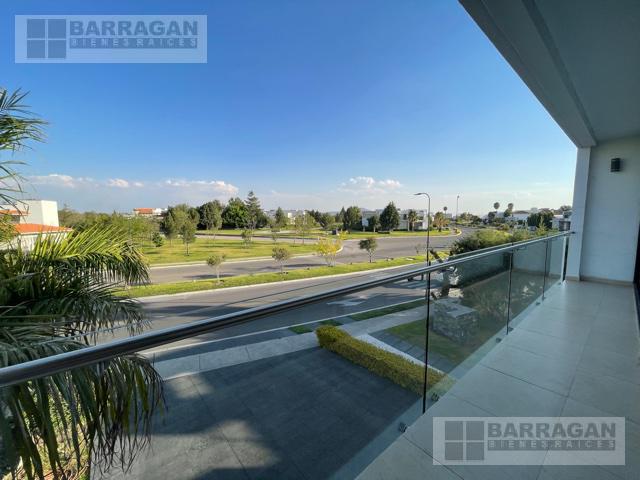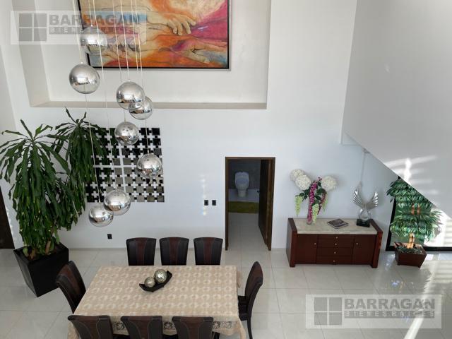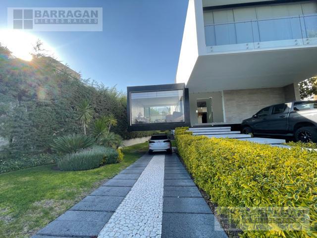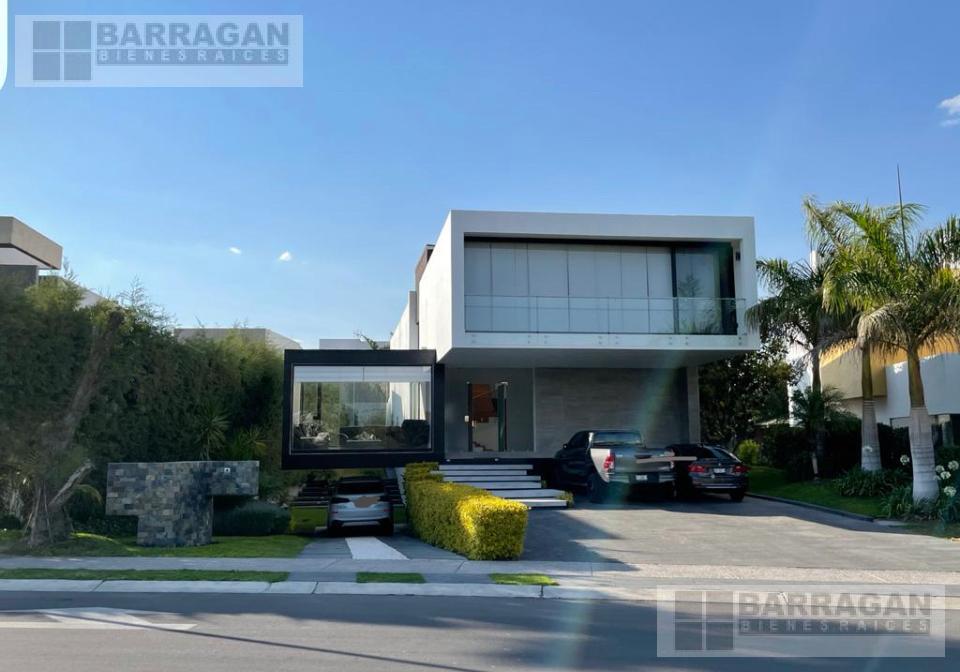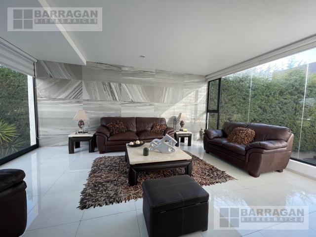 Casa estilo Contemporáneo en venta en el Campanario. En tres niveles, Sala principal volada con excelente vista al área verde, cuenta con 3 amplias habitaciones todas con vestidor y baño, la principal en planta baja con vista al jardín, también un balcón a lo largo de una de las habitaciones secundarias que permite admirar una gran área verde, sala de estar en la planta alta y oficina privada, en planta baja comedor a doble altura, cocina equipada abierta, lobby , baño de visitas, terraza con vista al jardín y también un sótano con amplio salón de juegos o de eventos con acceso desde el exterior o el interior de la casa, con sala de televisión, bodega, además tiene cuarto de servicio, patio de servicio, y lavandería con otra bodega, en los laterales de la casa dan vida y color las áreas verdes perfectamente cuidadas, 3 estacionamientos techados y 4 más sin techar. La bien lograda arquitectura de la fachada complementa la belleza del entorno.