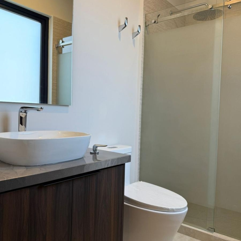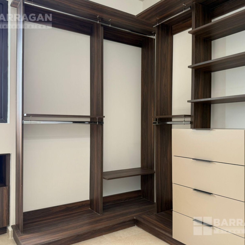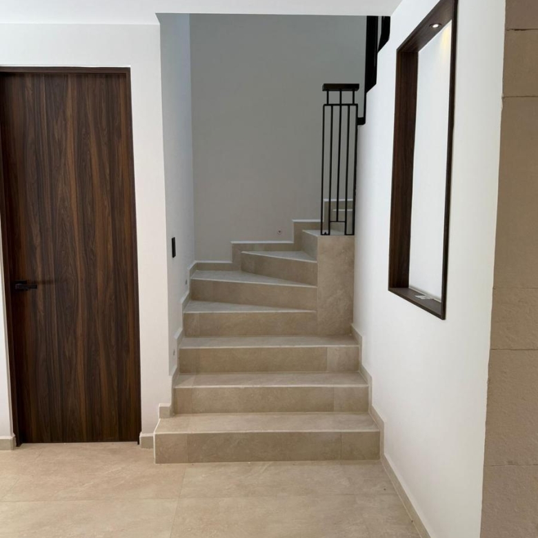 En planta alta la casa ofrece tres recámaras, cada una con baño completo; la recámara principal cuenta con vestidor, brindando mayor comodidad y privacidad.