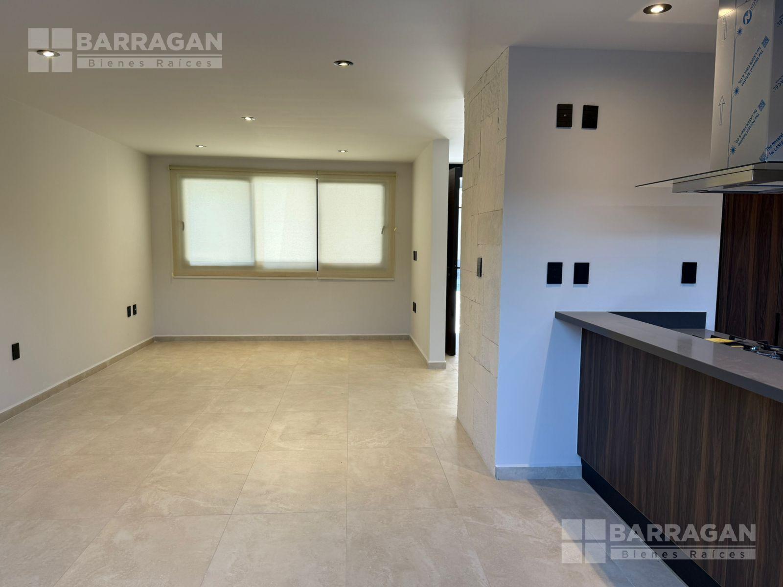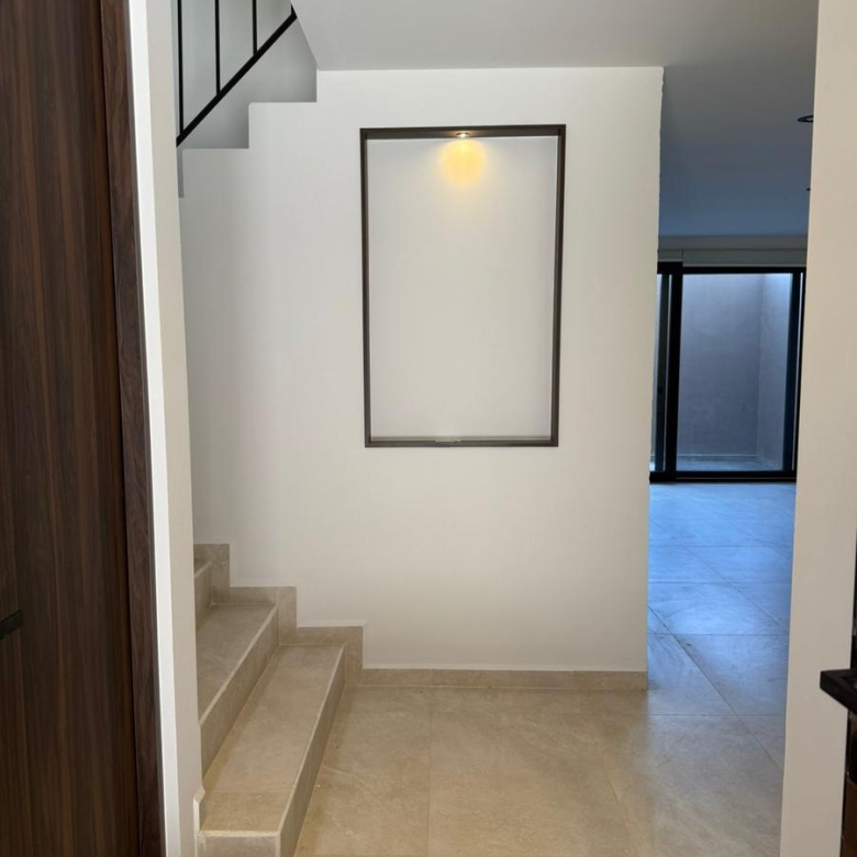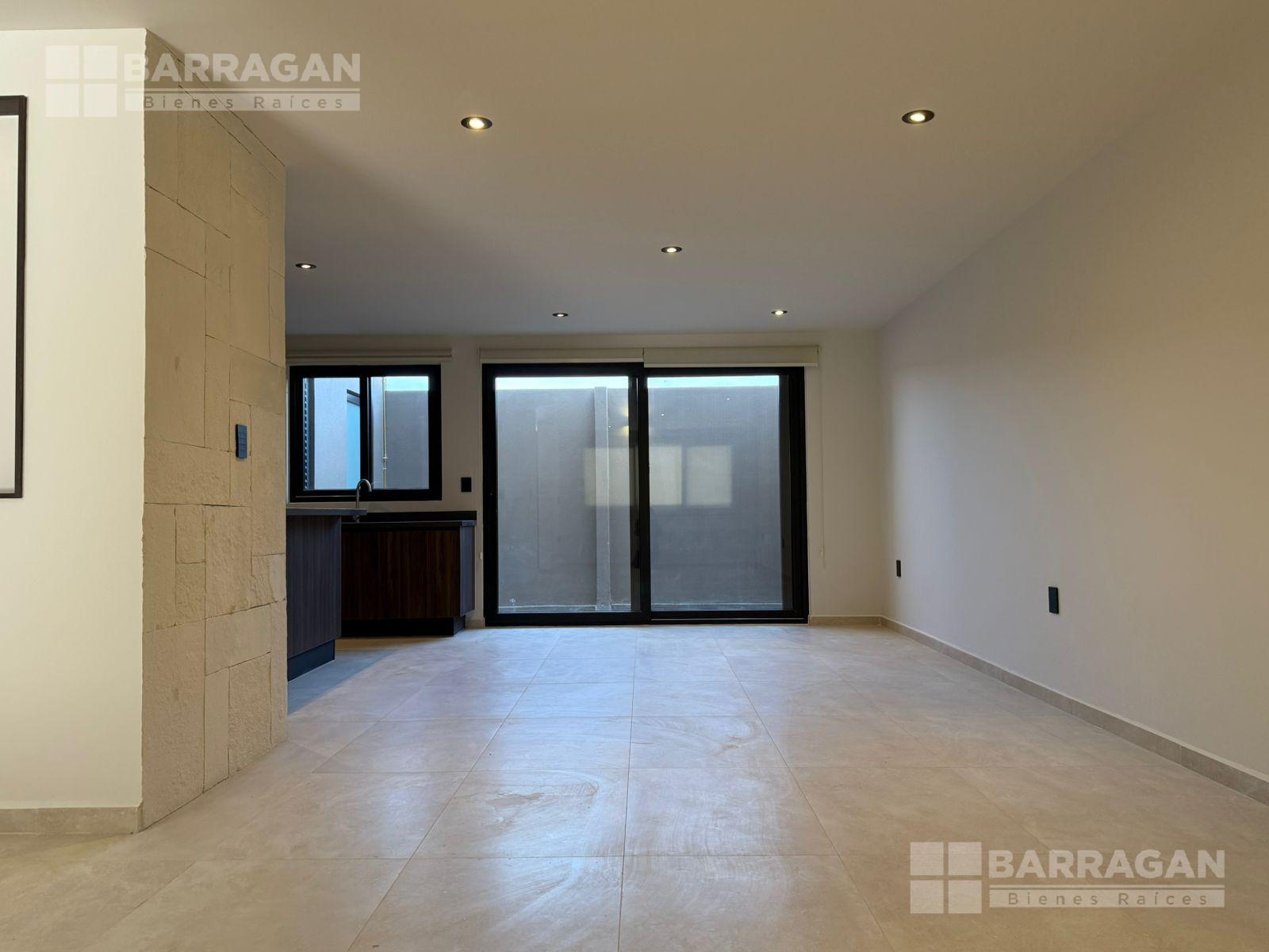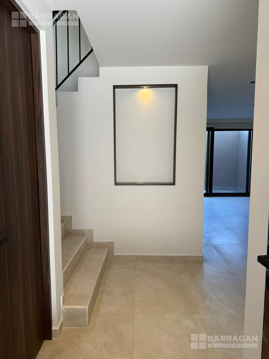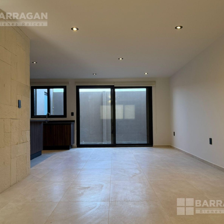 En planta baja cuenta con sala y comedor, cocina abierta con cubierta de cuarzo y equipada, medio baño para visitas, cuarto de lavado y un agradable jardín trasero. Dispone además de estacionamiento techado para dos autos.