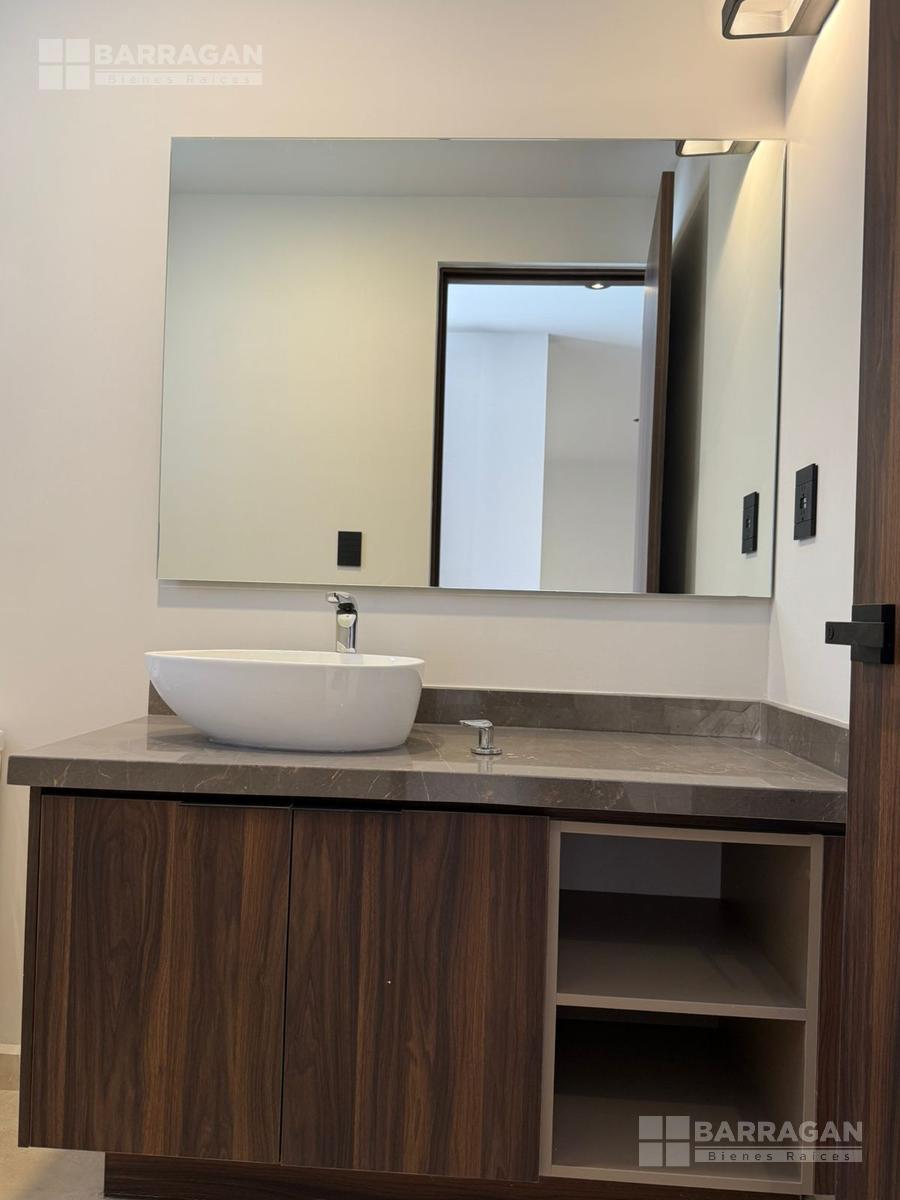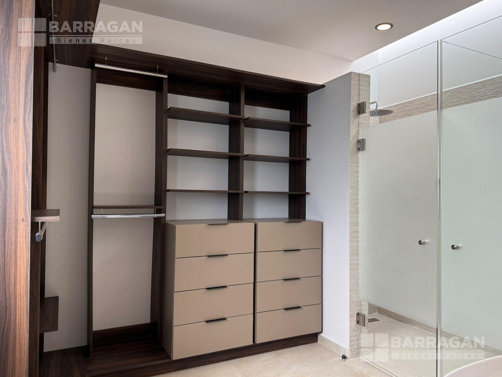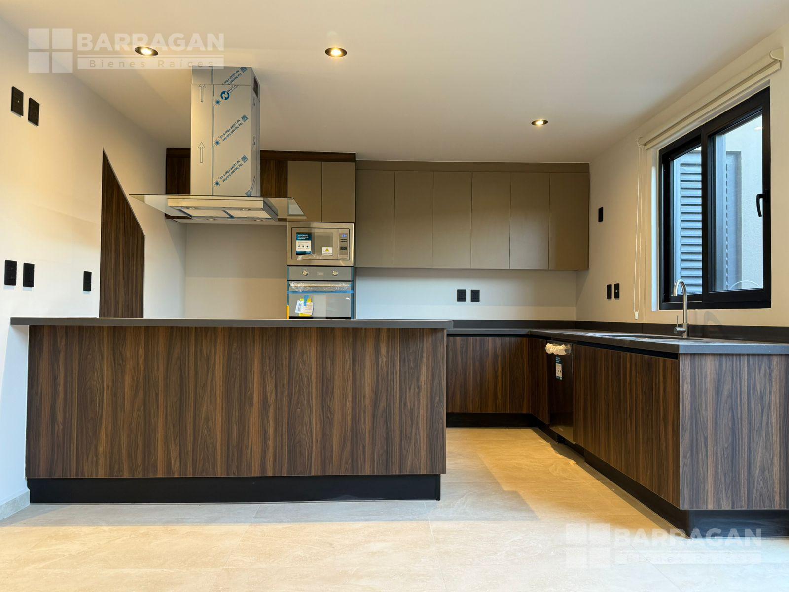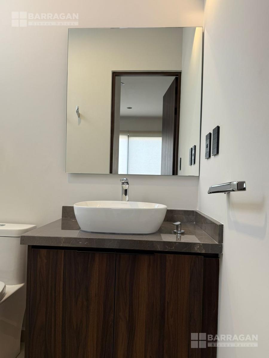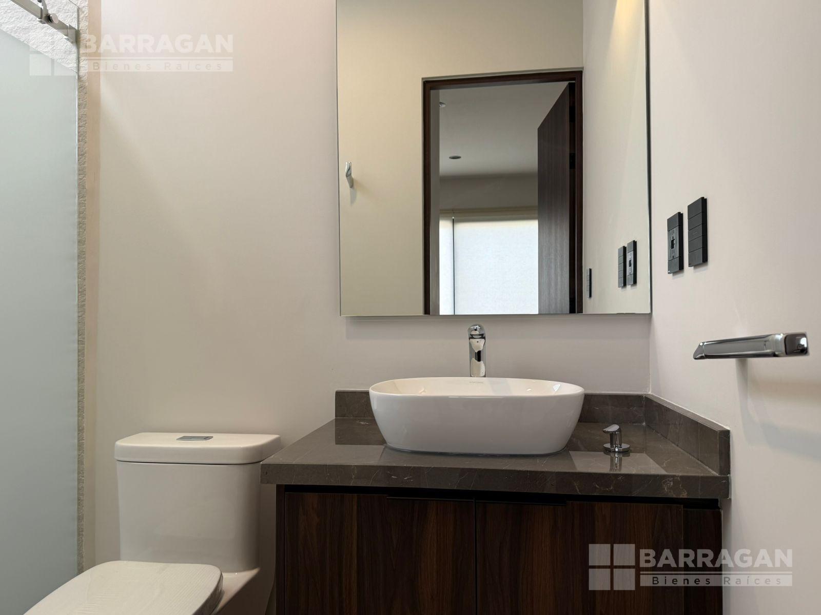 En planta baja cuenta con sala y comedor, cocina abierta con cubierta de cuarzo y equipada, medio baño para visitas, cuarto de lavado y un agradable jardín trasero. Dispone además de estacionamiento techado para dos autos.