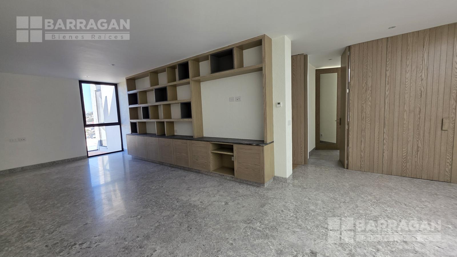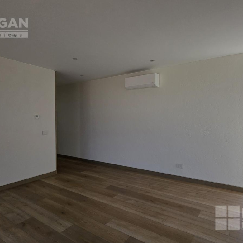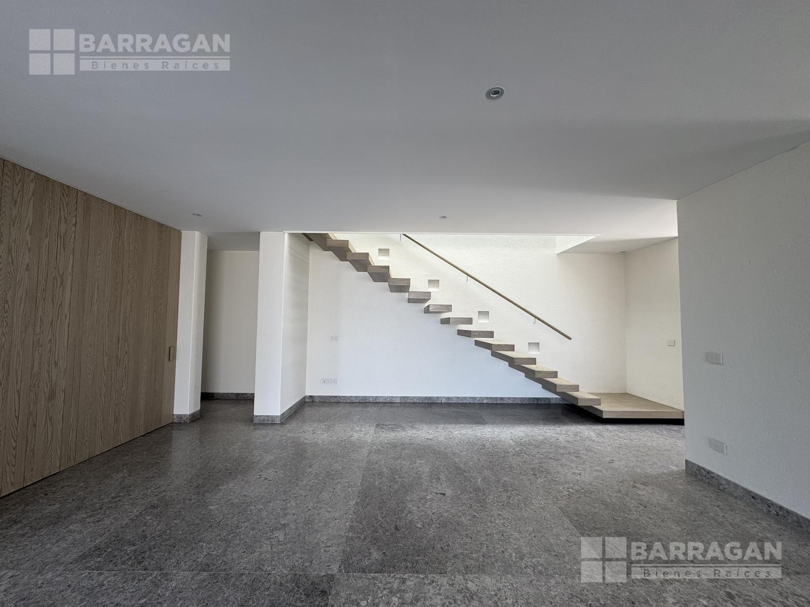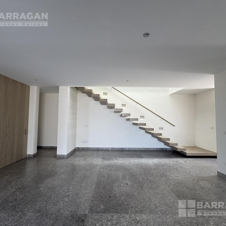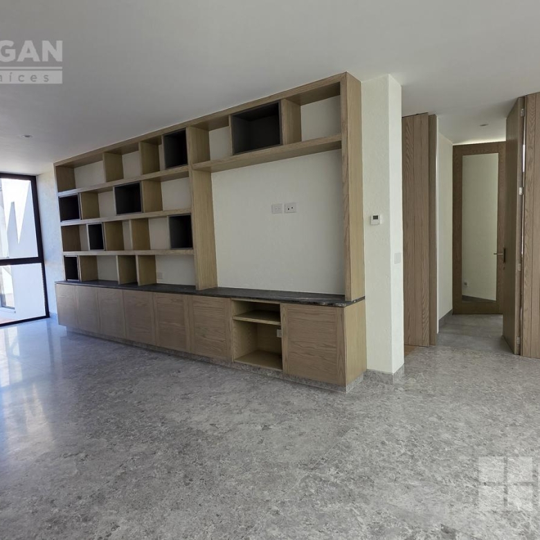 En el nivel superior se encuentra una amplia sala de TV con mueble empotrado, concebida como un espacio familiar de gran tamaño que, gracias a su preparación estructural, puede convertirse fácilmente en una tercera recámara.