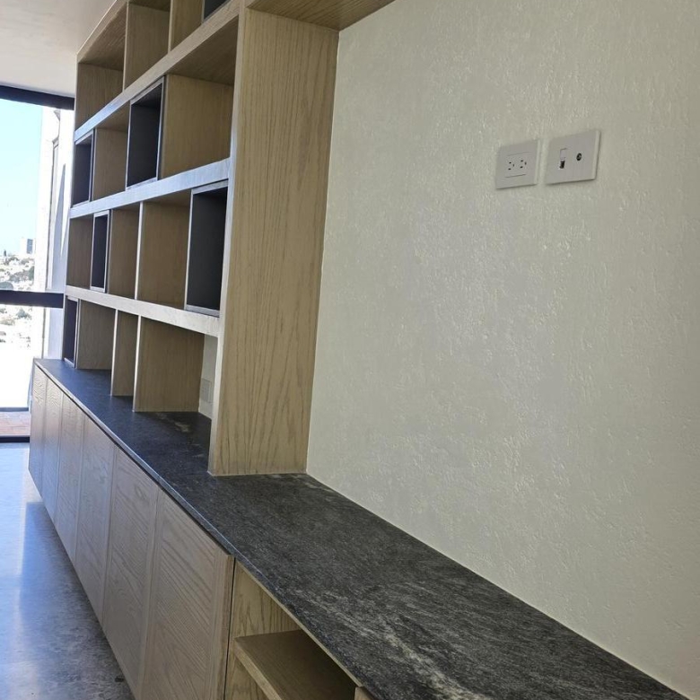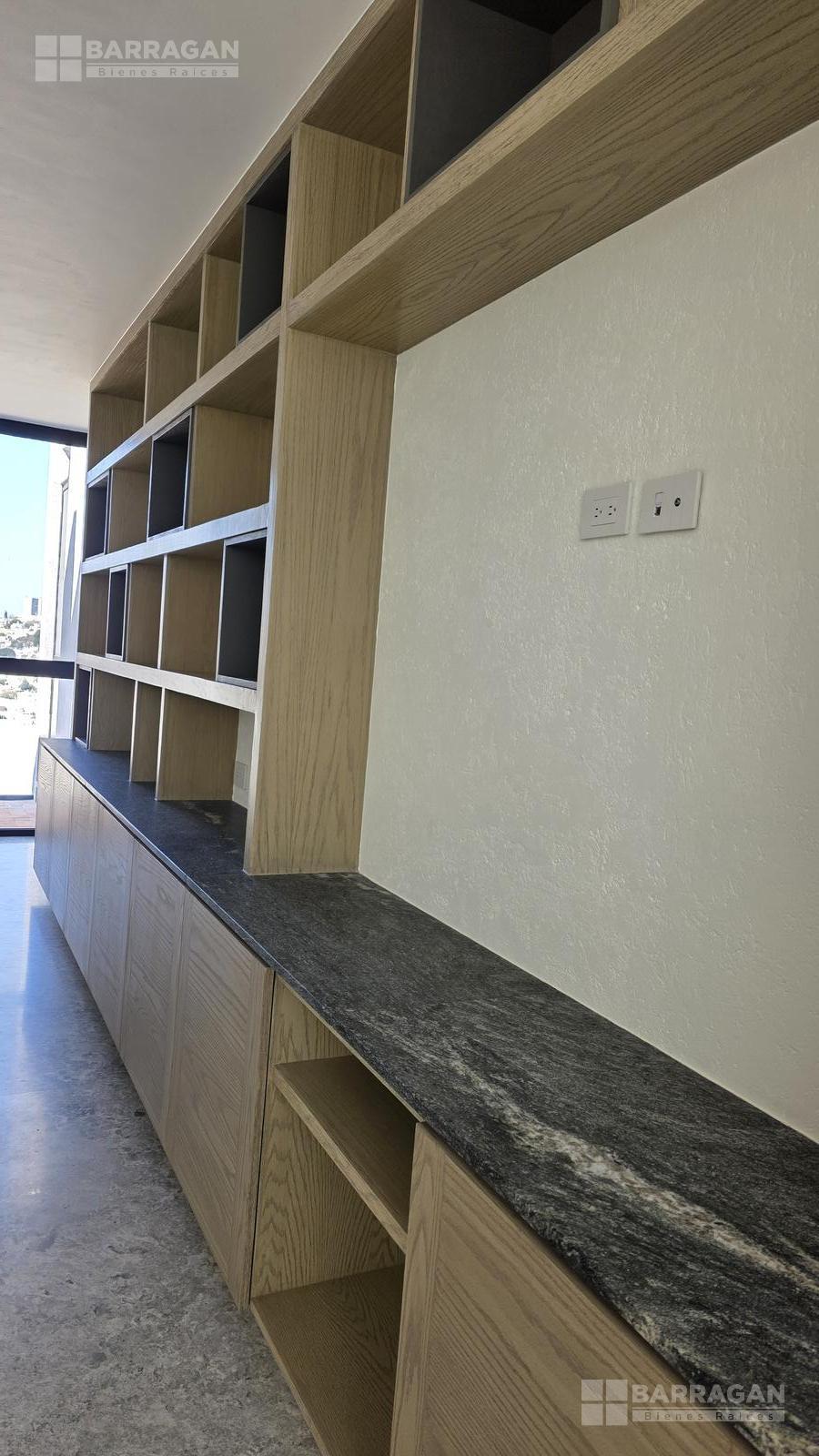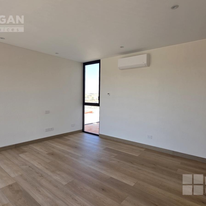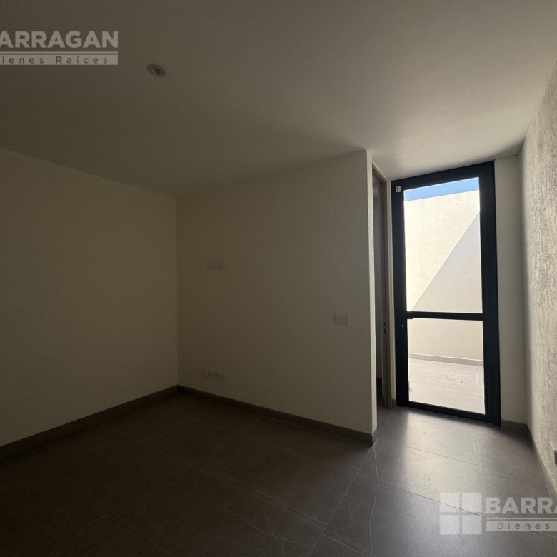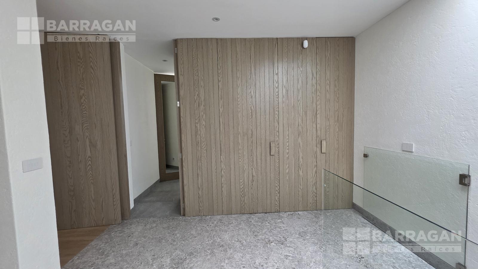 En el nivel superior se encuentra una amplia sala de TV con mueble empotrado, concebida como un espacio familiar de gran tamaño que, gracias a su preparación estructural, puede convertirse fácilmente en una tercera recámara.