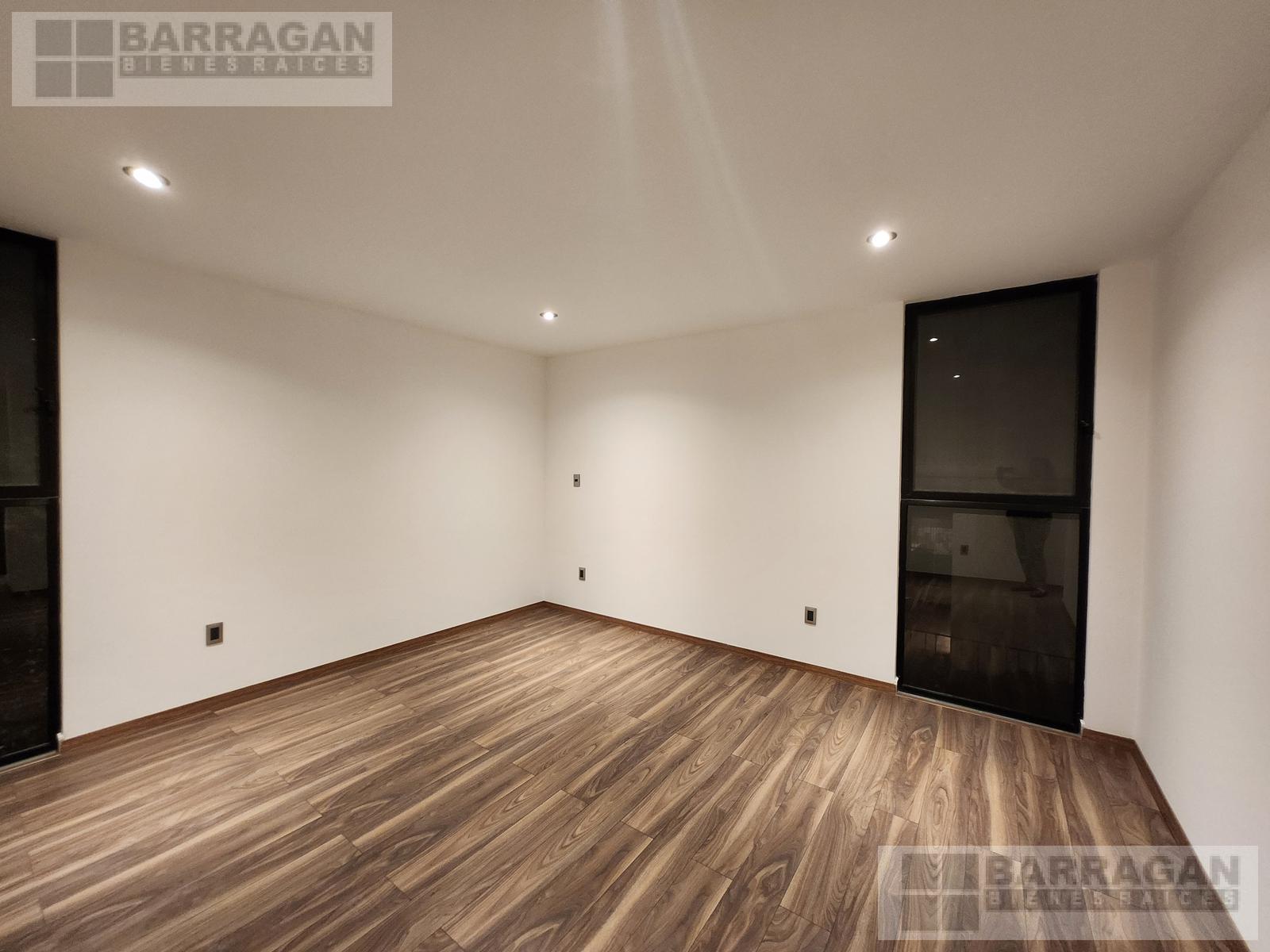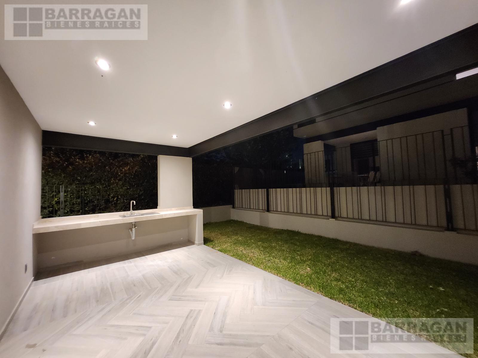 La casa cuenta con una cochera para tres autos techados, un pasillo lateral que dirige desde la cochera a la terraza y jardín trasero, lo que proporciona privacidad a la casa. Al ingresar a la casa nos encontramos con un estudio con baño completo u opción a cuarta recámara, cocina equipada, amplia sala-comedor que conectan con terraza y jardín. También en planta baja encontramos el cuarto y área de servicio.
